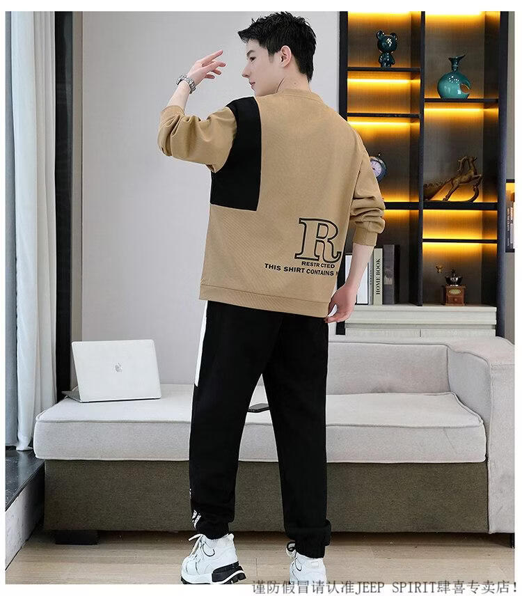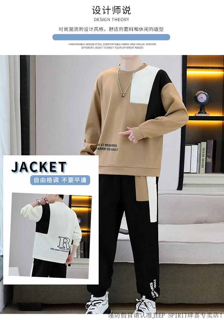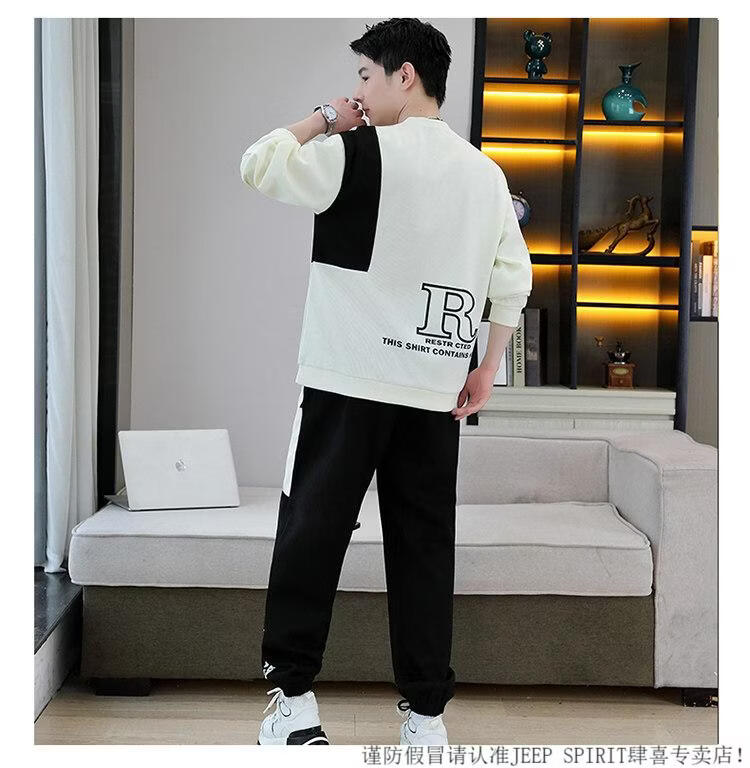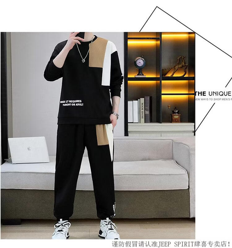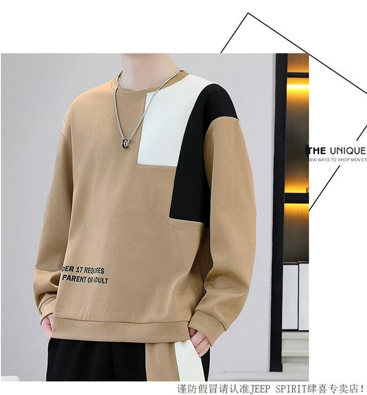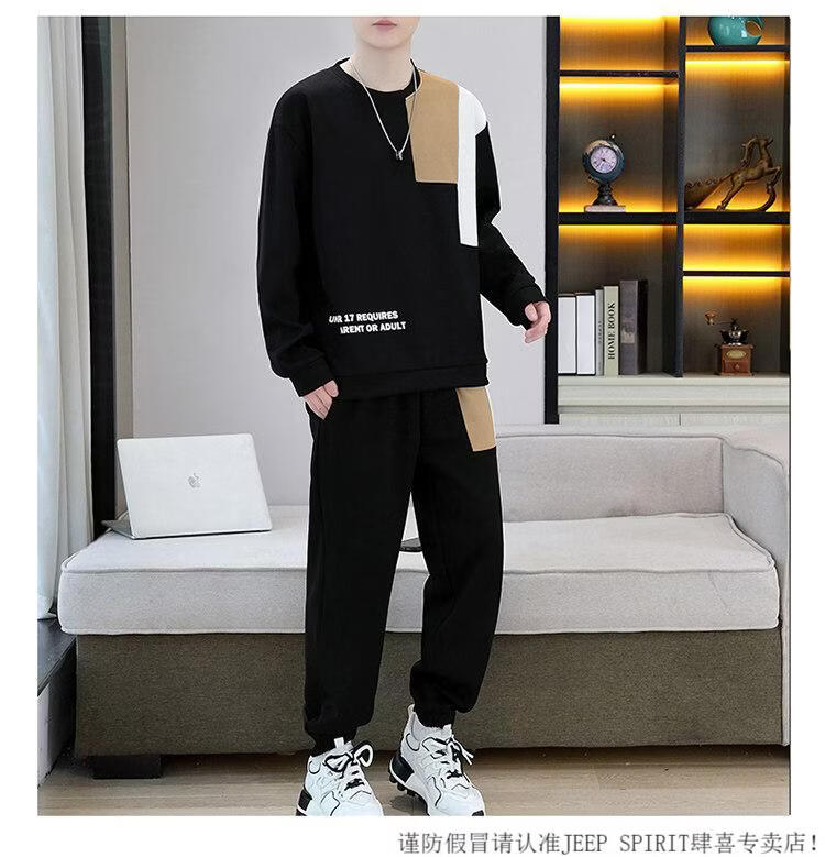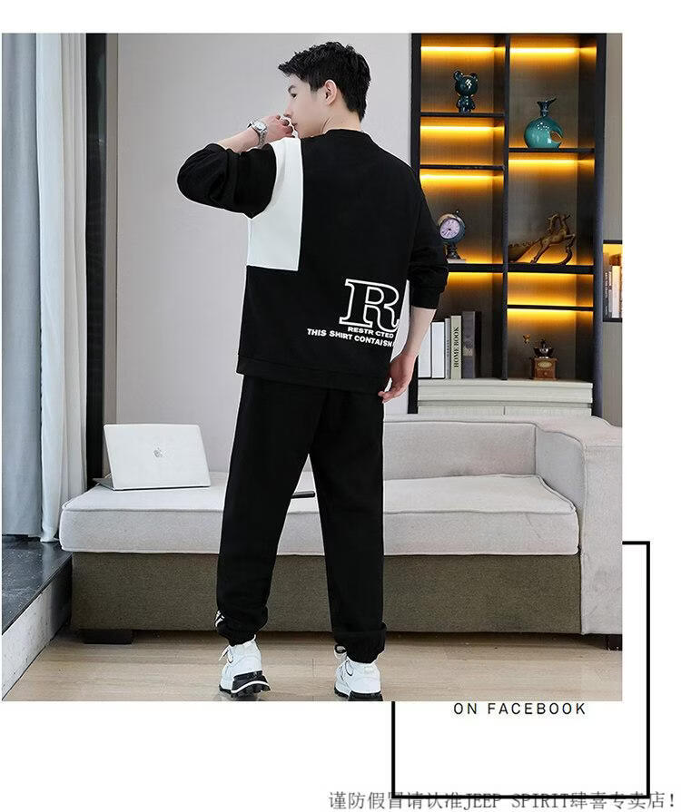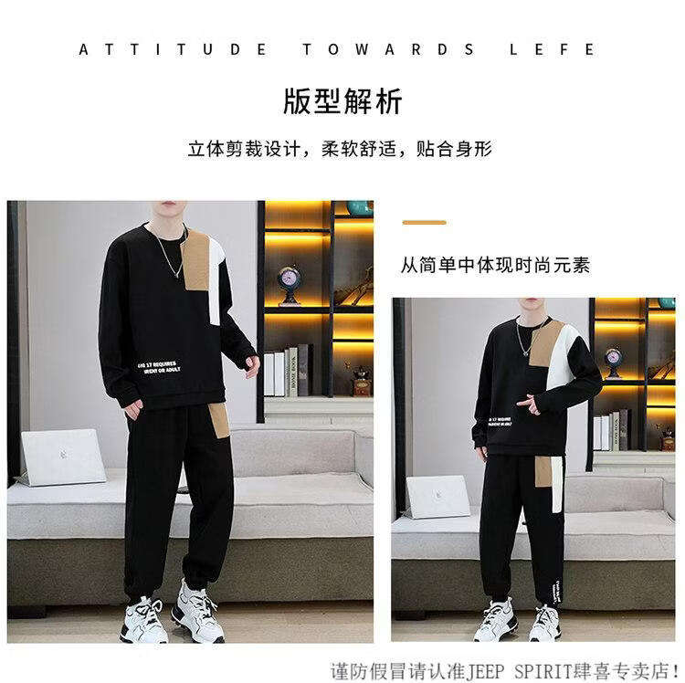 JEEP SPIRIT suit men's spring and autumn casual sports wear set with contrasting color splicing loose long-sleeved thick cotton T with T4 black sweatshirt suit M (about 90-110Jin Jin equals 0.5 kg can be worn)