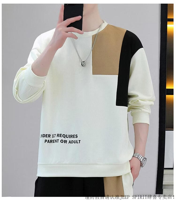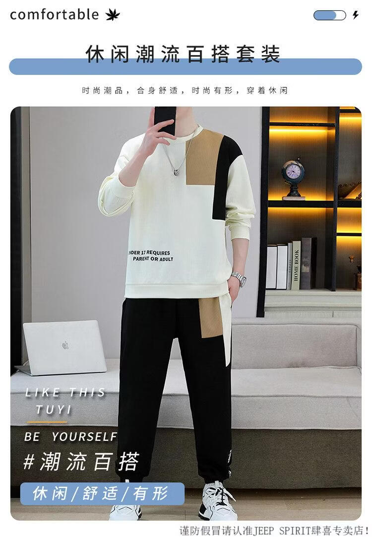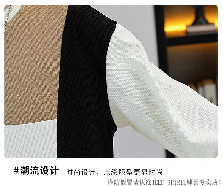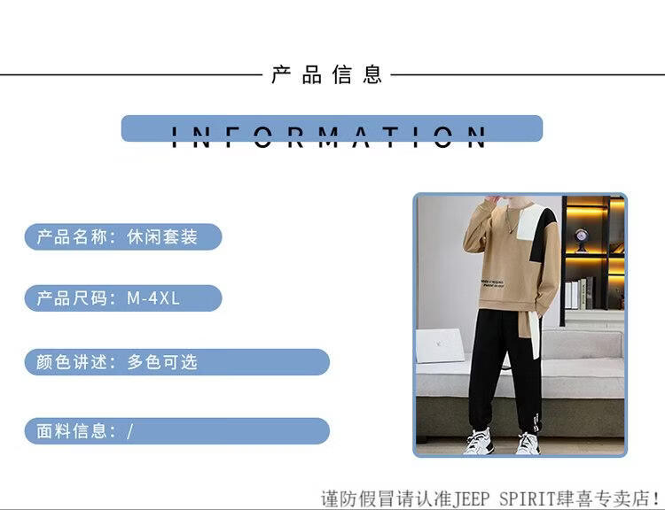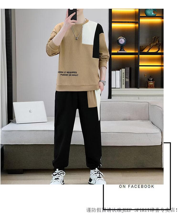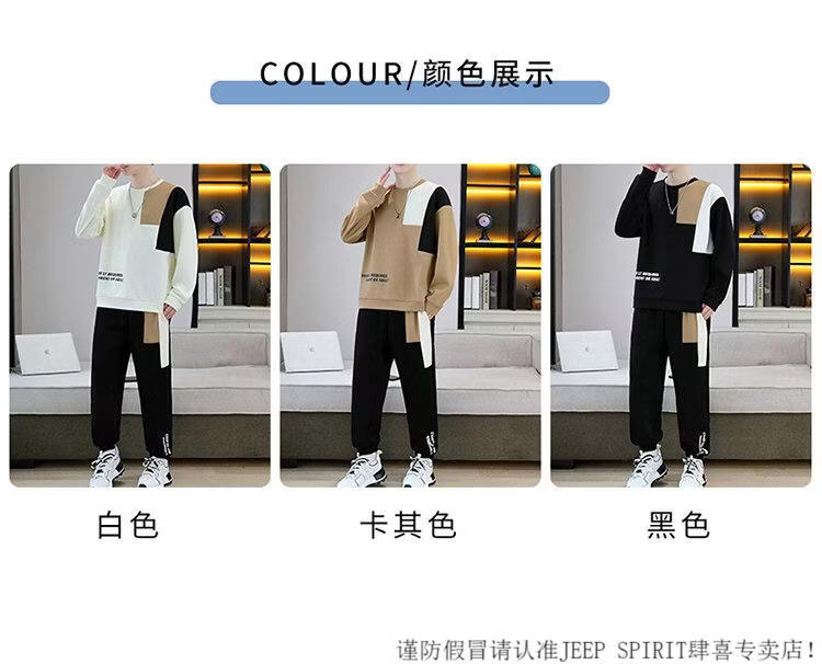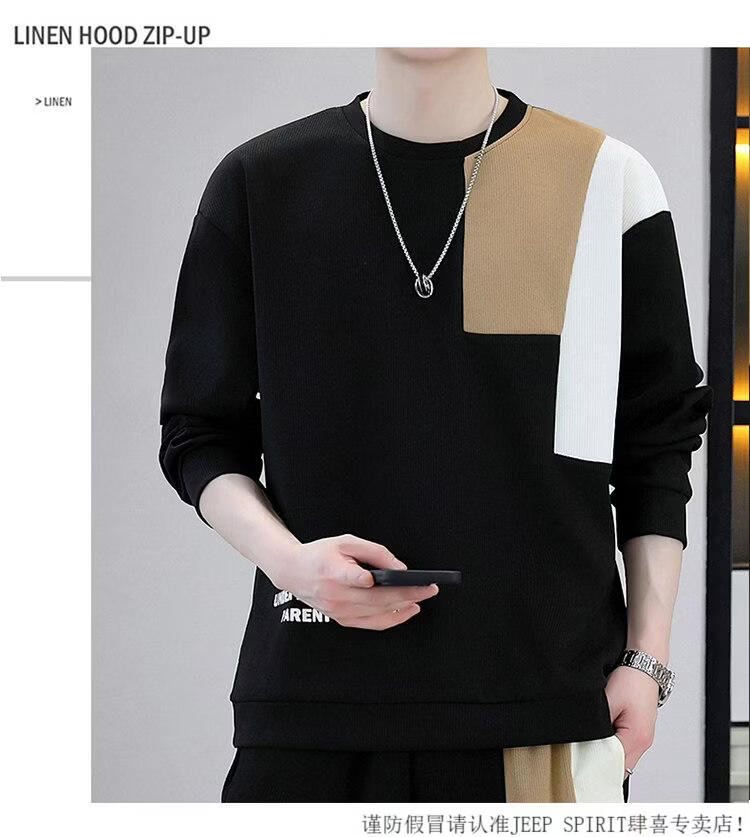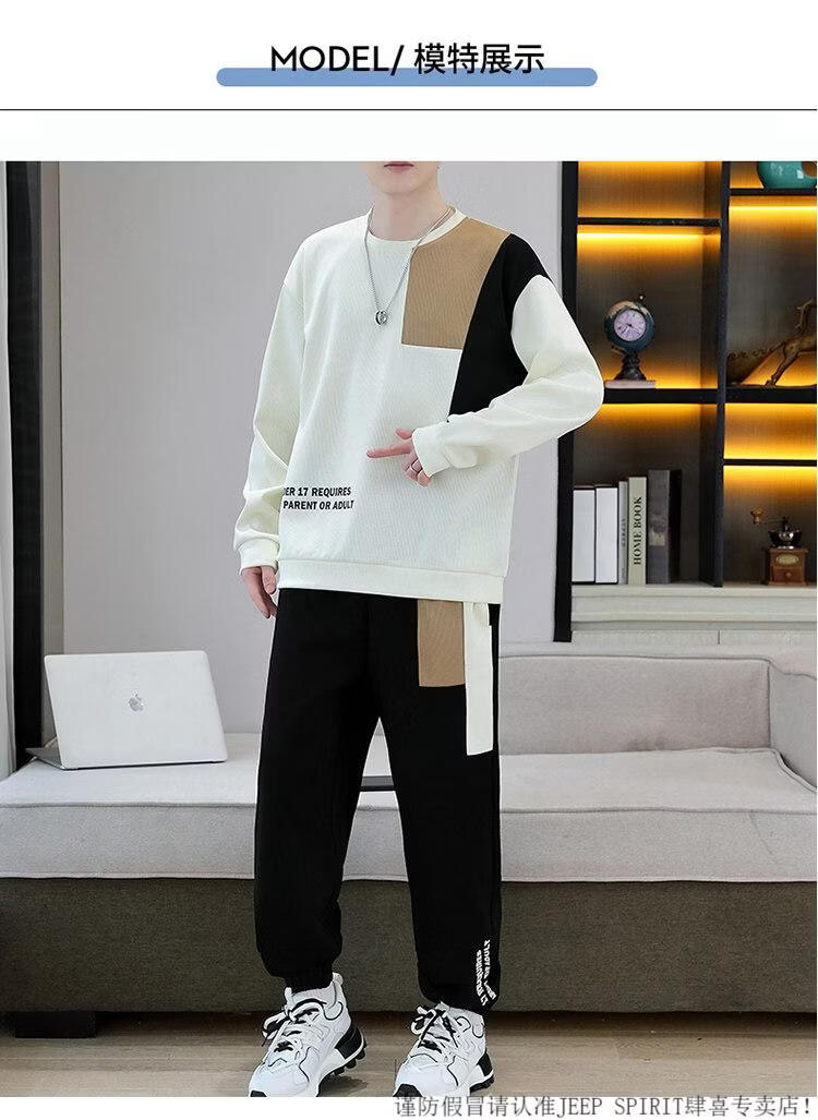 JEEP SPIRIT suit men's spring and autumn casual sports wear set with contrasting color splicing loose long-sleeved thick cotton T with T4 black sweatshirt suit M (about 90-110Jin Jin equals 0.5 kg can be worn)