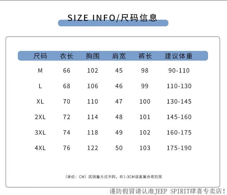 China (cm) 165 / 88-90 170 / 96-98 175 / 108-110 180 / 118-122 185 / 126-130