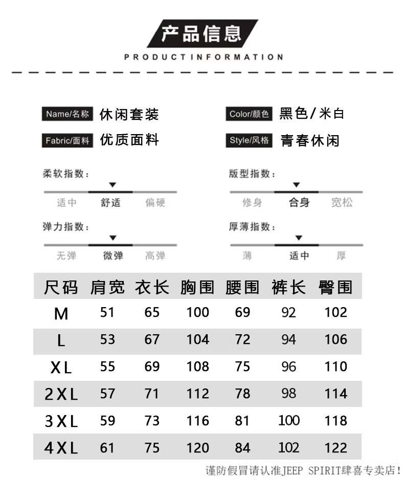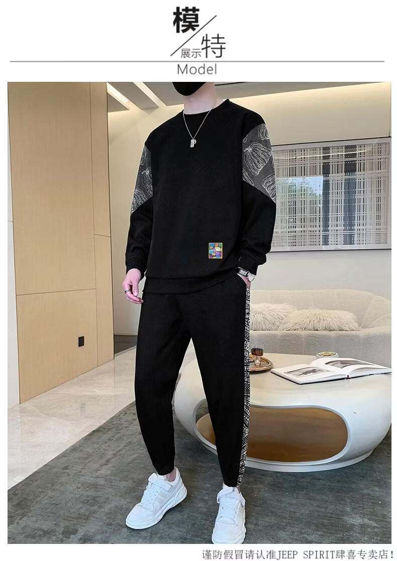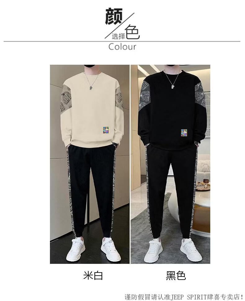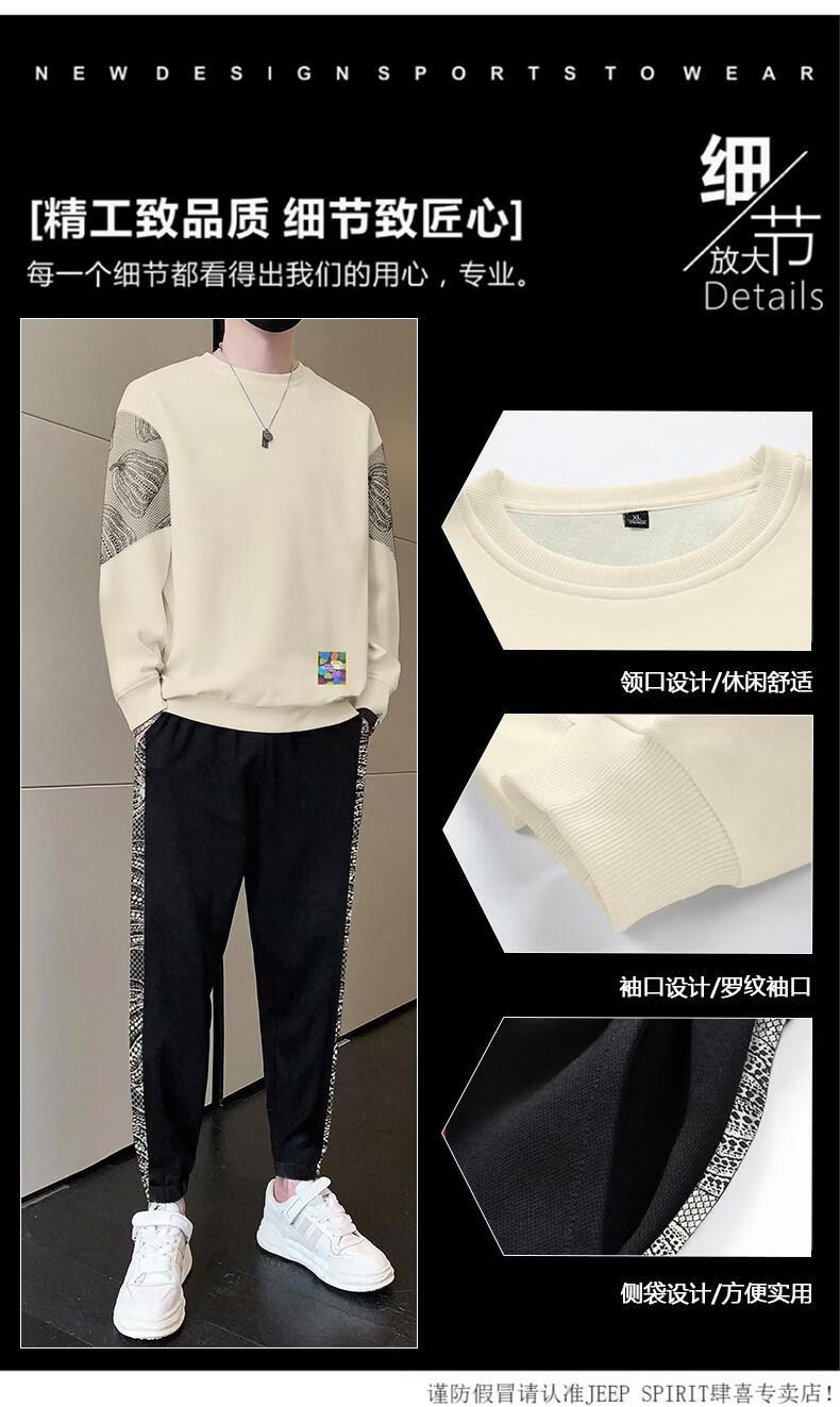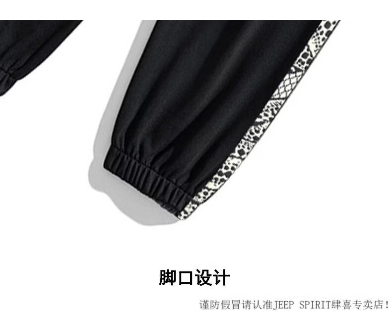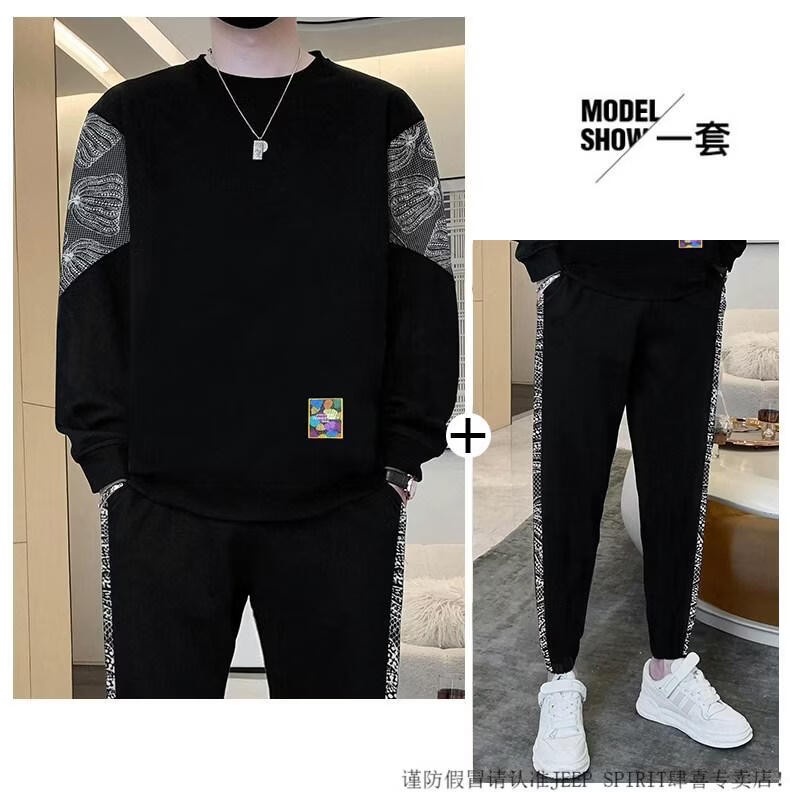 JEEP SPIRIT casual sports suit men's spring and autumn trendy loose round neck pullover long-sleeved sweatshirt running two-piece set black 577 M 90-110Jin Jin equals 0.5 kg