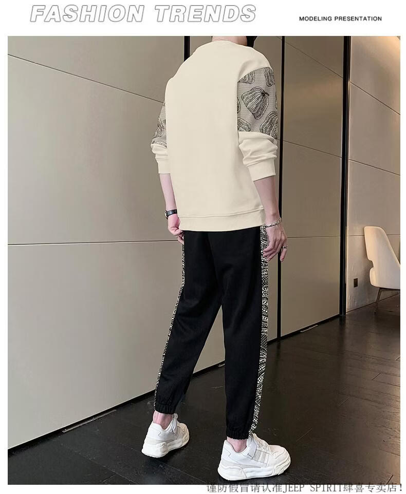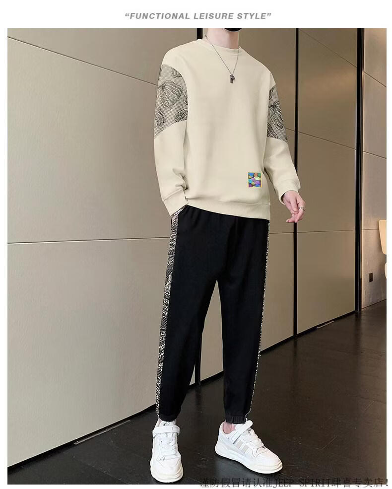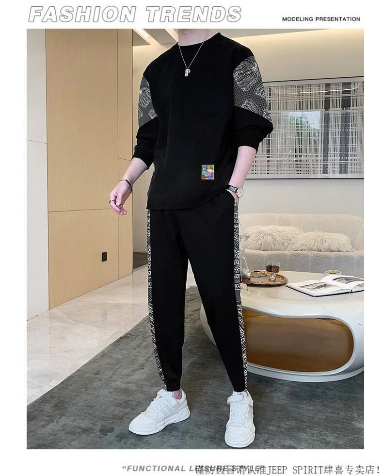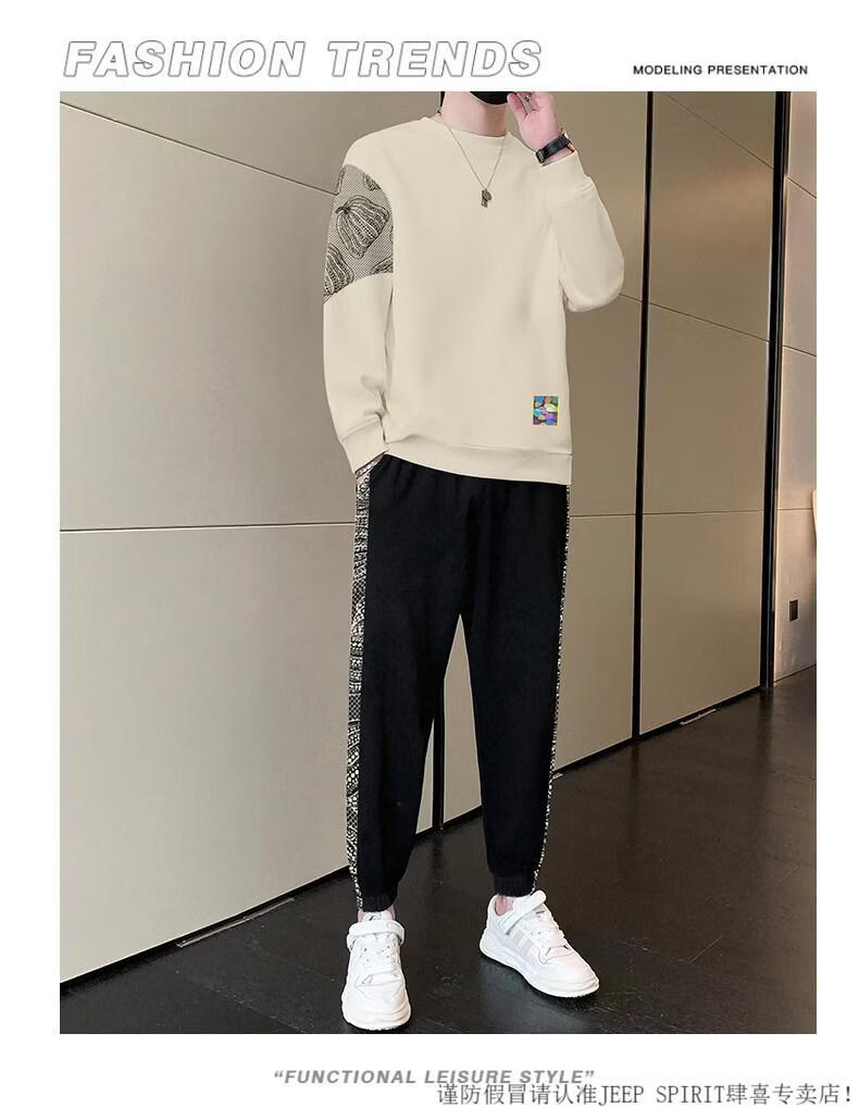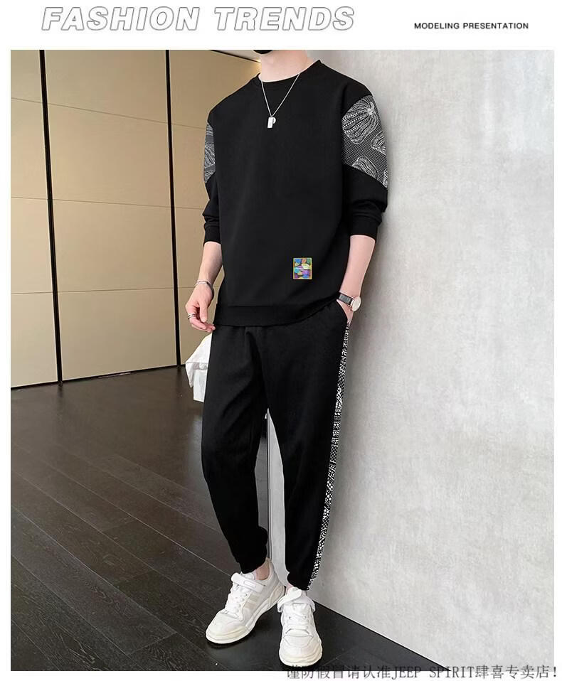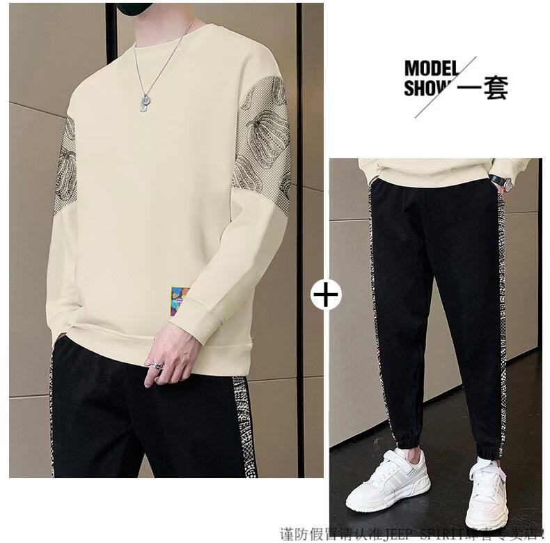 JEEP SPIRIT casual sports suit men's spring and autumn trendy loose round neck pullover long-sleeved sweatshirt running two-piece set black 577 M 90-110Jin Jin equals 0.5 kg