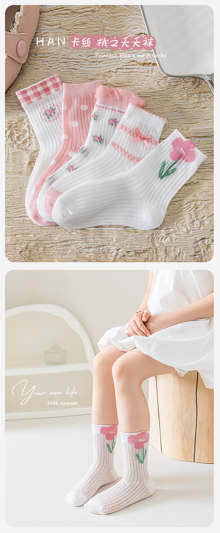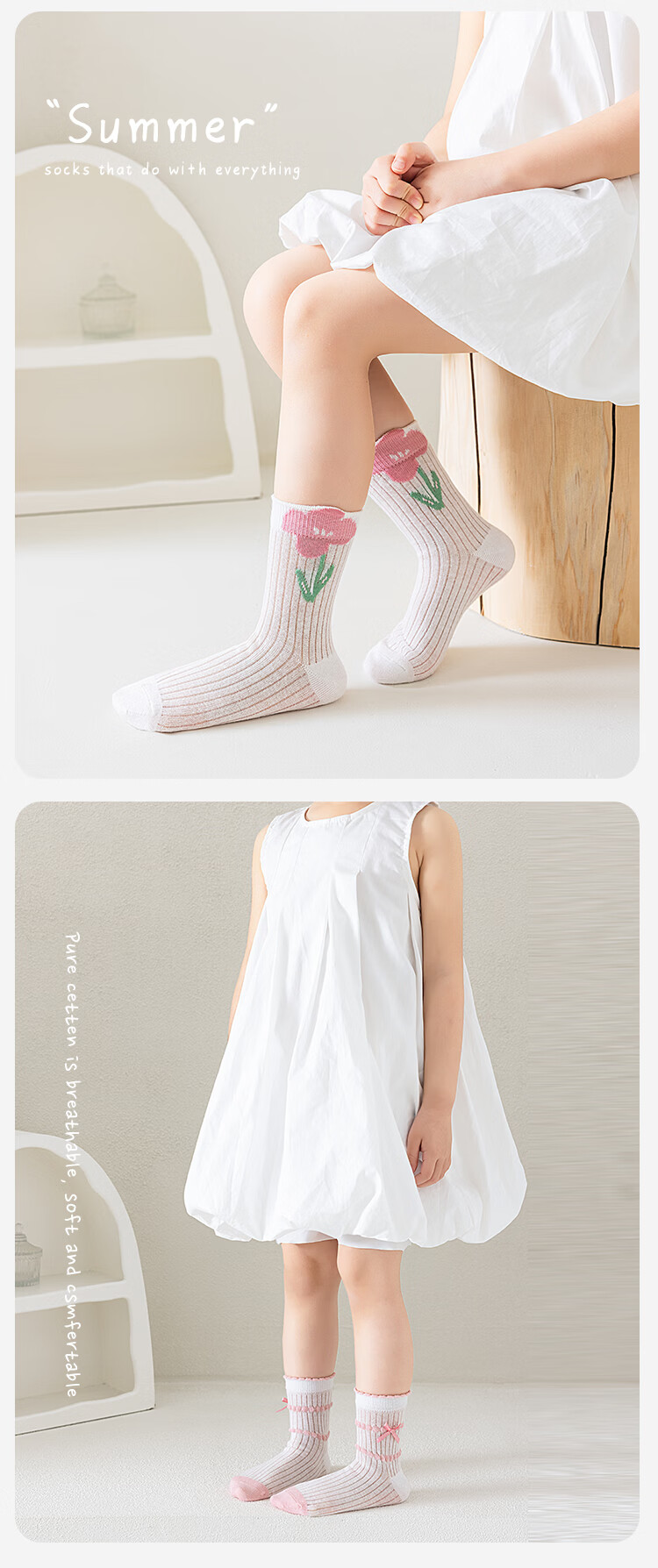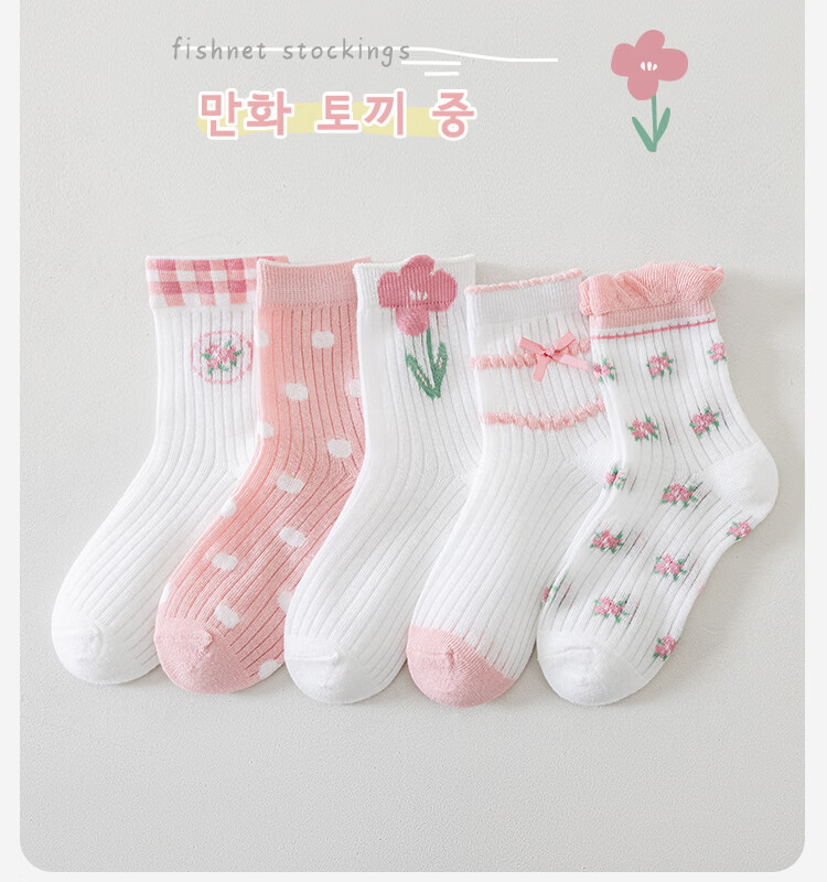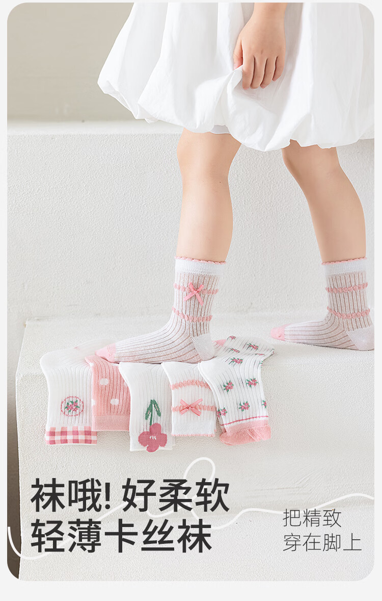 Catman Children's Socks Girls Summer Ultra-Thin Mesh Socks Student Cotton Socks Girls Mid-Tube Socks Breathable Cassette Baby Socks Taro Cat 5 Pairs 3-5 Years Old