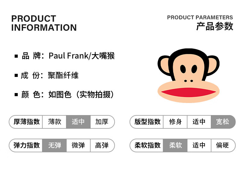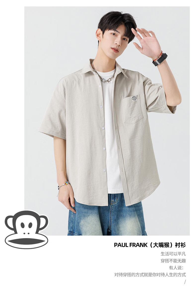 Big Mouth Monkey (paul frank) American short-sleeved shirt men's summer new trendy brand loose casual all-match shirt comfortable breathable work jacket black official authentic M recommended 80-110Jin Jin equals 0.5 kg