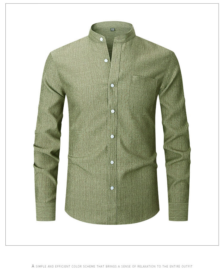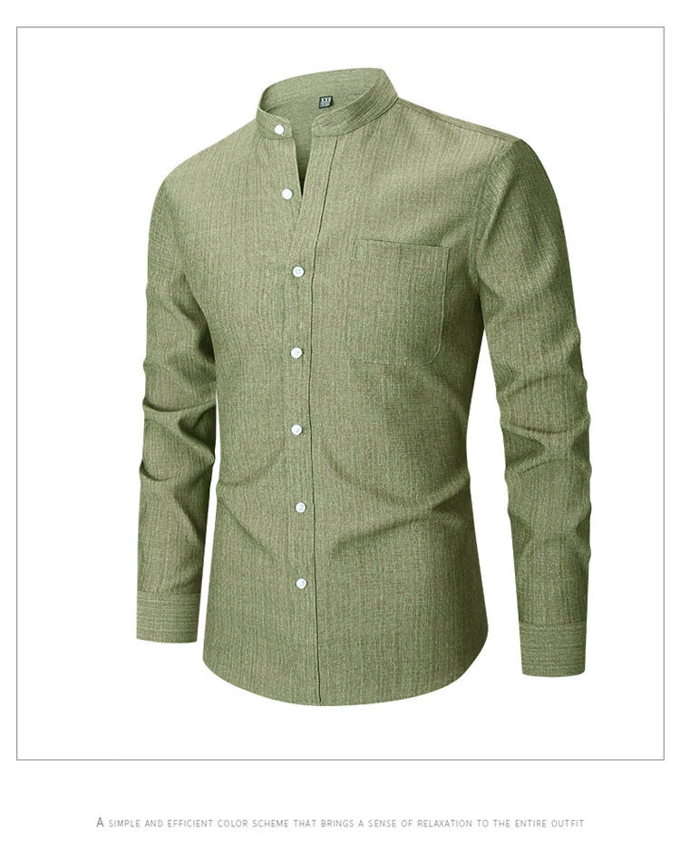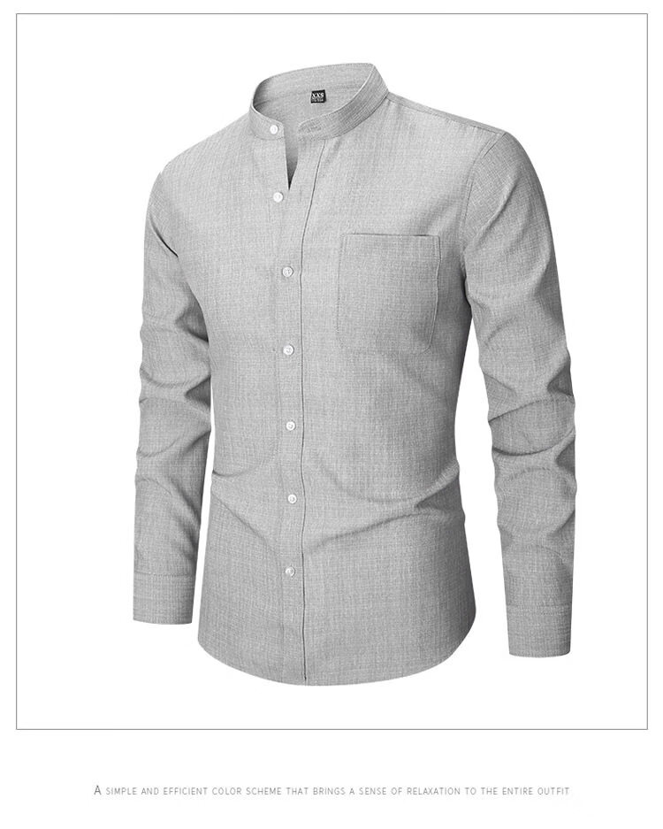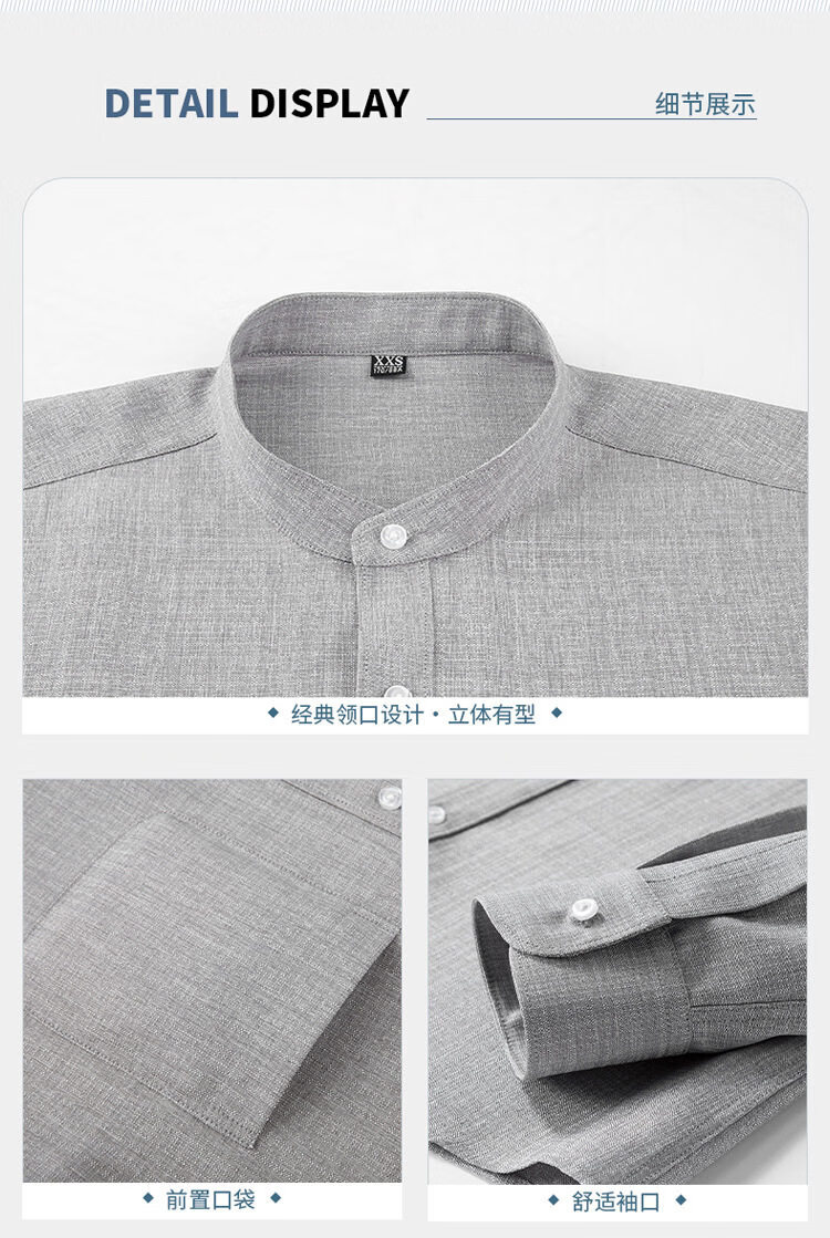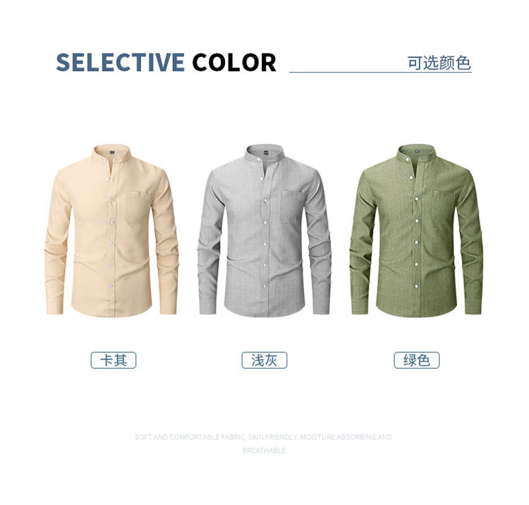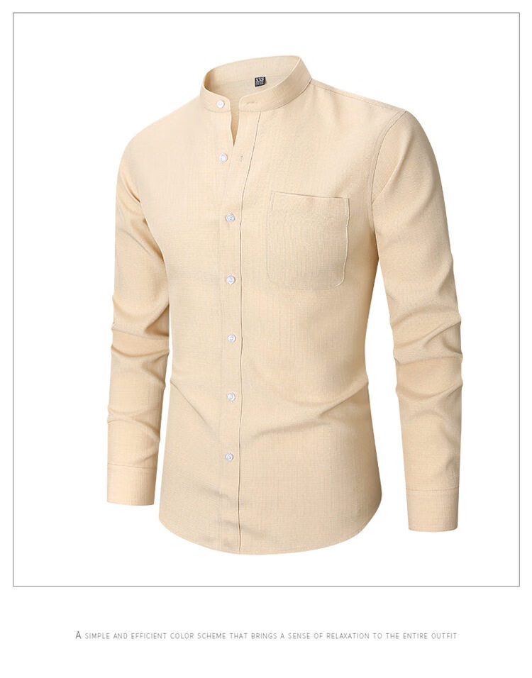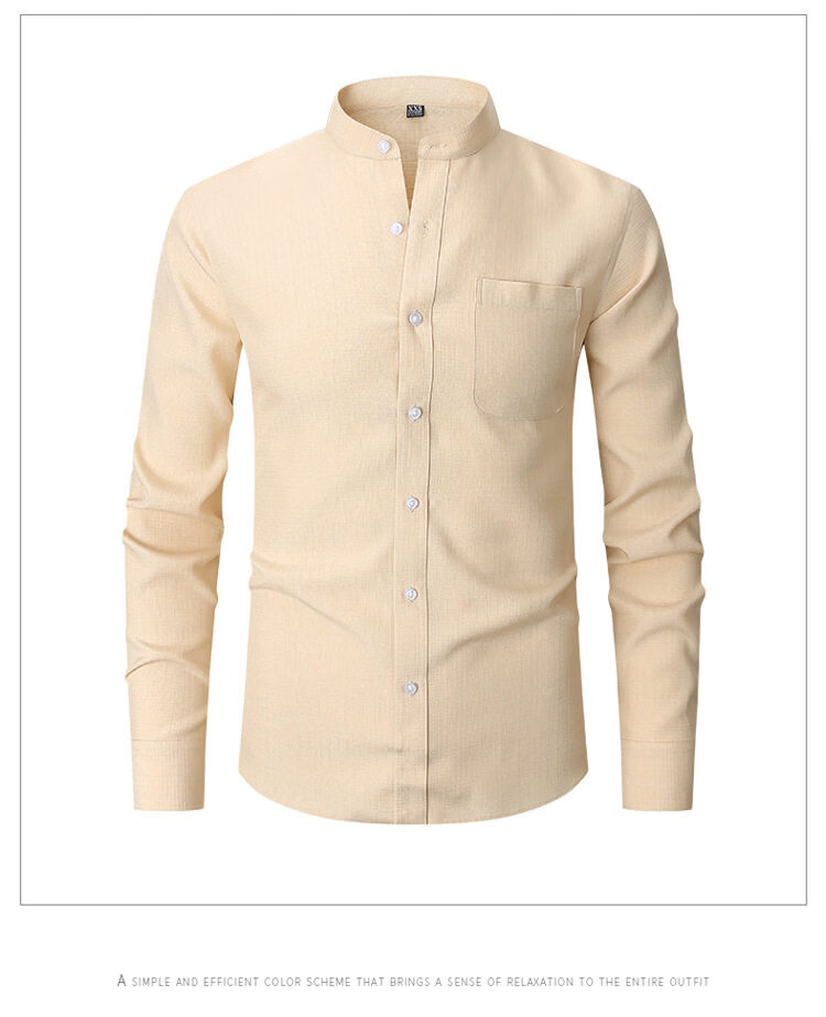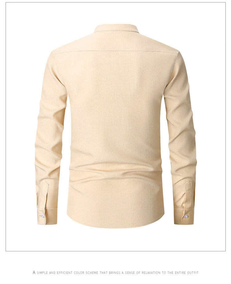 ROMON 2026 Spring New Chinese Style Stand Collar Long Sleeve Shirt Men's Business Casual Washable No-Iron Thin Ice Silk Shirt Apricot XXS L-170/88A European Size