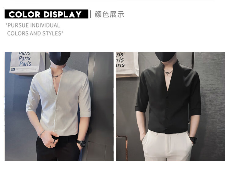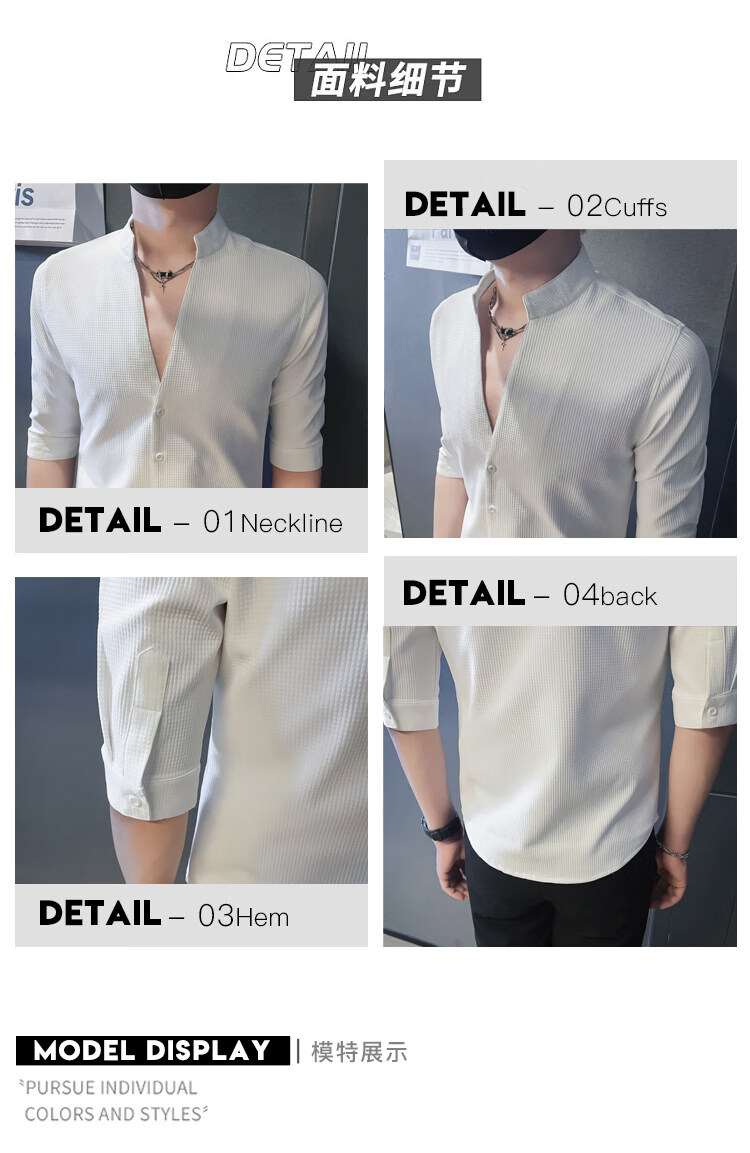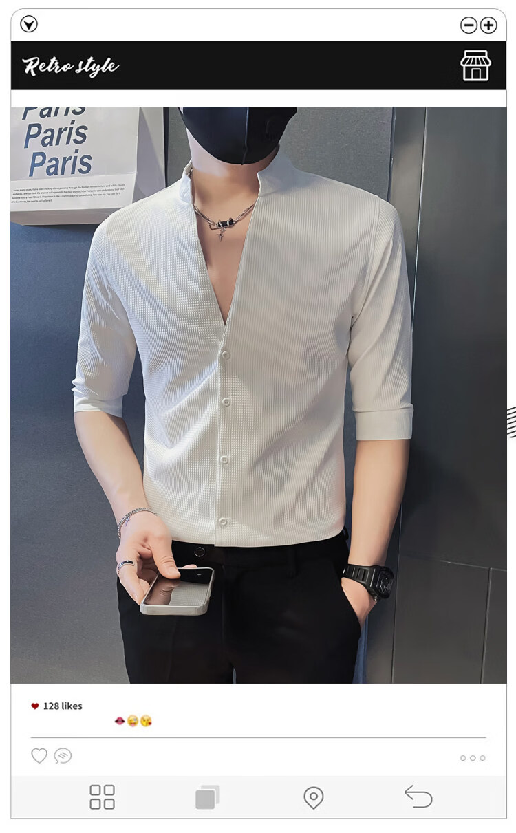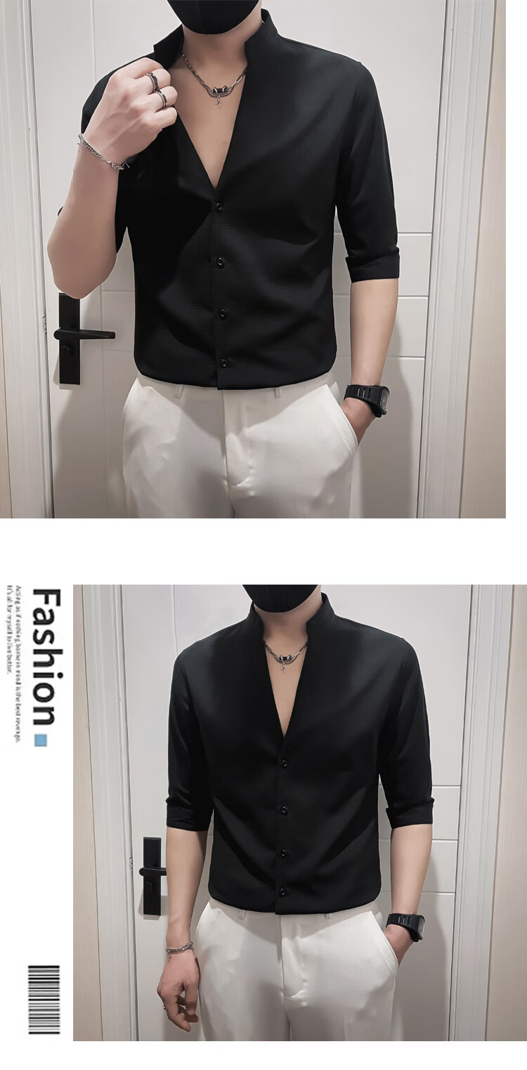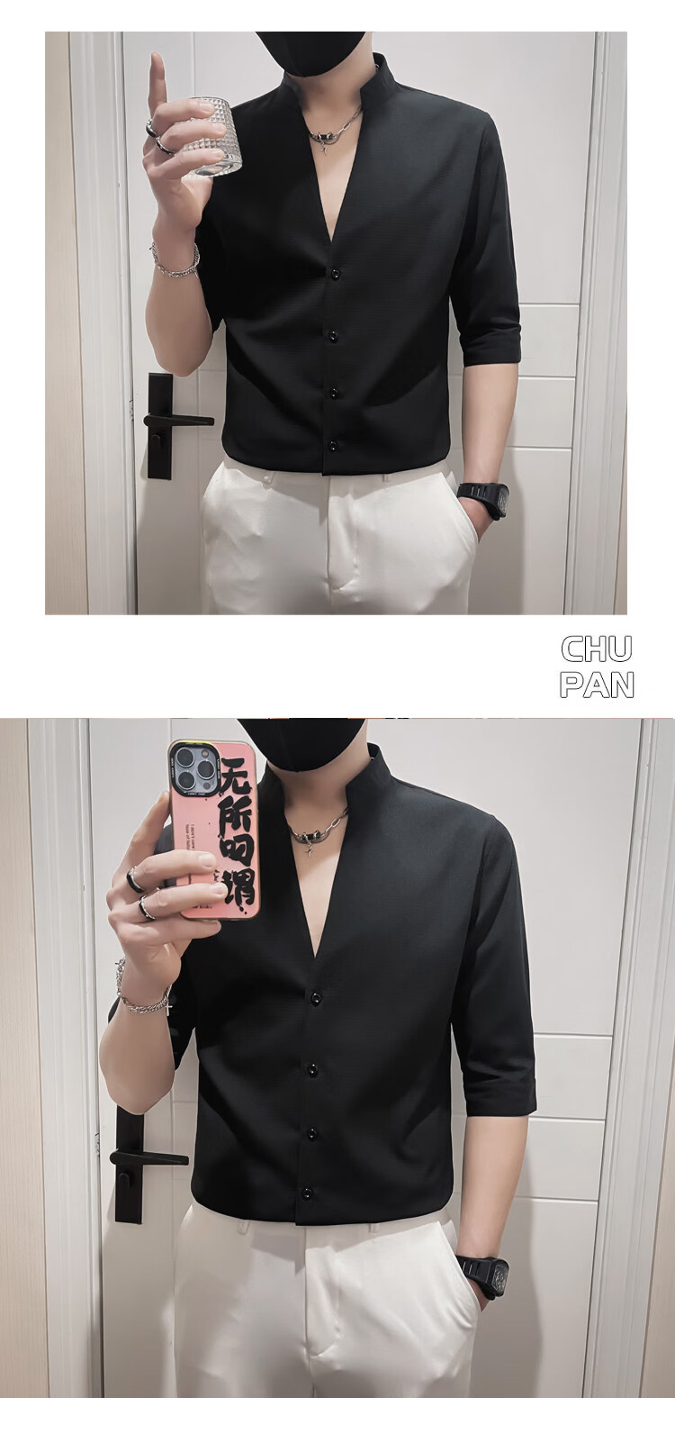 ROMON summer V-neck shirt men's short-sleeved trendy half-sleeved shirt 2026 new design trendy brand stand-up collar mid-sleeve men's clothing white XL recommended (125-135Jin Jin equals 0.5 kg)