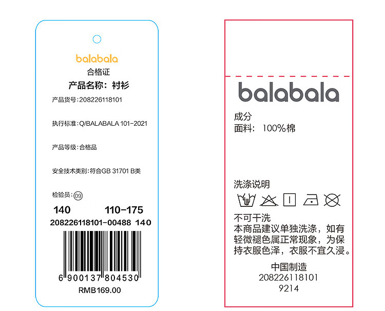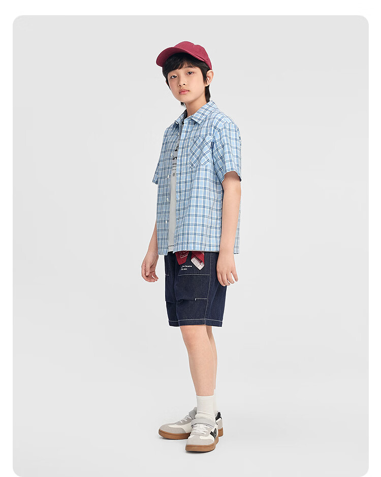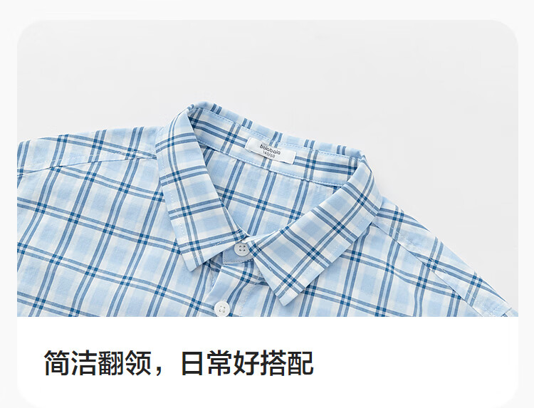 BALABALA balaOne boys short-sleeved shirt children's big children's shirt 2026 new summer pure cotton blue tone 00488 110