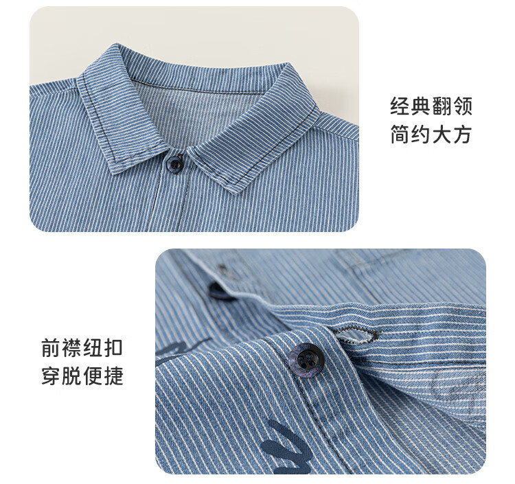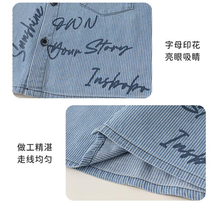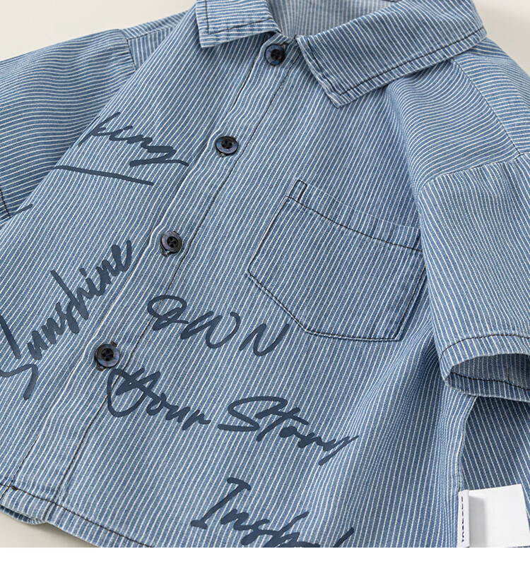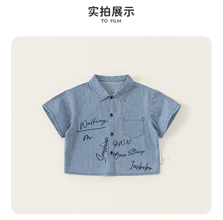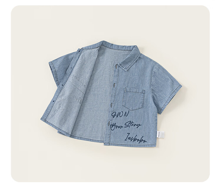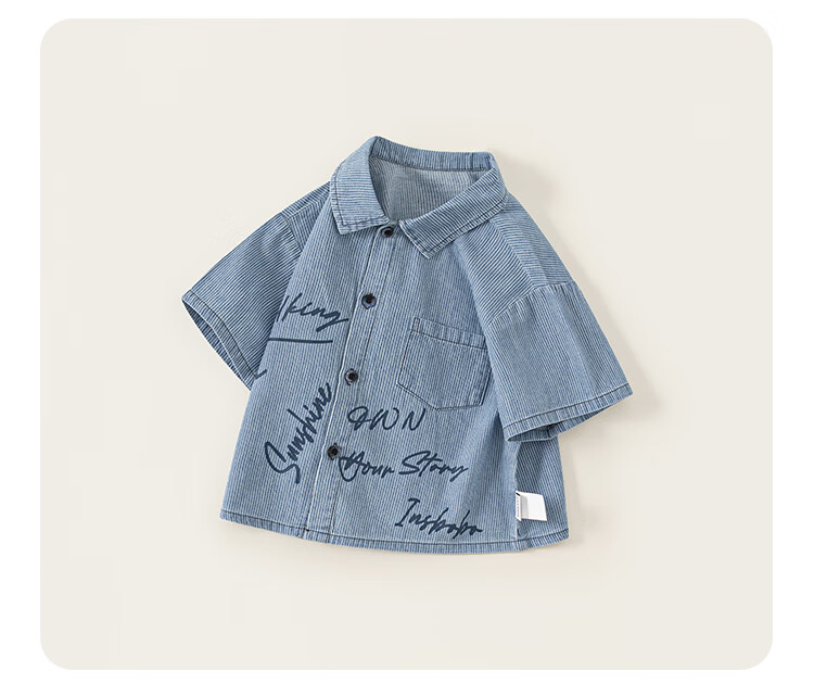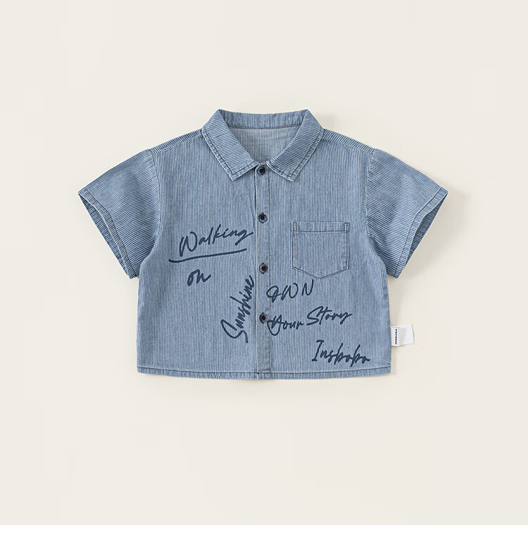 INSBOBO Boys' Shirts 2026 Summer New Children's Denim Shirts Boy's Good-looking Western Style Children's Clothes Summer Clothes Denim Stripes 90