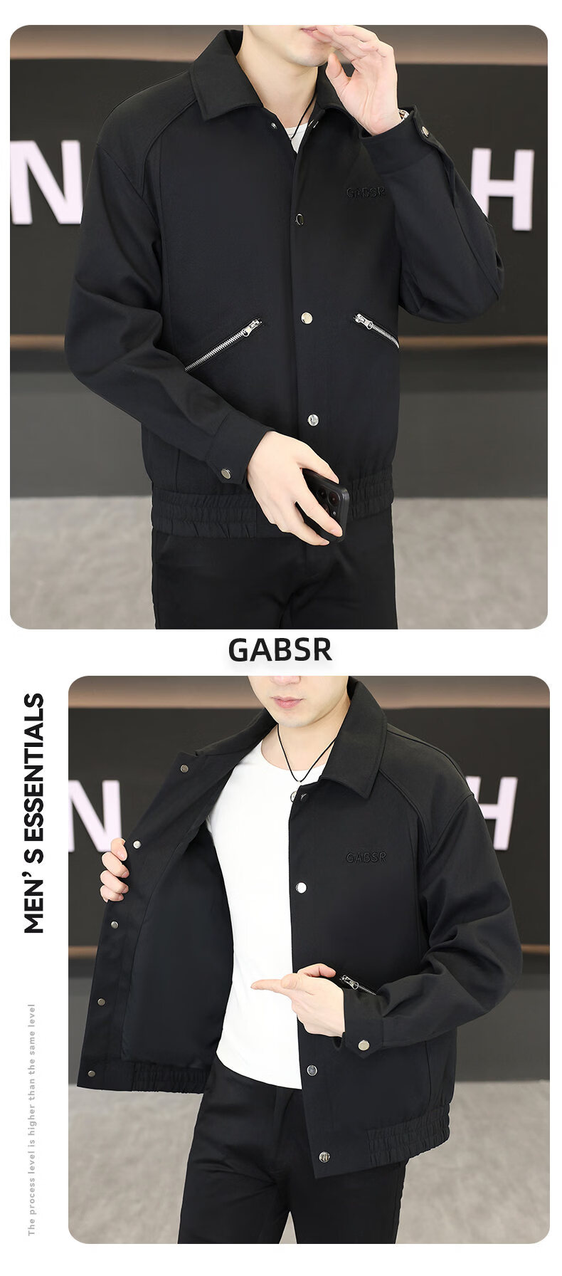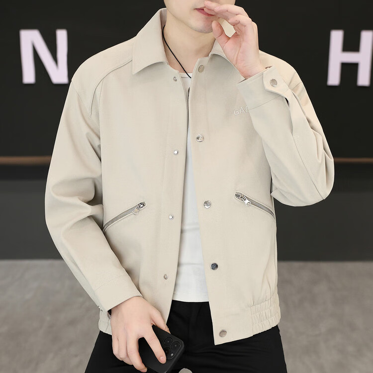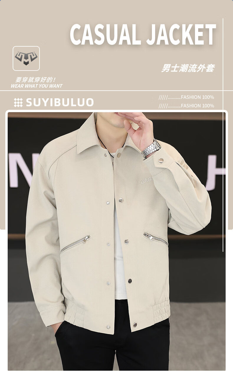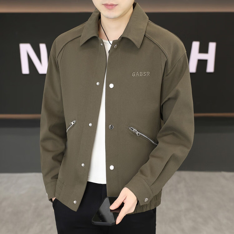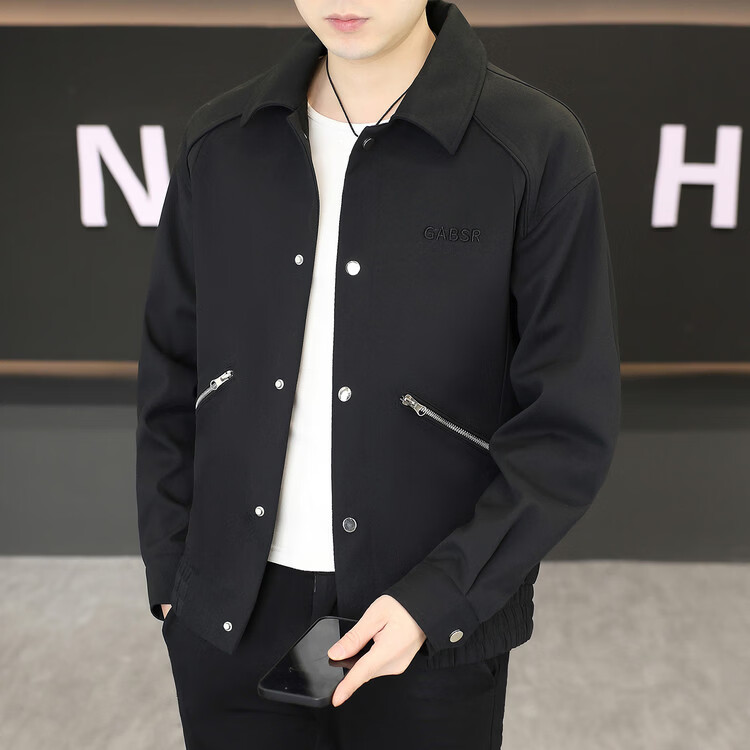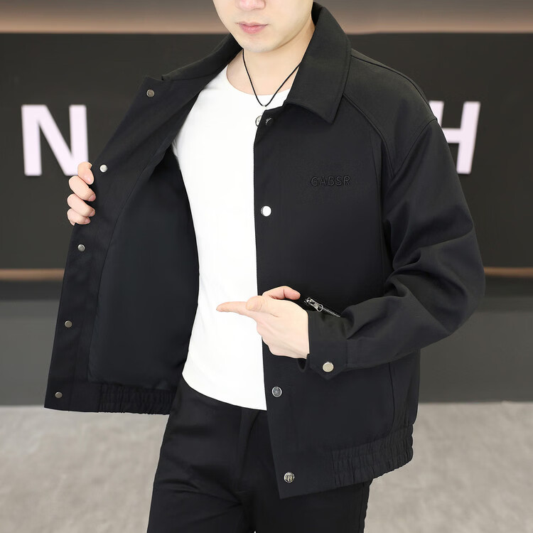 Hengyuanxiang Lapel Work Jacket Men's Spring and Autumn New Trendy Brand Casual Simple Versatile Solid Color Loose Top Jacket Black M