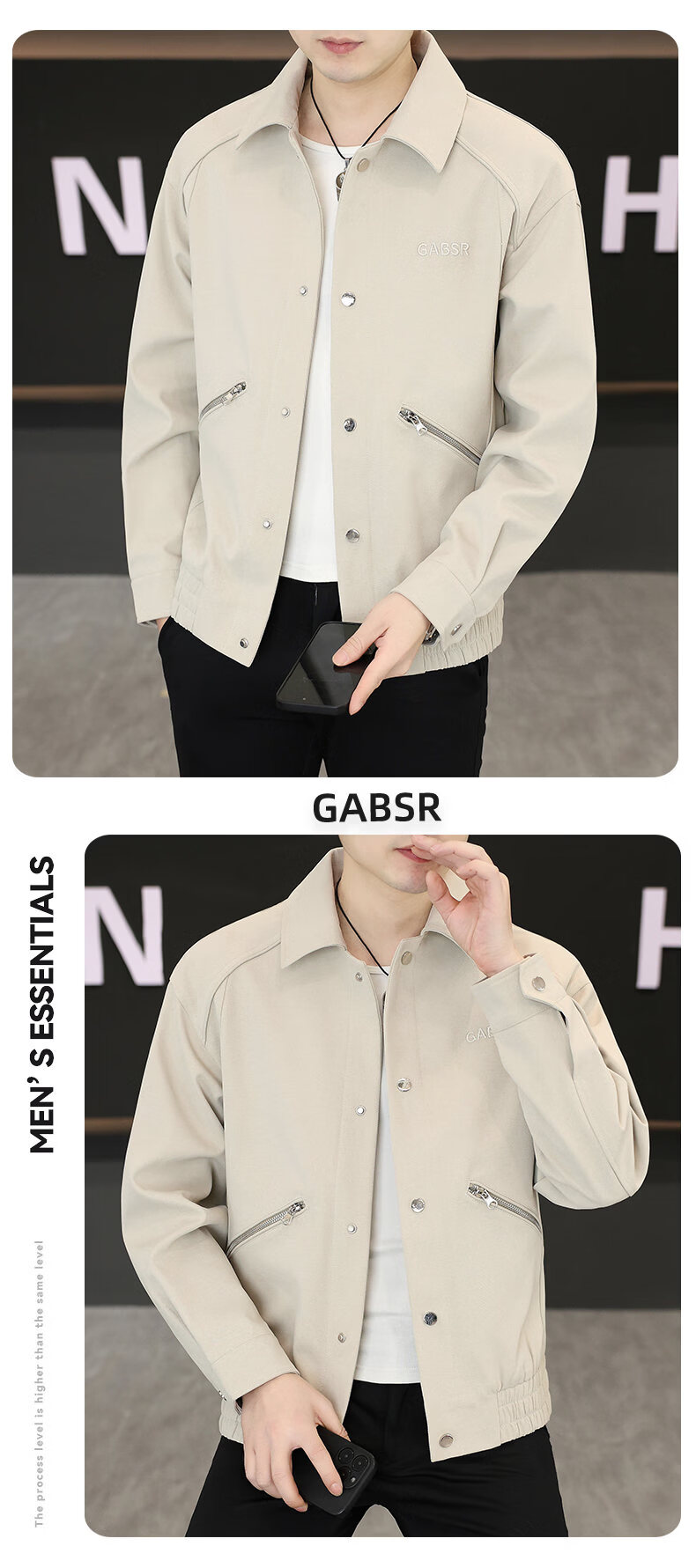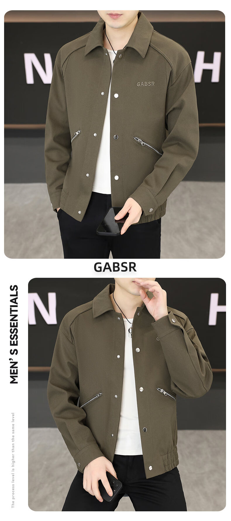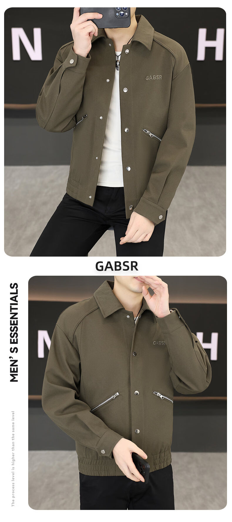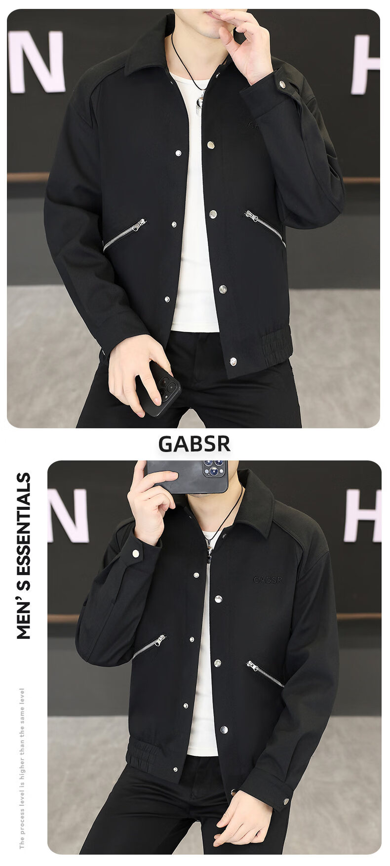 Hengyuanxiang Lapel Work Jacket Men's Spring and Autumn New Trendy Brand Casual Simple Versatile Solid Color Loose Top Jacket Black M