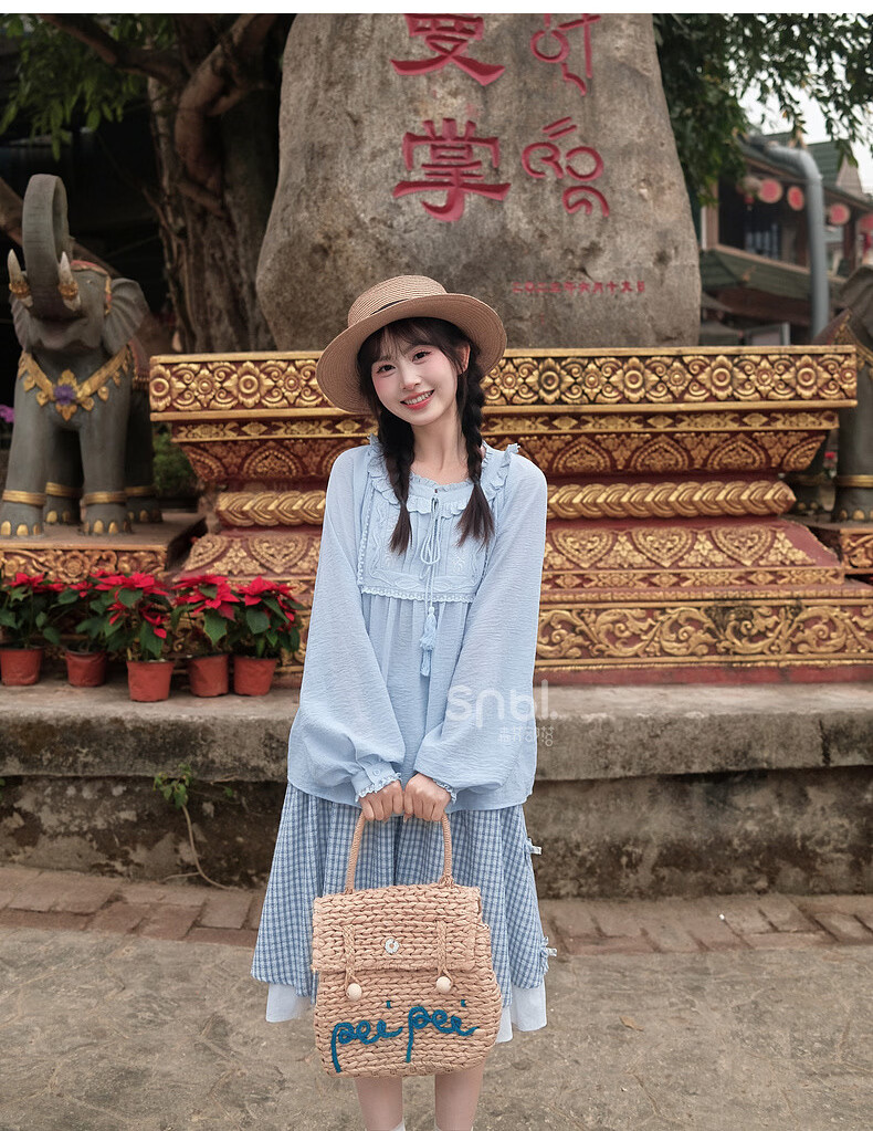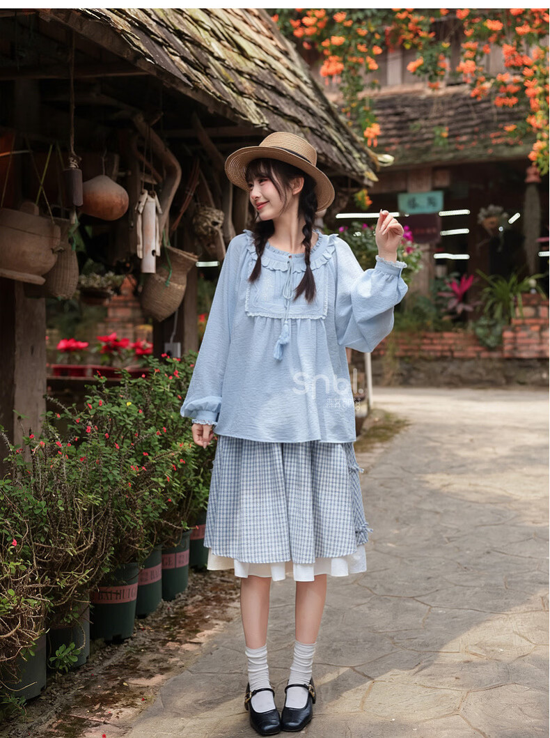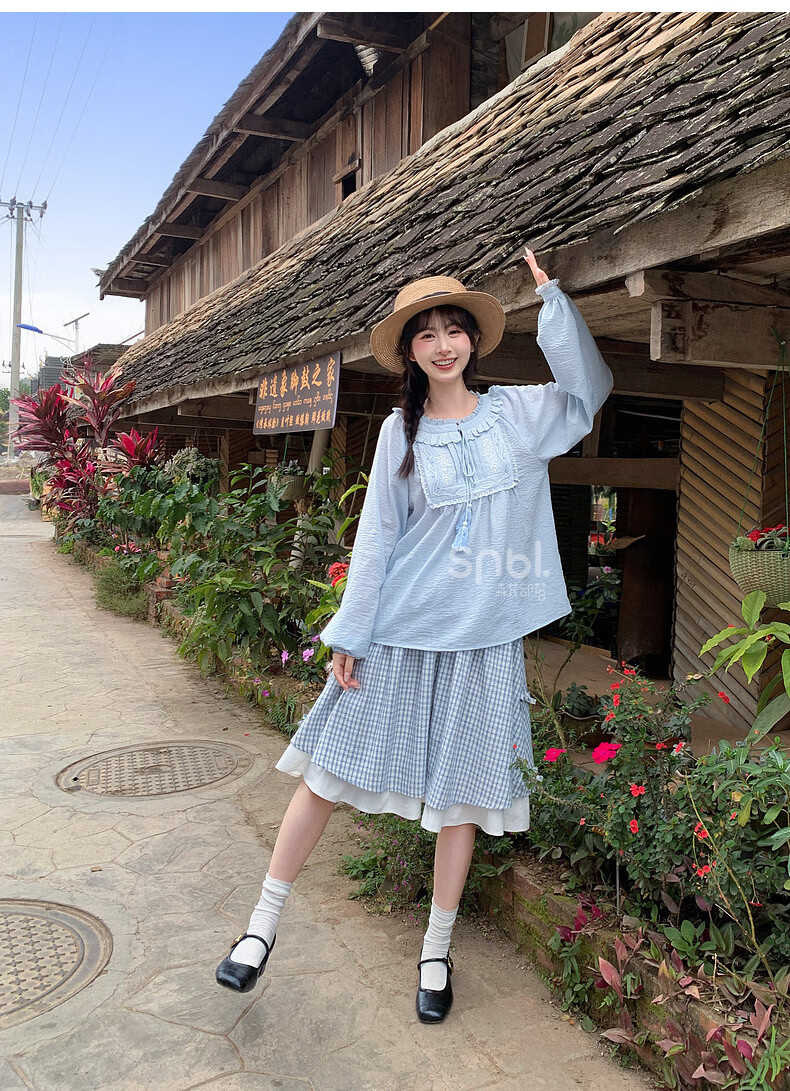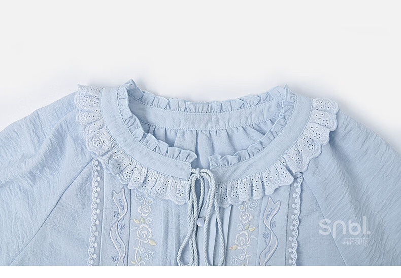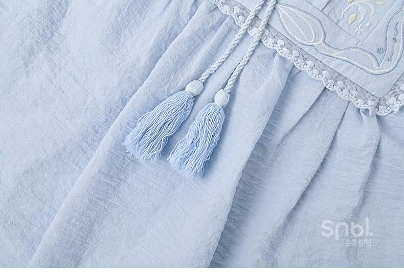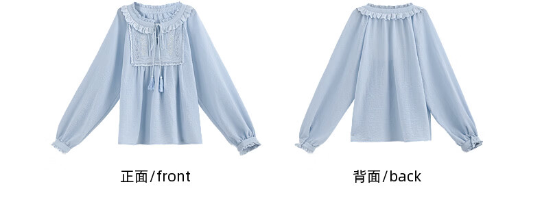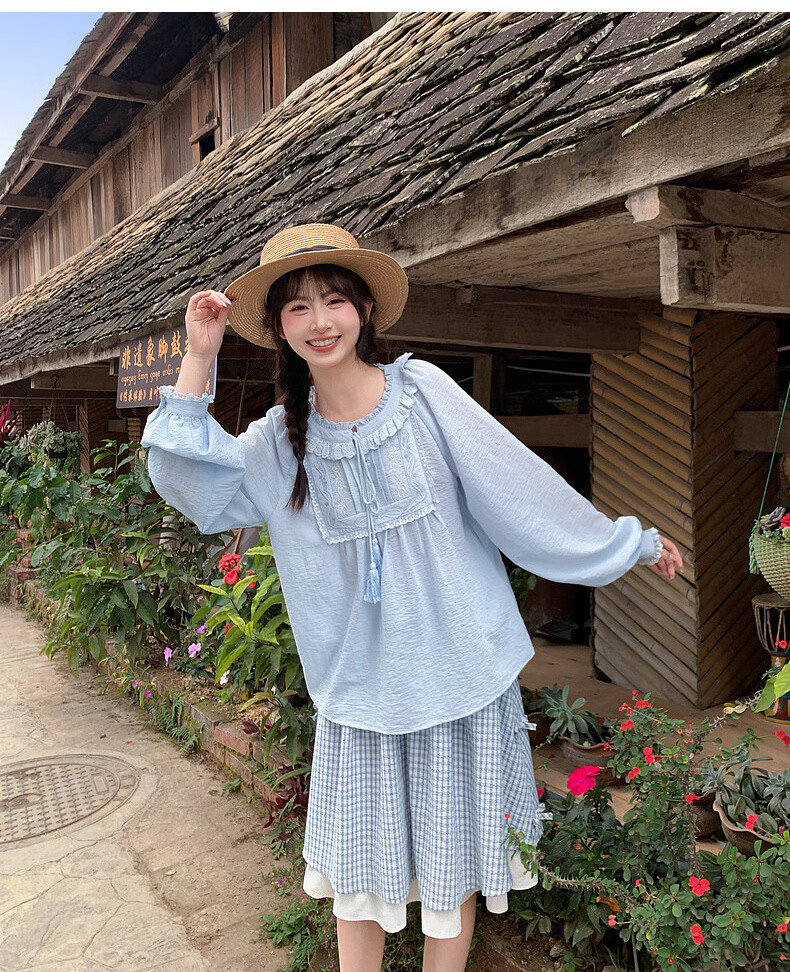 Forest Girl Tribal Sweet Style Embroidered Shirt Women's New Tassel Lace Design Forest Style Versatile Loose Top Summer Blue Top S Model Code