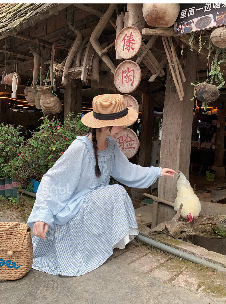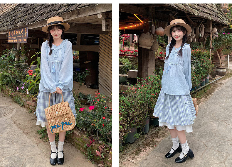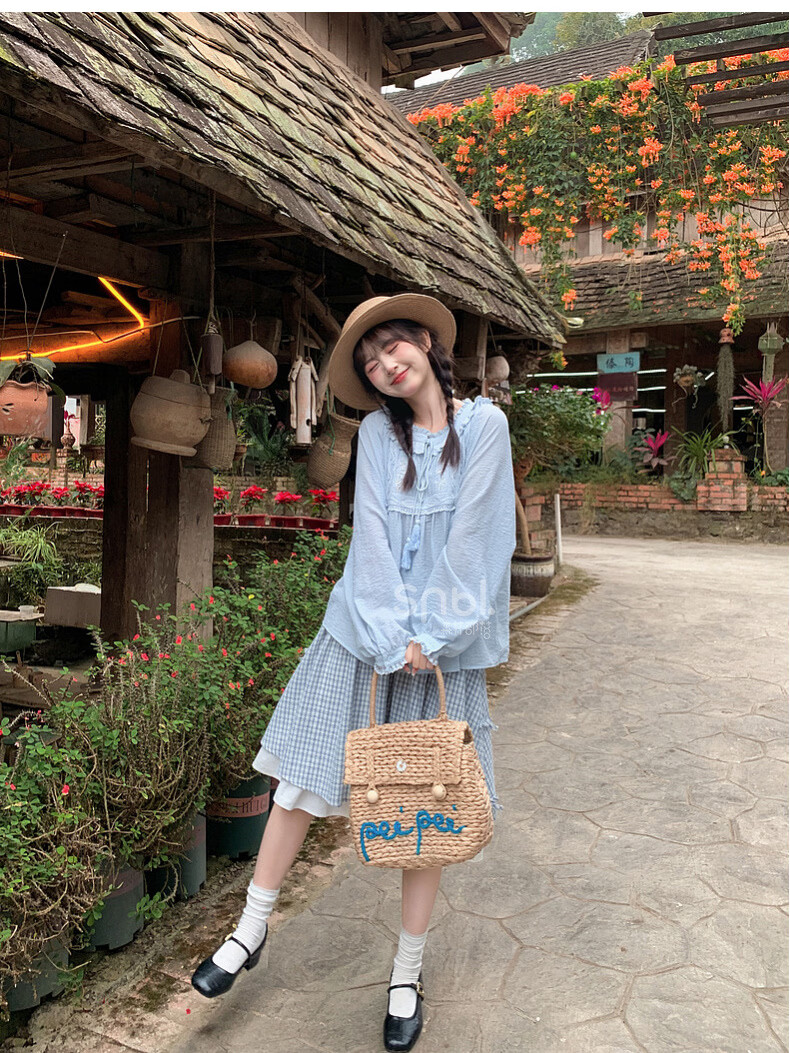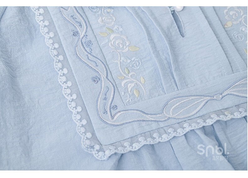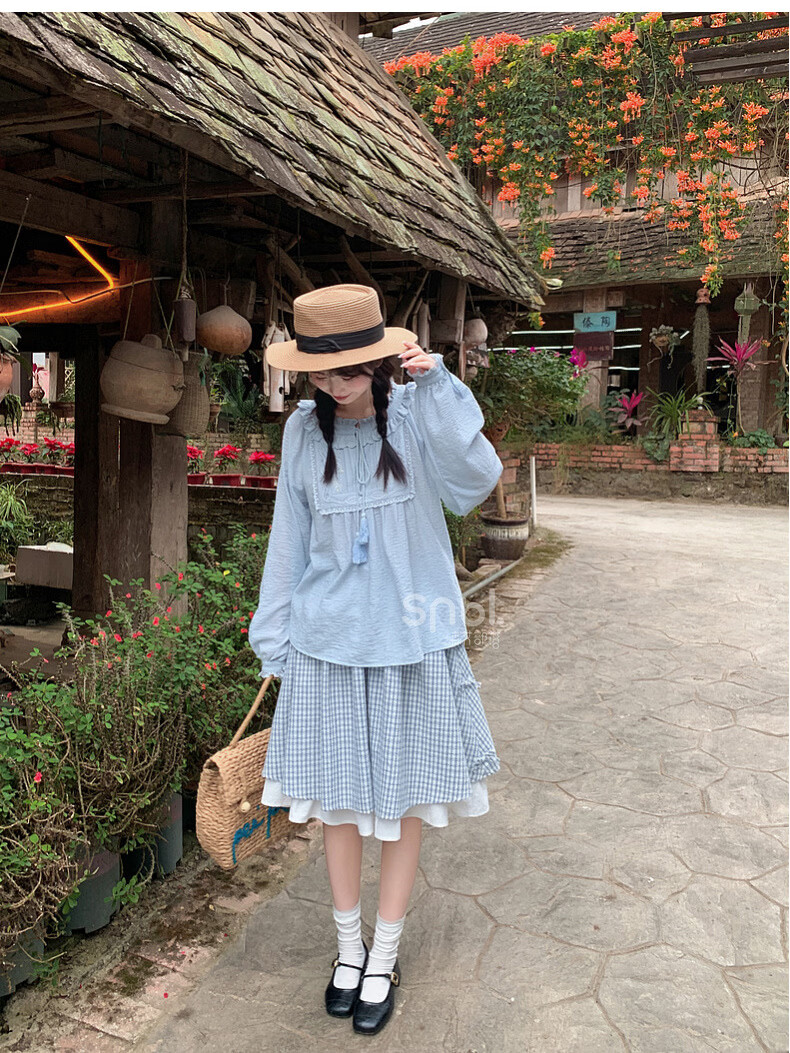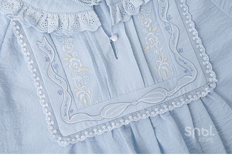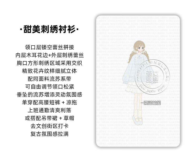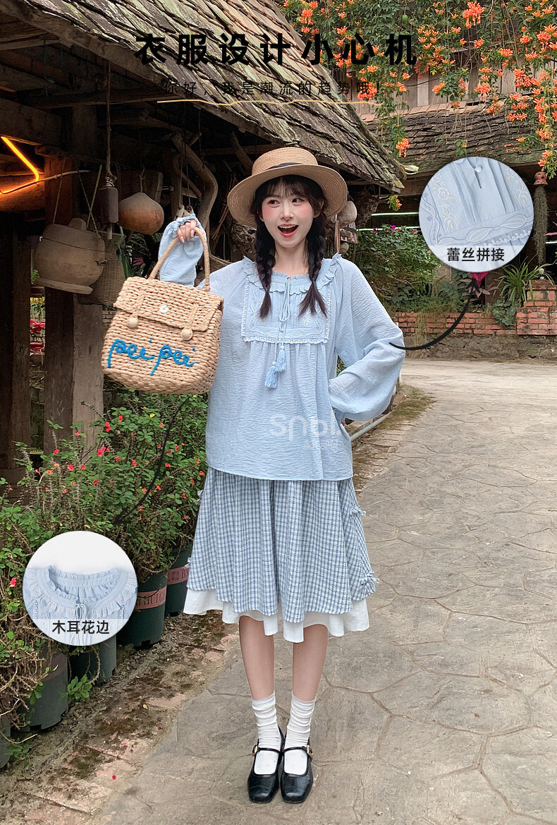 Forest Girl Tribal Sweet Style Embroidered Shirt Women's New Tassel Lace Design Forest Style Versatile Loose Top Summer Blue Top S Model Code