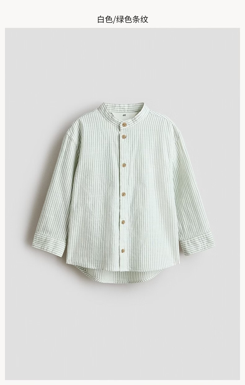 H&M2026 Spring New Children's Clothing Children's Boys Cotton Chinese Collar Shirt 1289756 White/Green Stripes 90 90/52(1.5-2Y)