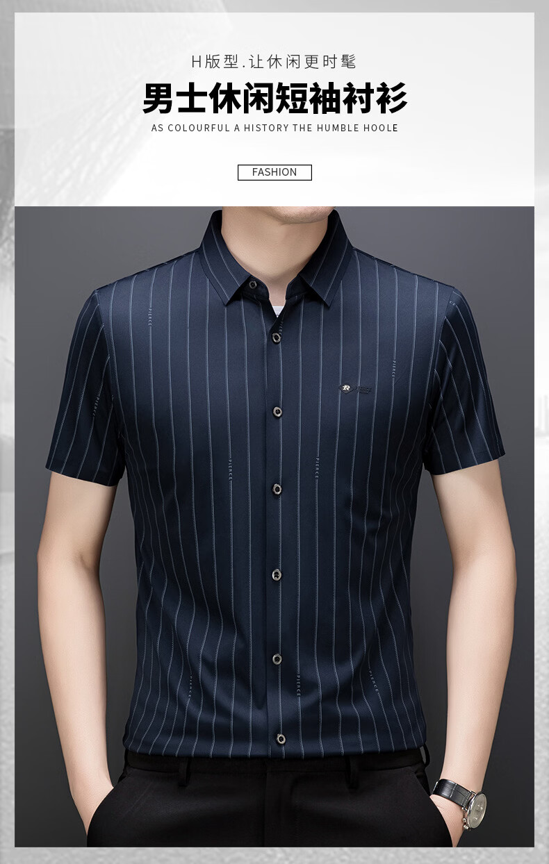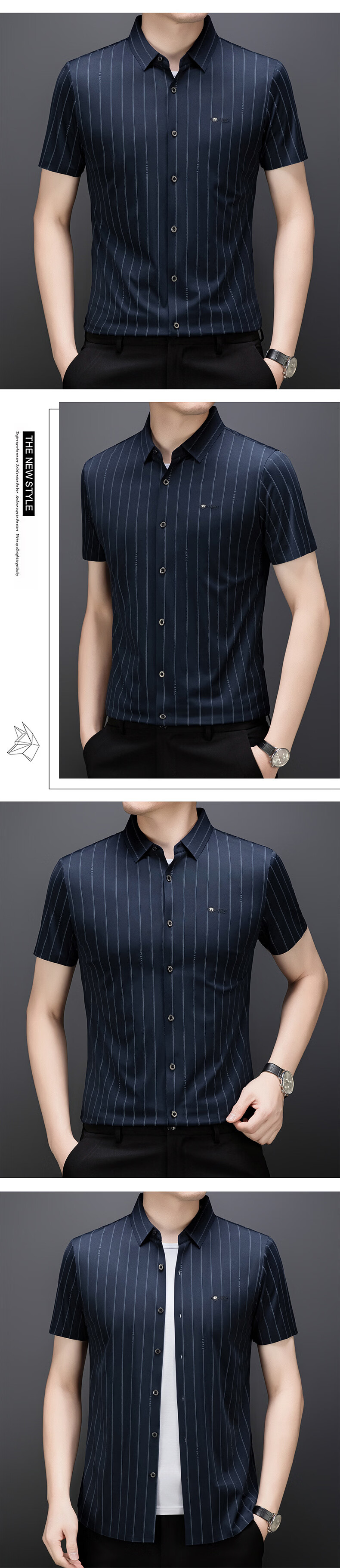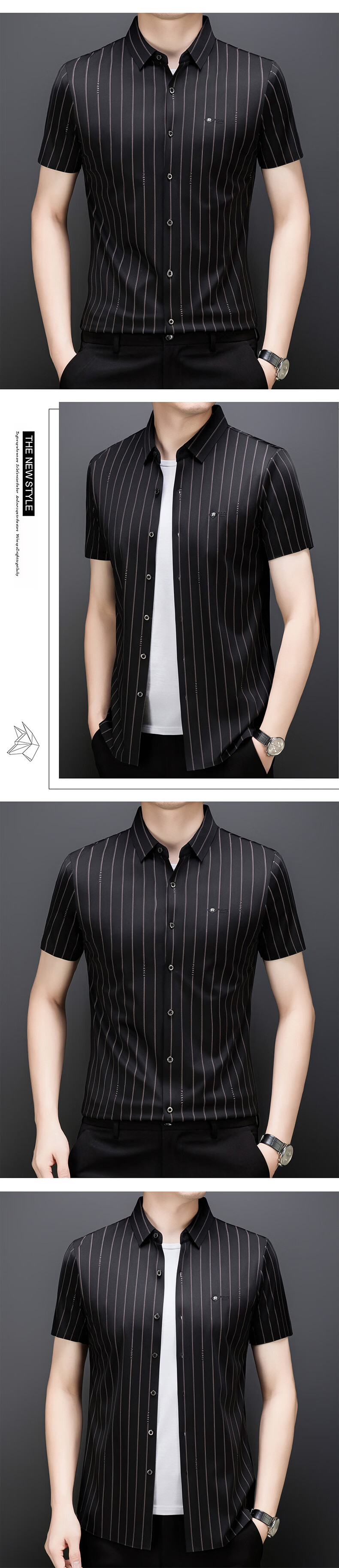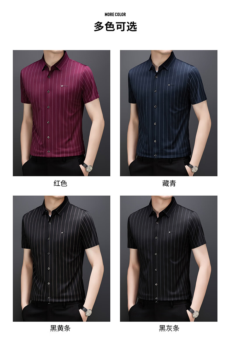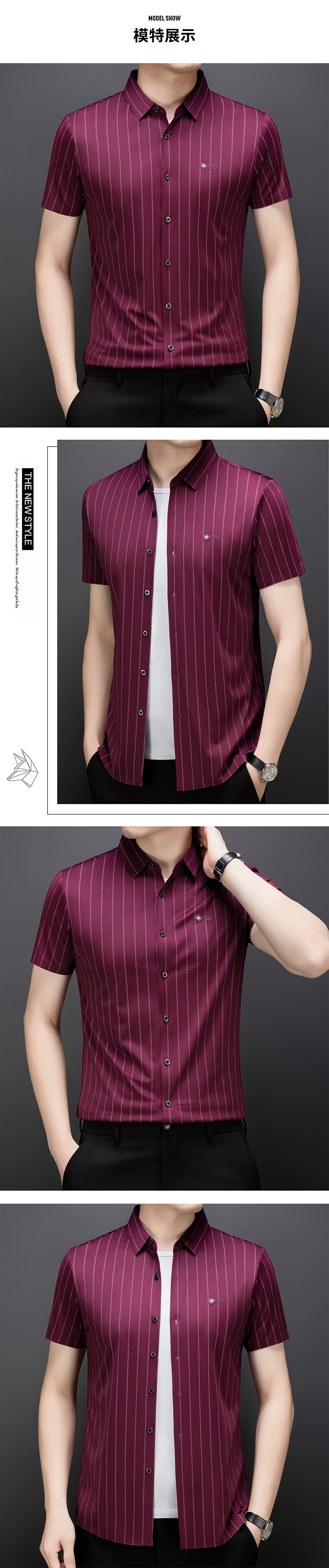 LILANZ summer men's short-sleeved shirt stretch striped non-iron business casual new style printed lapel fashion shirt trend 2721-red M 165105