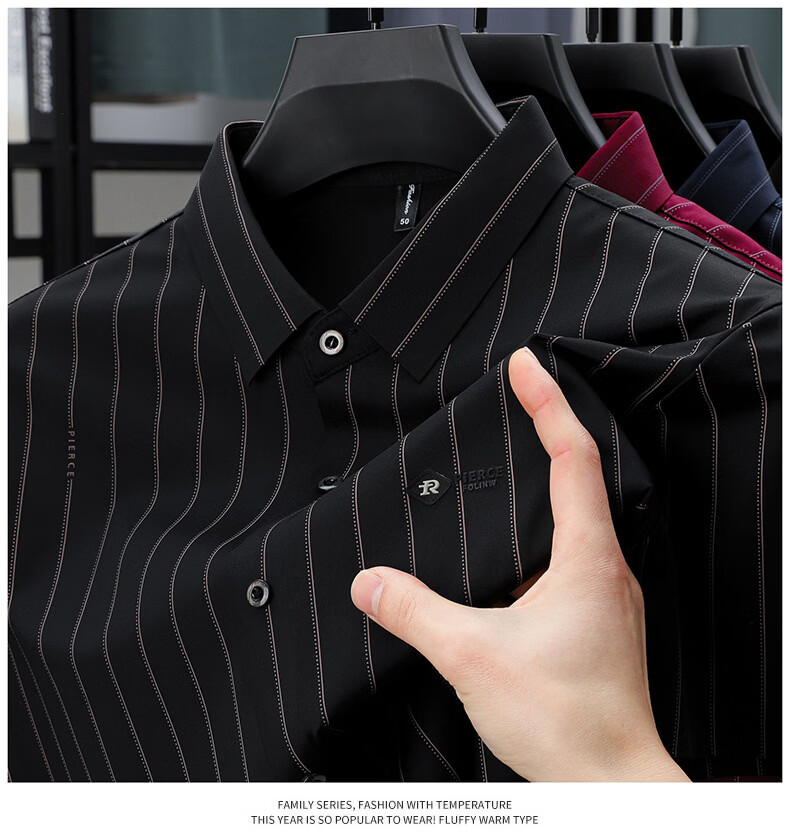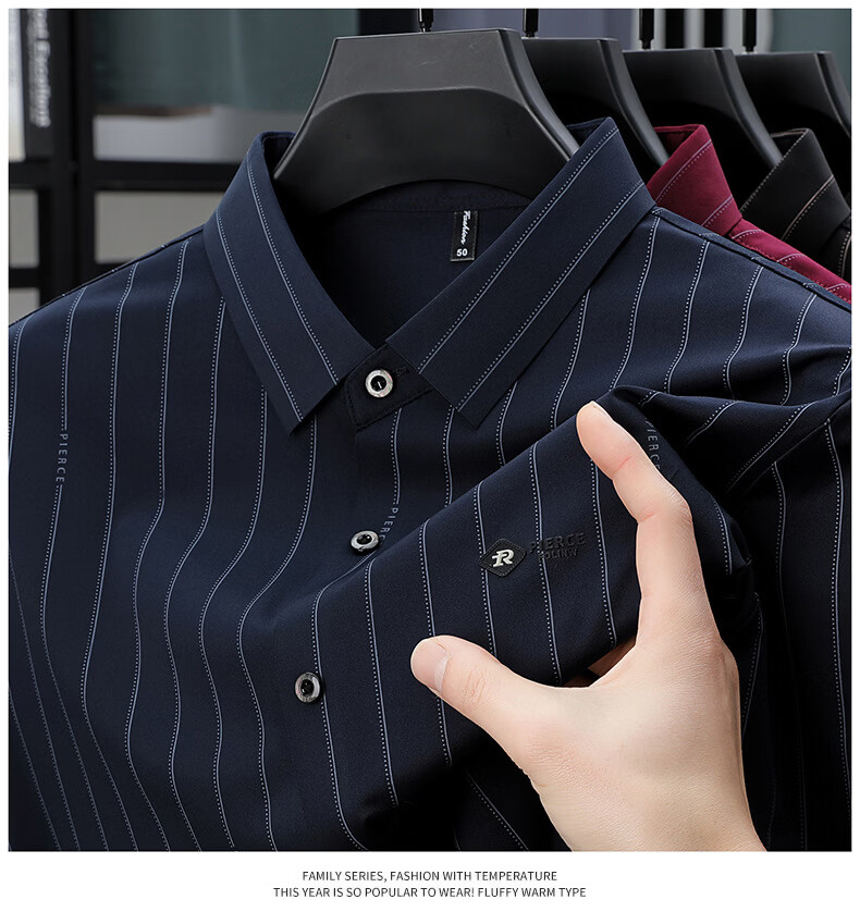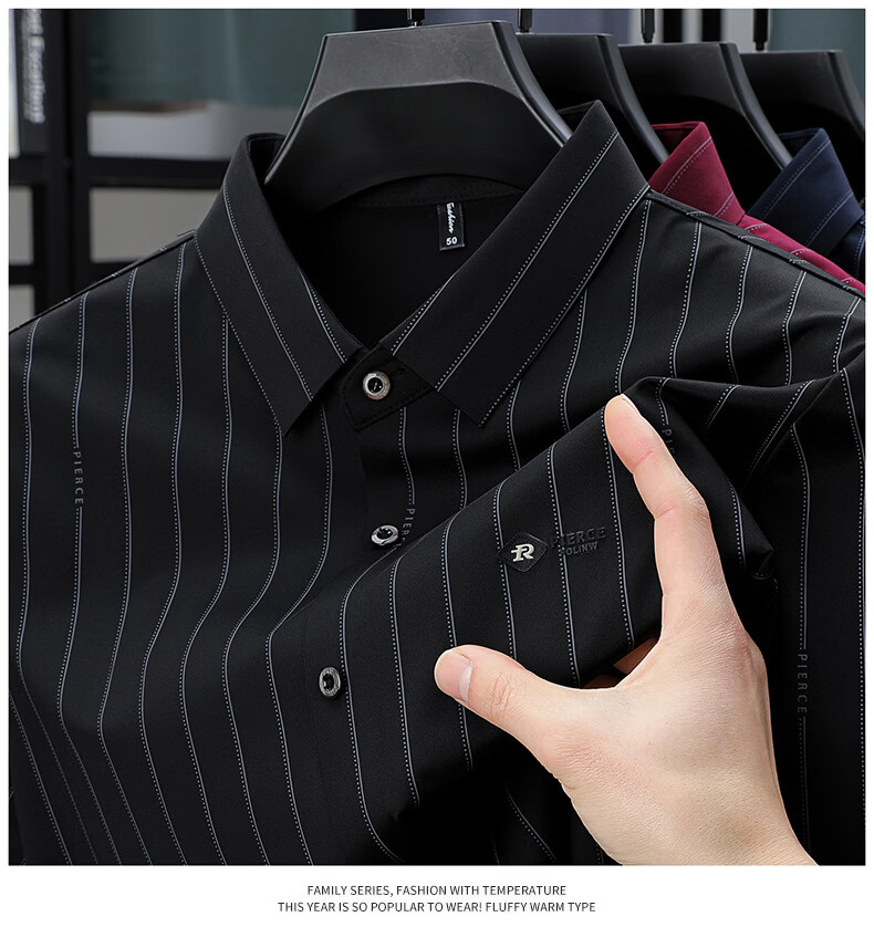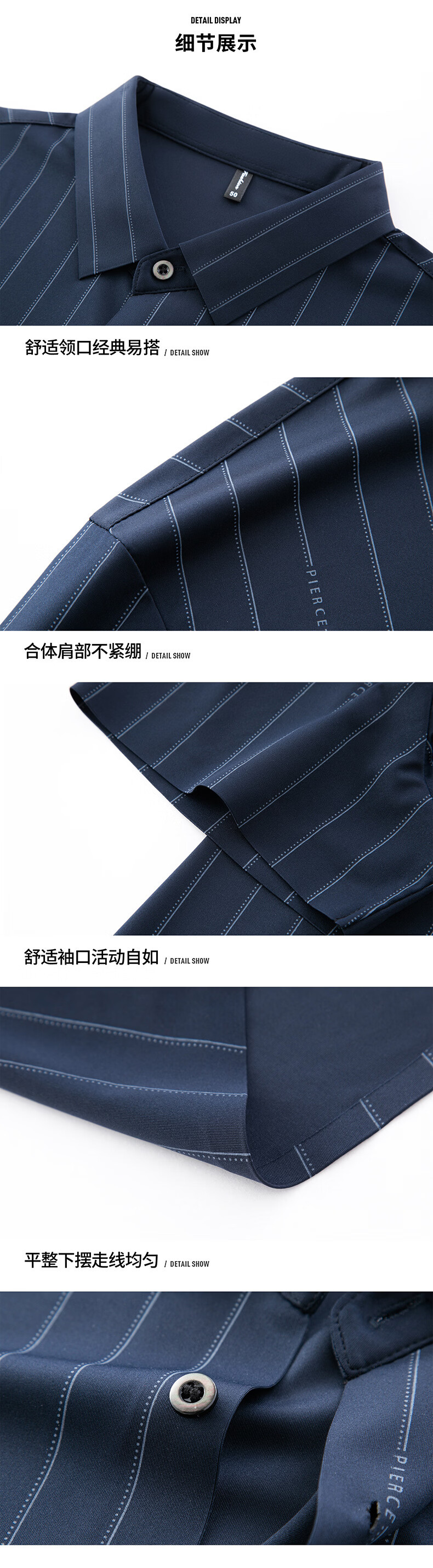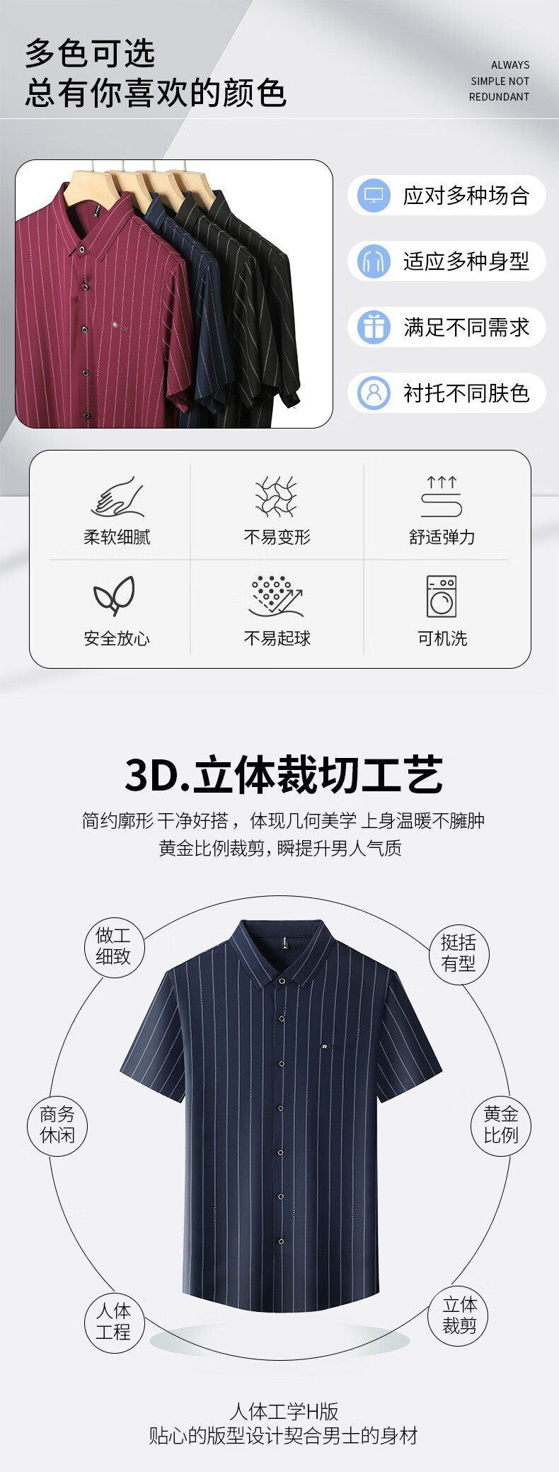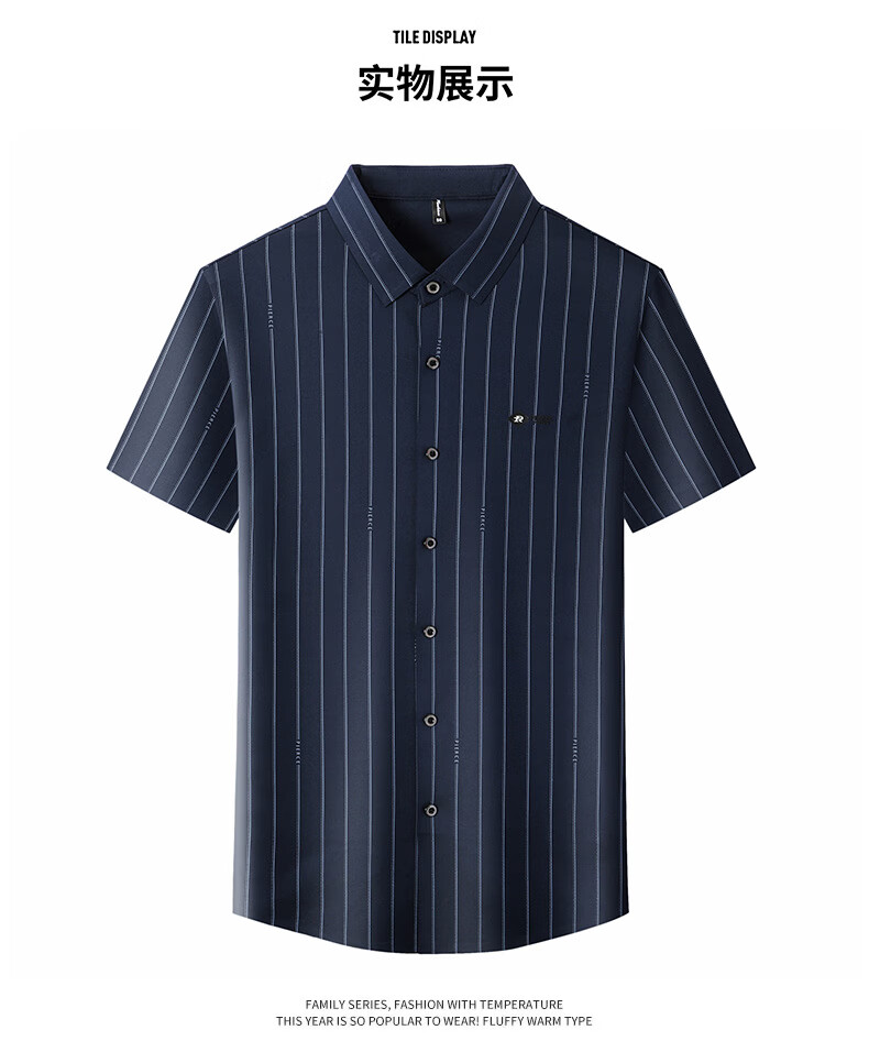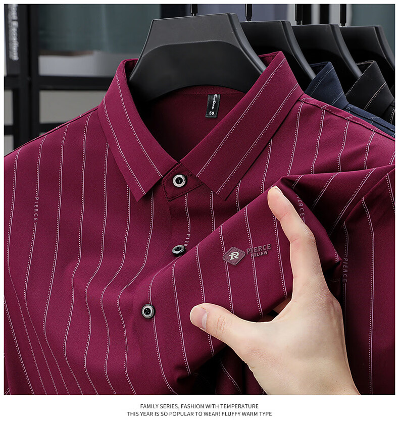 LILANZ summer men's short-sleeved shirt stretch striped non-iron business casual new style printed lapel fashion shirt trend 2721-red M 165105