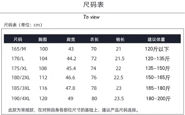 China (cm) 165 / 88-90 170 / 96-98 175 / 108-110 180 / 118-122 185 / 126-130