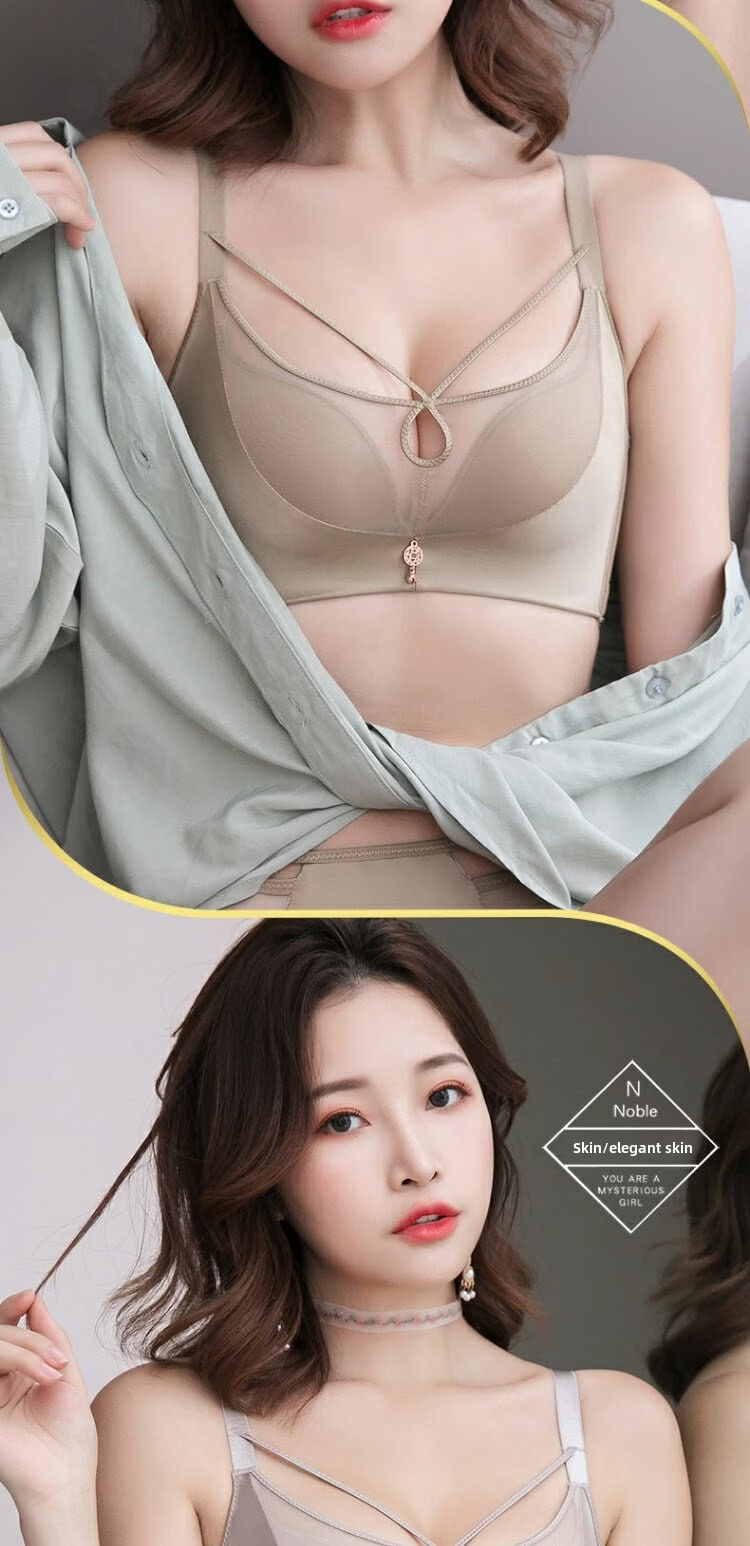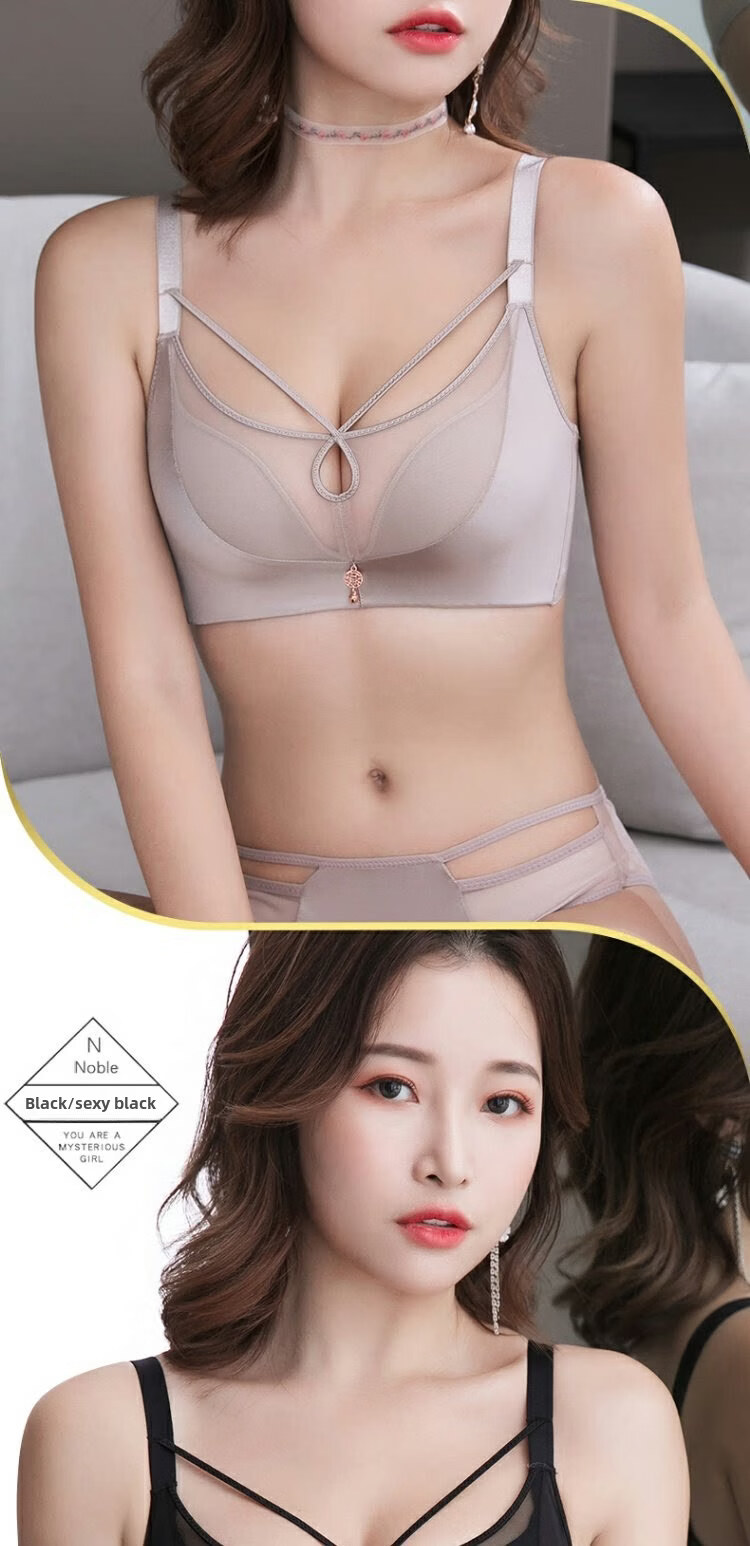 Agent Provocateurg light luxury brand underwear women's small breast lift bra anti-sagging sexy thick and thin bra set light luxury purple-set 70A 32B through cup thin top and thick bottom