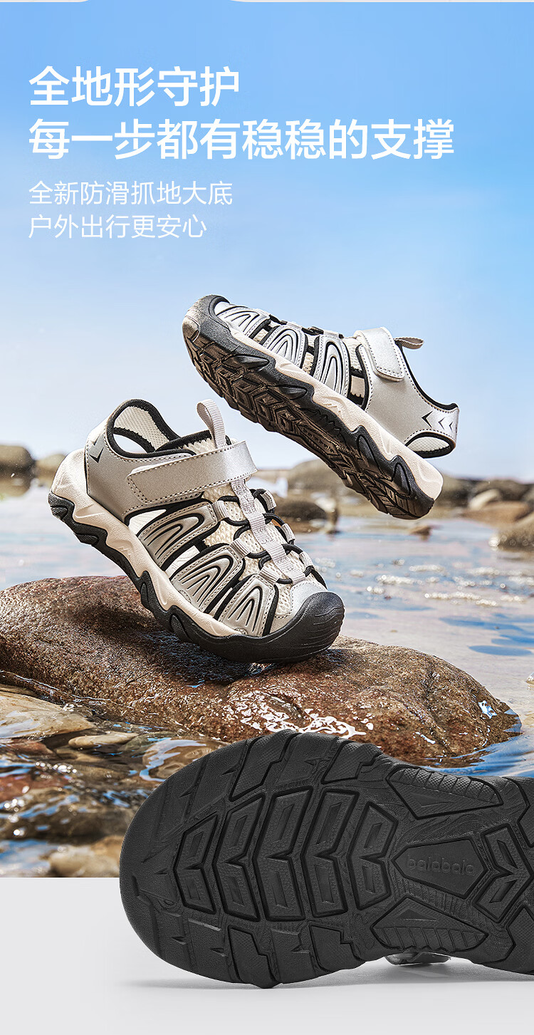BalaOne children's shoes children's sandals boys' sports shoes 2026 Xia Xin outdoor toe-toe shoes smoke gray silver 20301 27 (foot length 16.3-16.7/inner length 17.6)