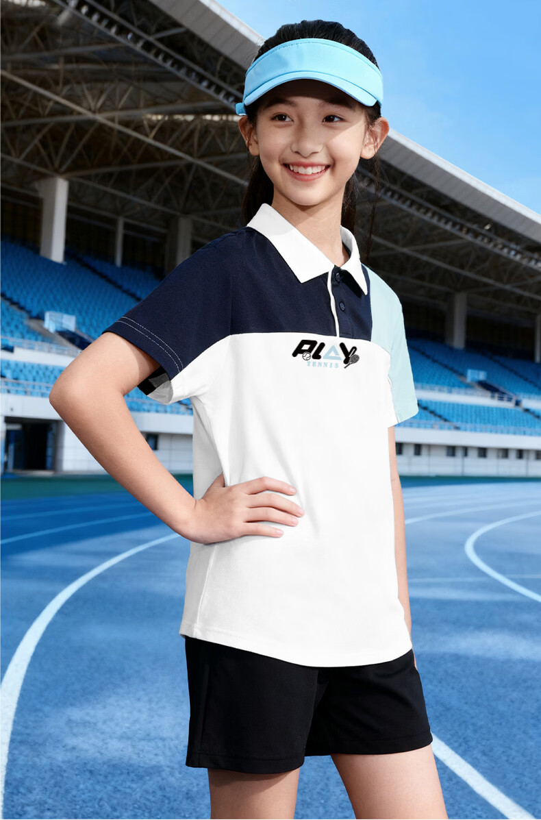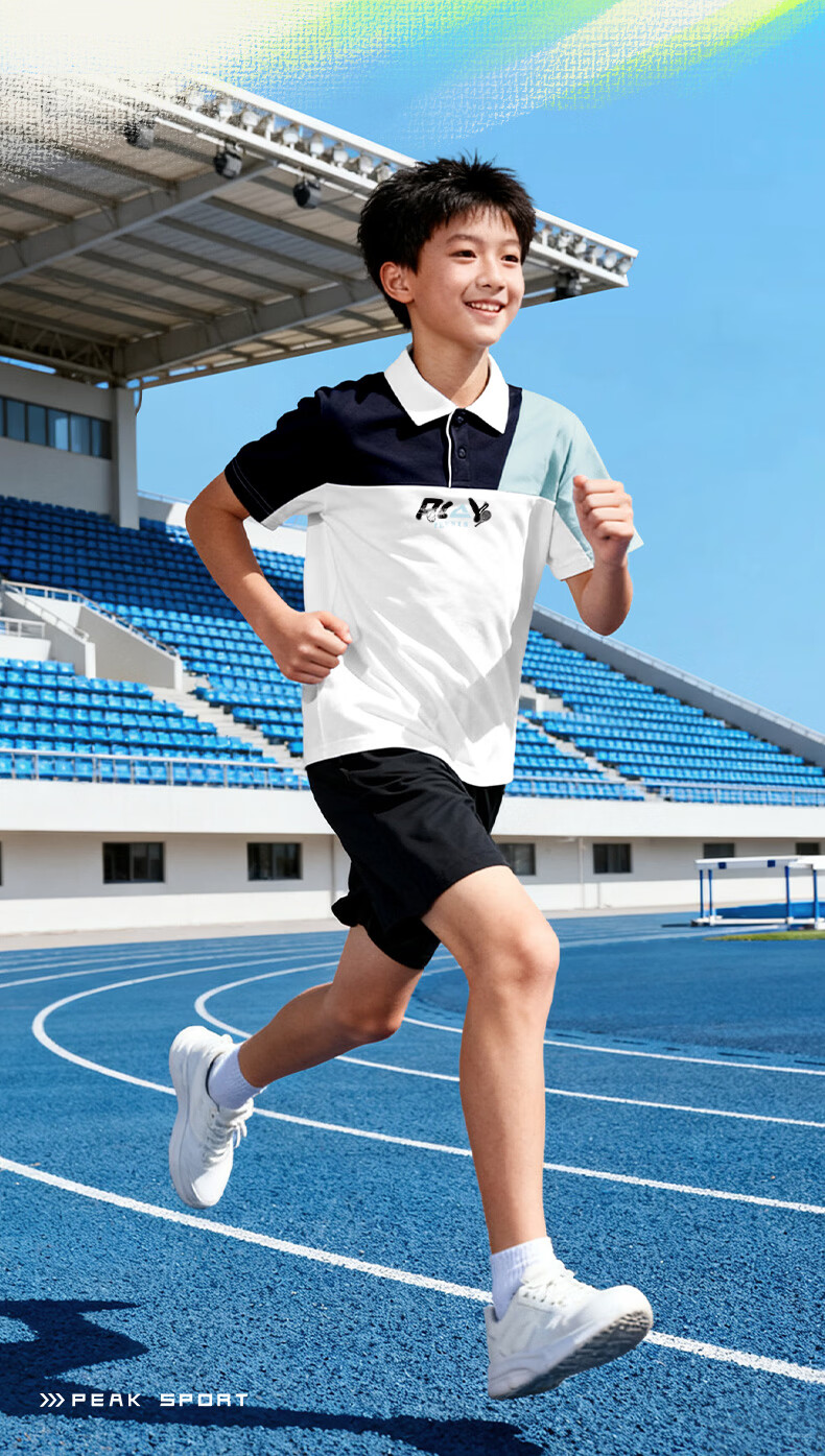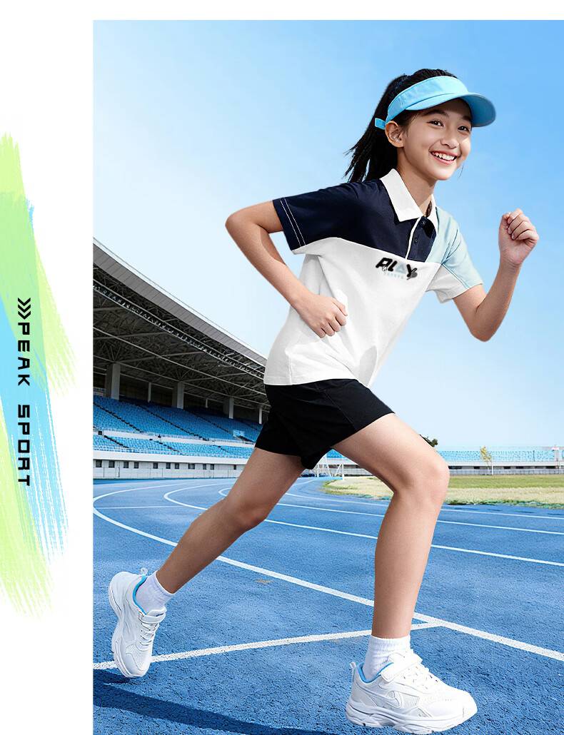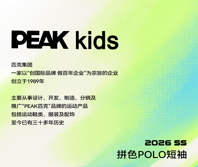 PEAK children's nylon small wrinkle color matching short-sleeved Polo shirt, fruit green 110