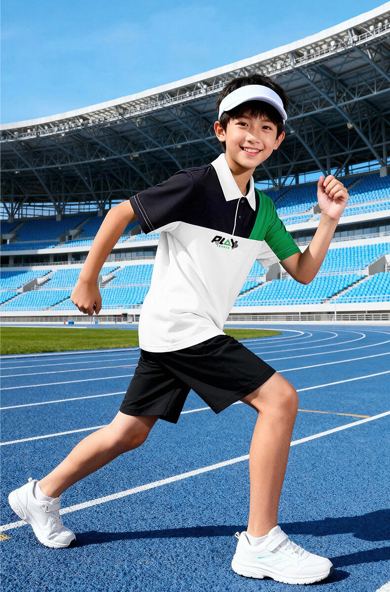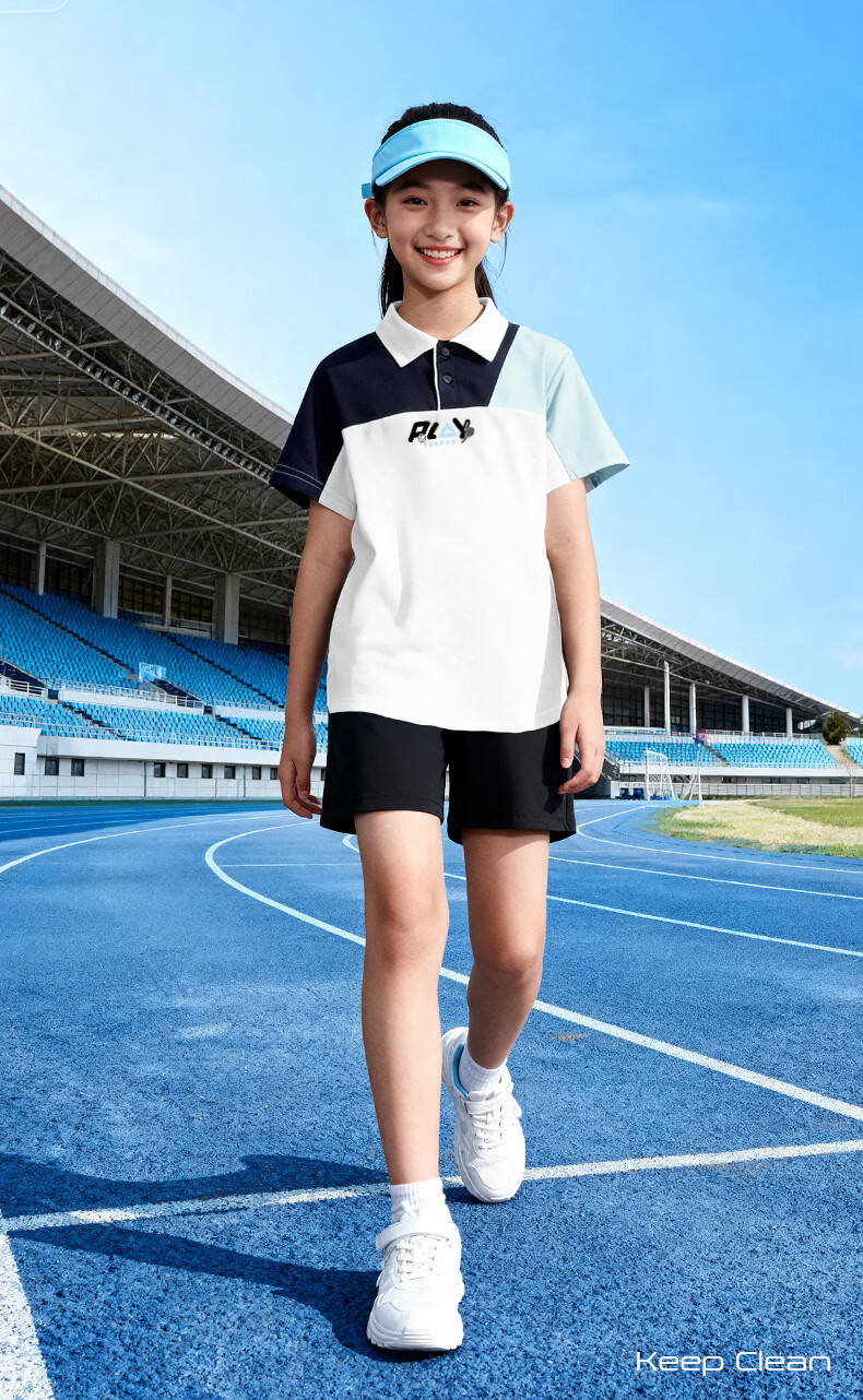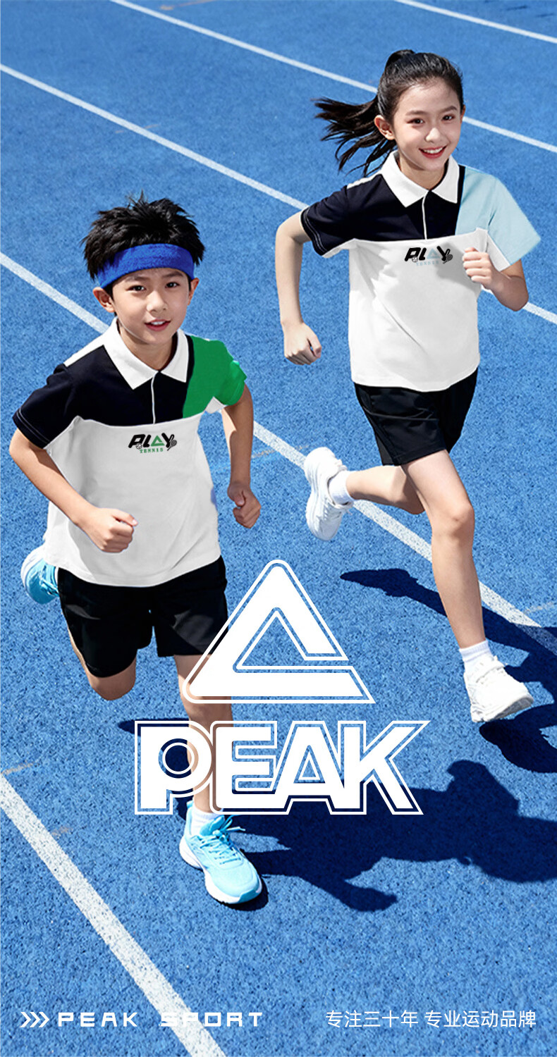 PEAK children's nylon small wrinkle color matching short-sleeved Polo shirt, fruit green 110
