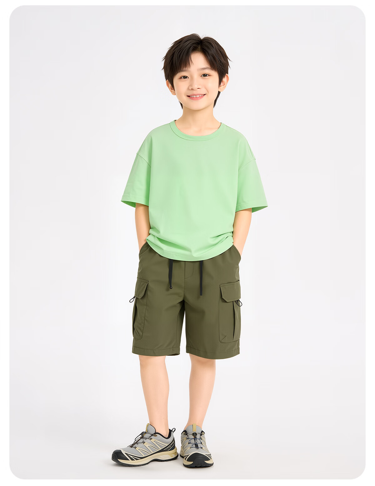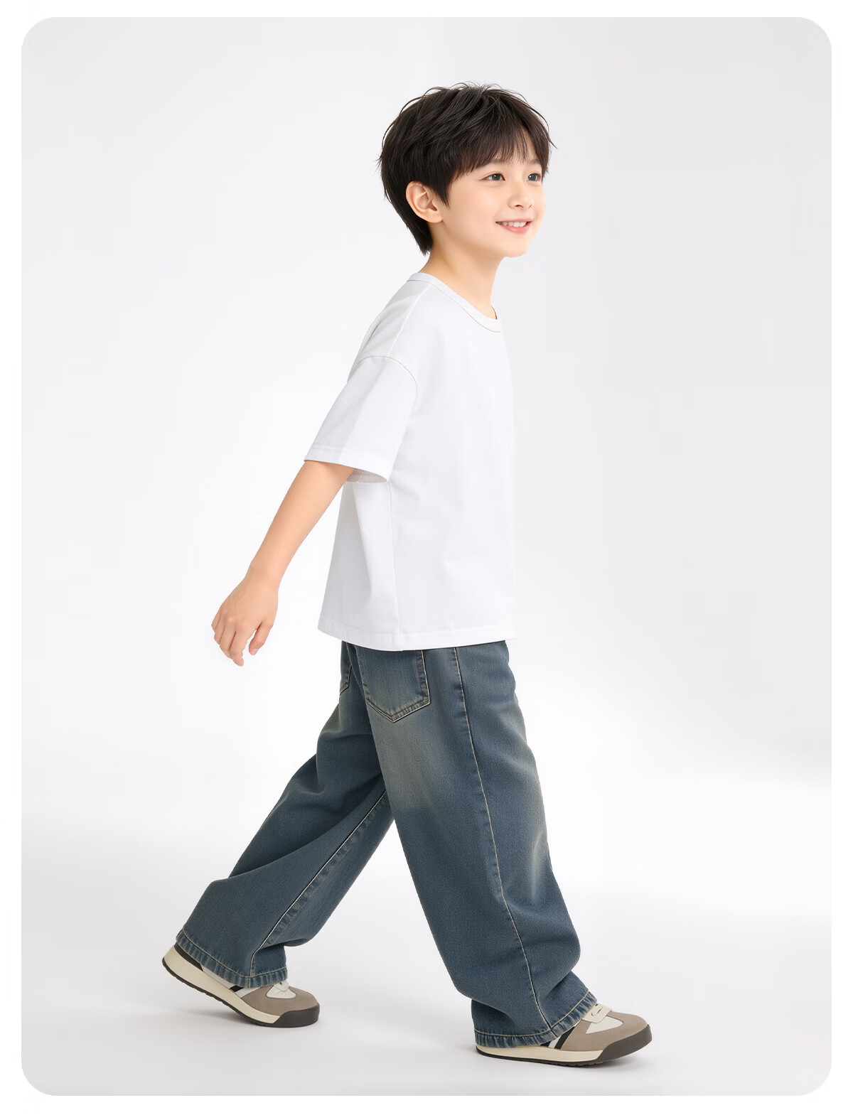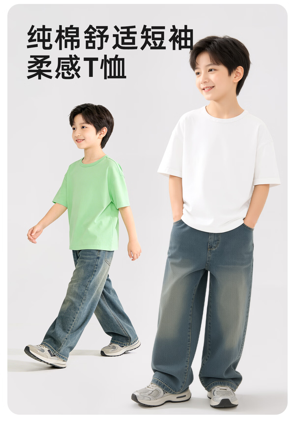 MARK FAIRWHALE 2026 children's clothing for middle-aged and older children and teenagers pure cotton short-sleeved trendy boys and girls outdoor sports and leisure skin-friendly quick-drying T M long English gray (hemmed short-sleeved) 170