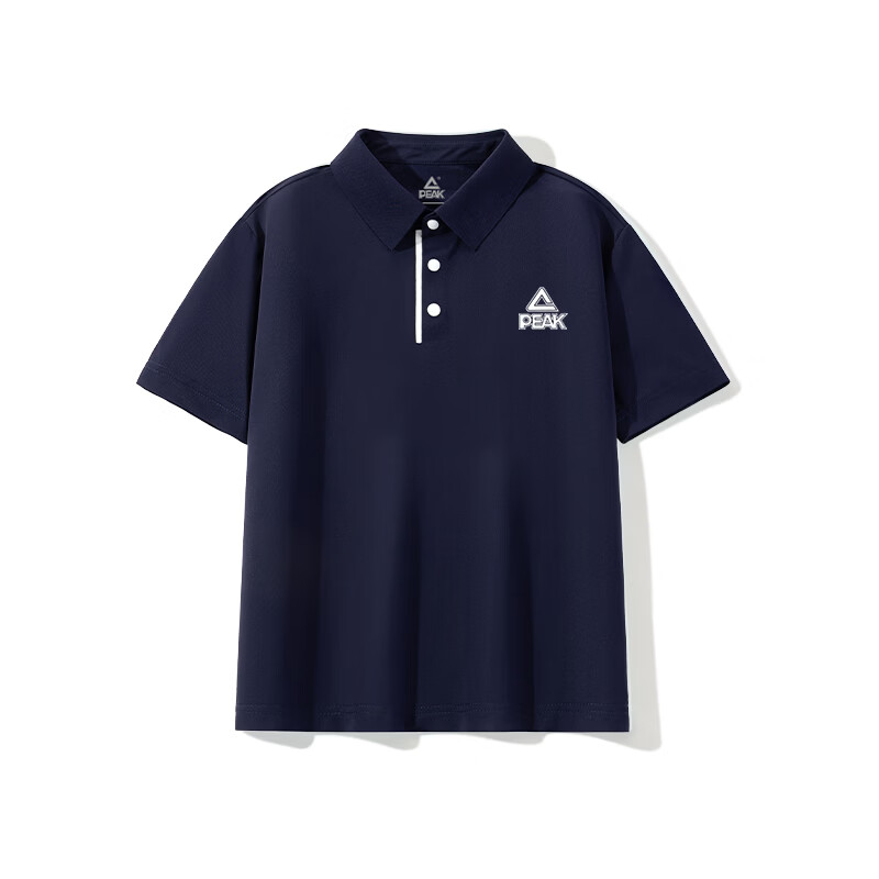 PEAK Children's Dynamic Pique Contrast Color Button Short Sleeve Polo Navy Blue 110