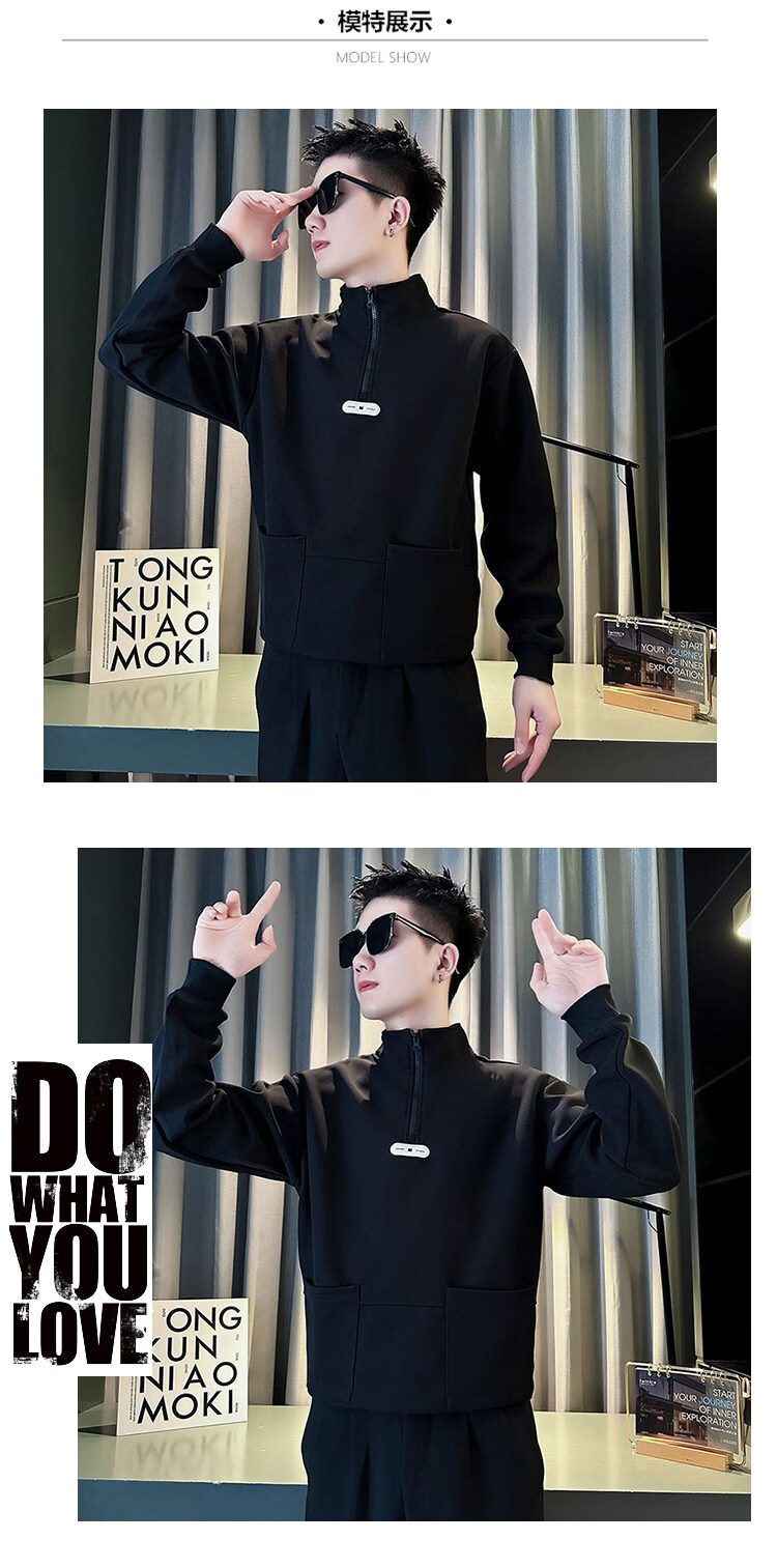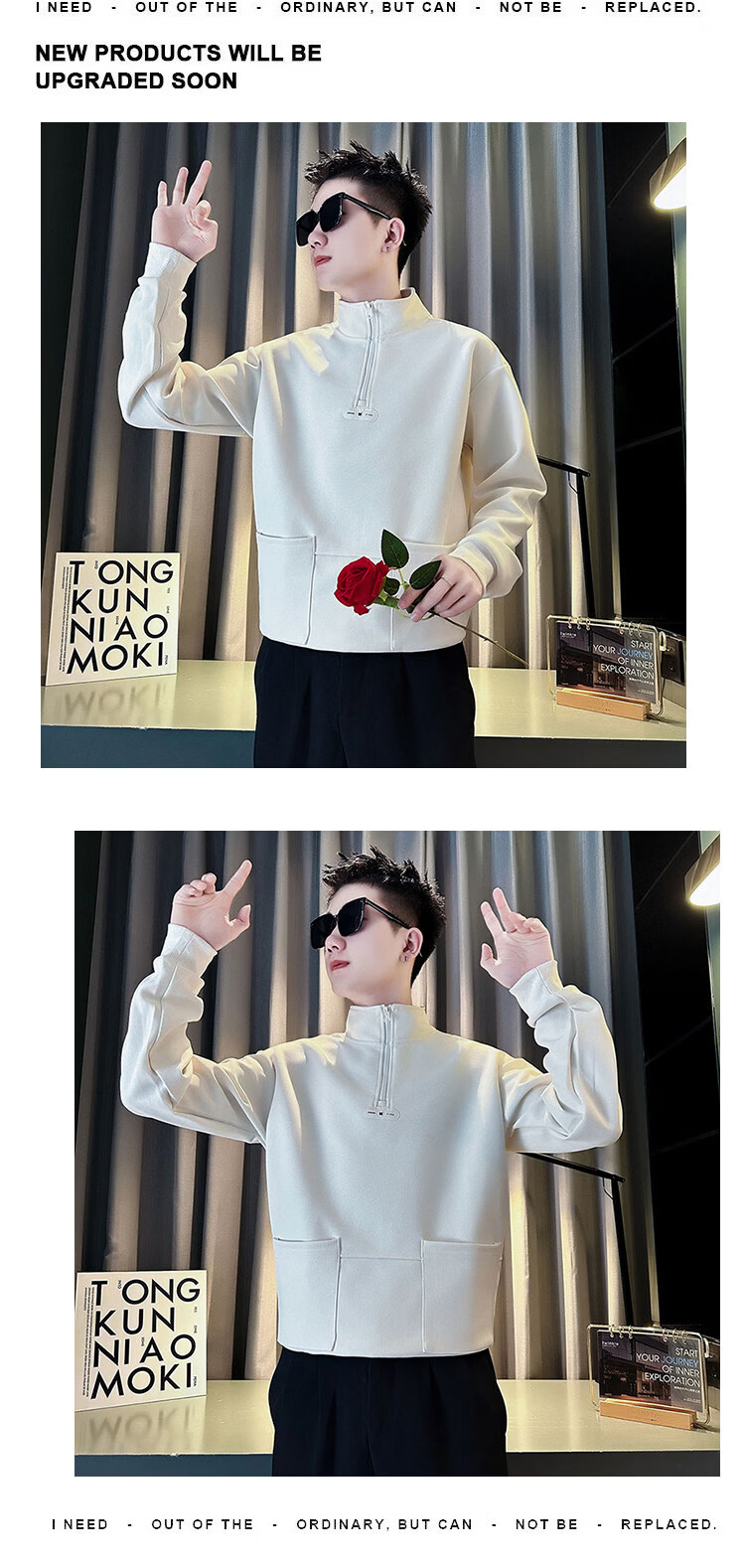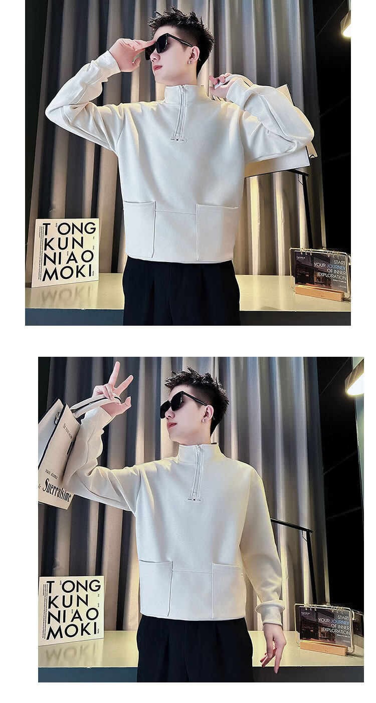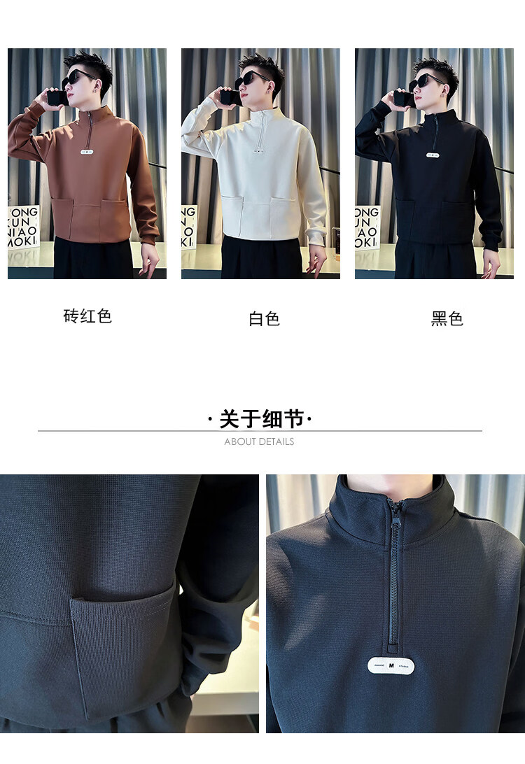 JEEP SPIRIT半高领卫衣男春秋季拉链T恤痞帅长袖体恤2026新款男装上衣潮t外套 白色 M 建议120斤以内
