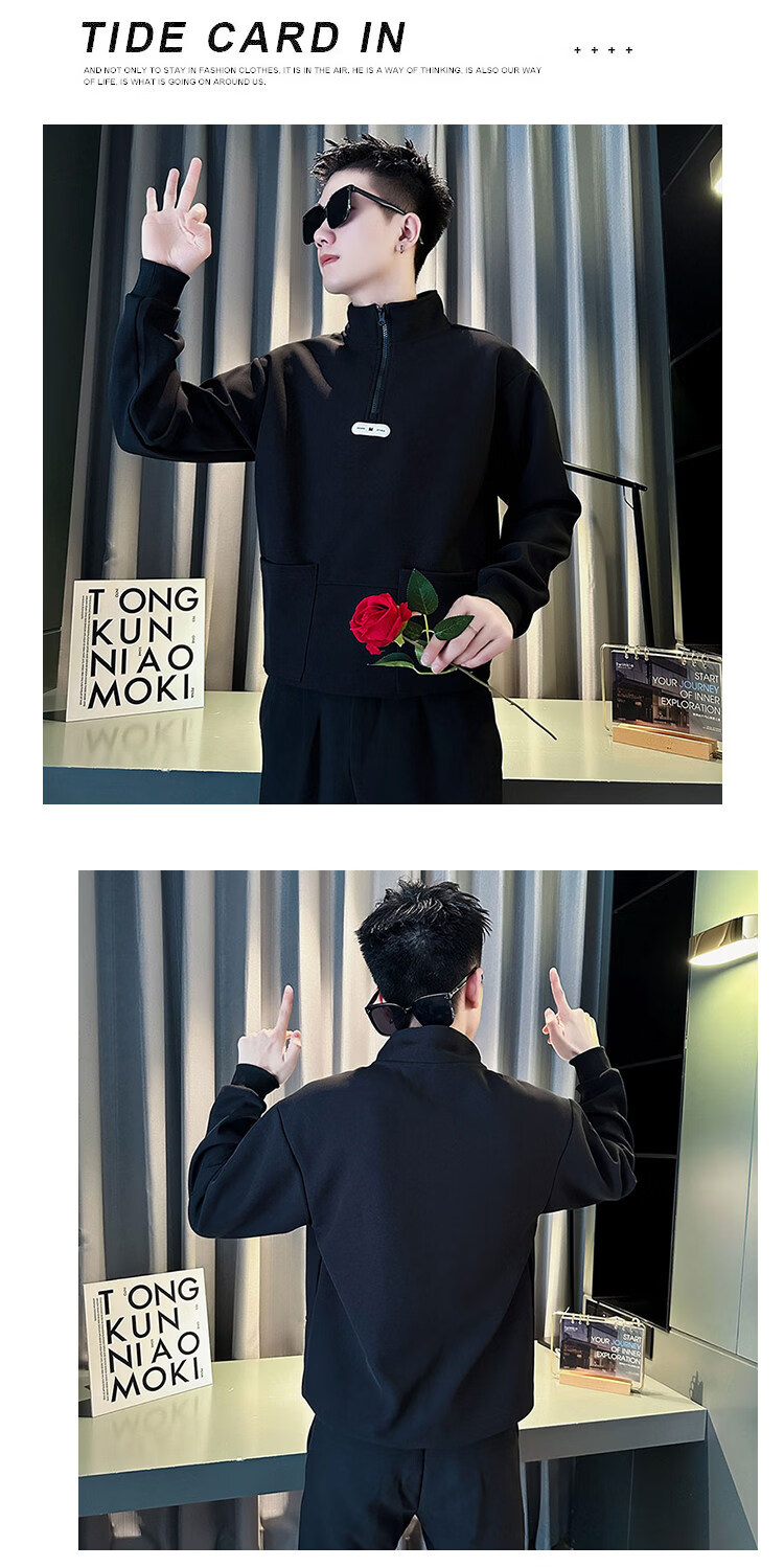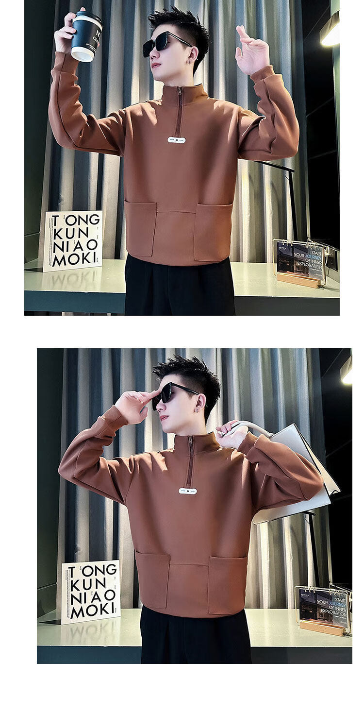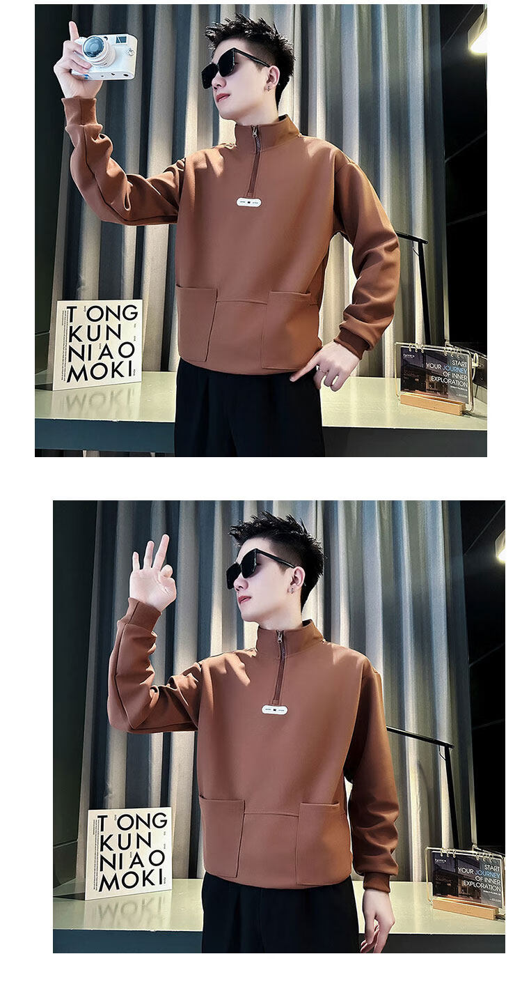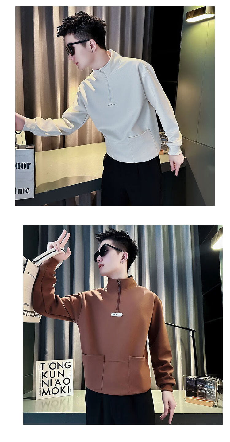 JEEP SPIRIT半高领卫衣男春秋季拉链T恤痞帅长袖体恤2026新款男装上衣潮t外套 白色 M 建议120斤以内