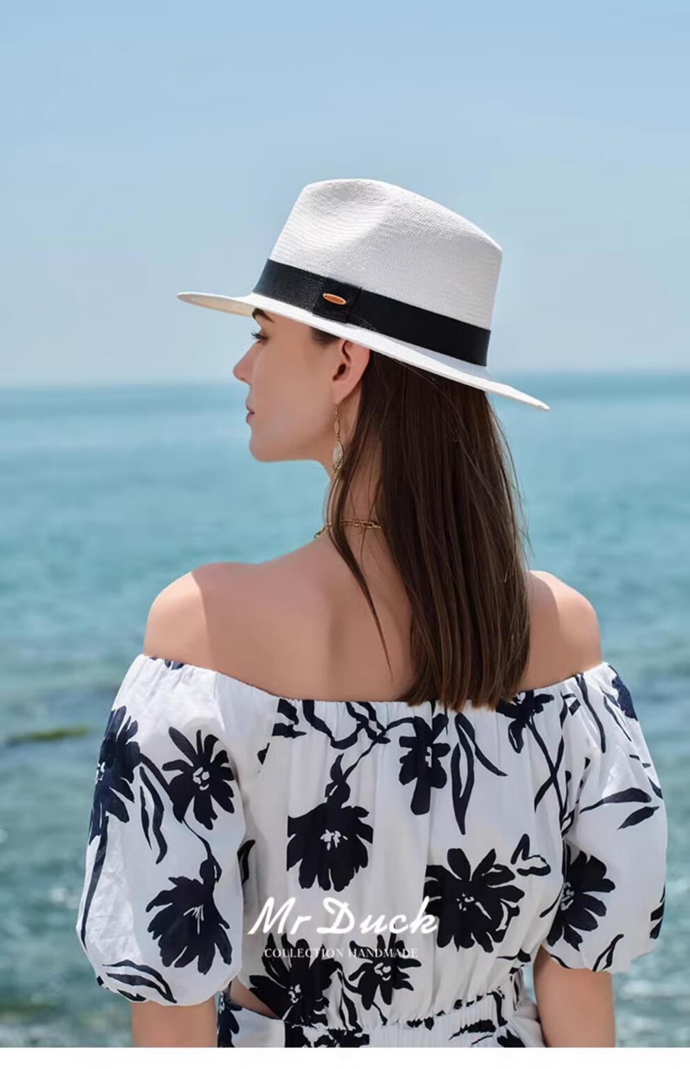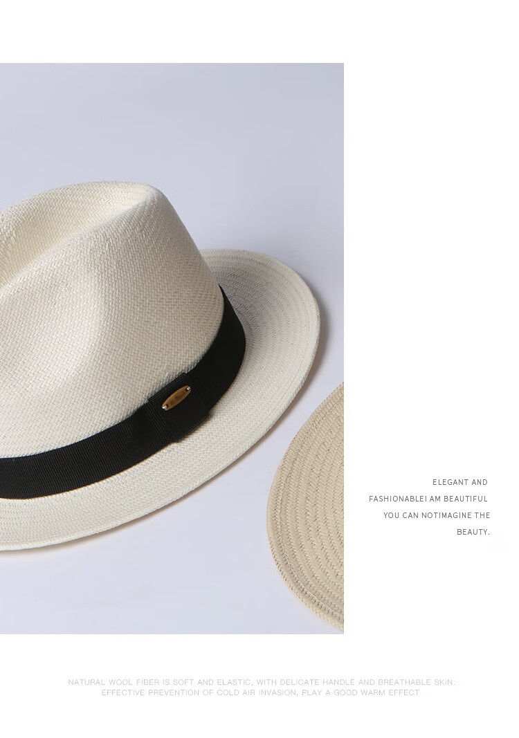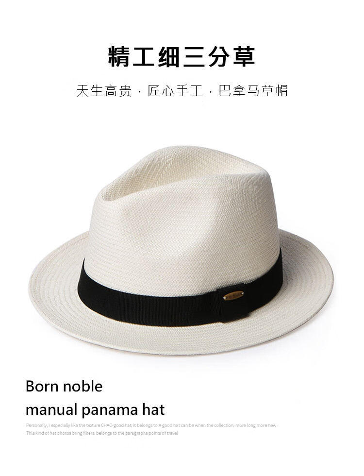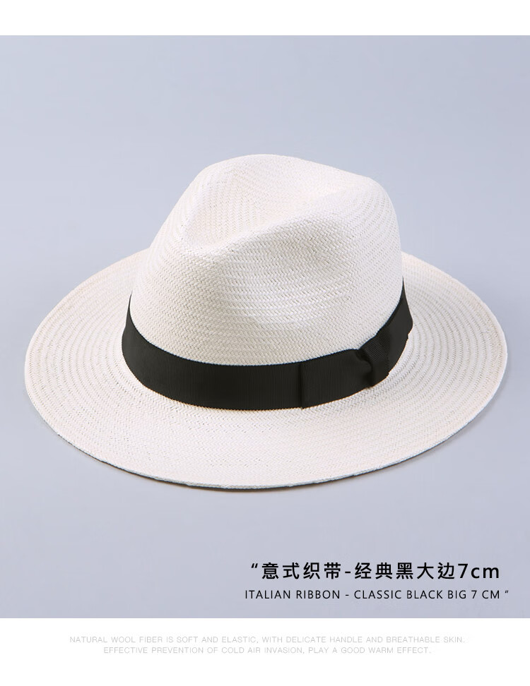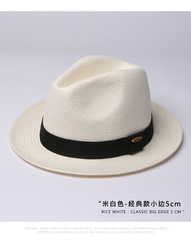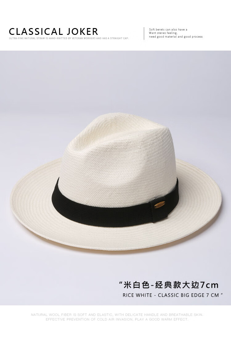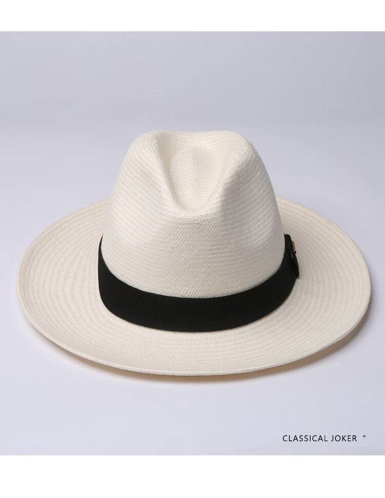 Handwoven Panama Straw Hat Men's Summer Gentleman's Sun Hat White Top Hat Women's Sun Protection Hat MS186108 - Off-White (Classic Small Side) S Size (52-55cm)