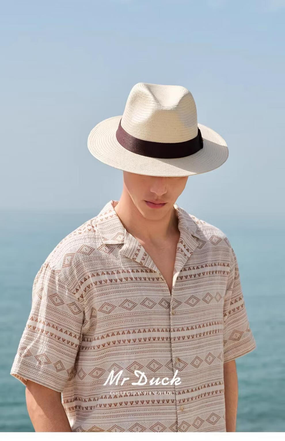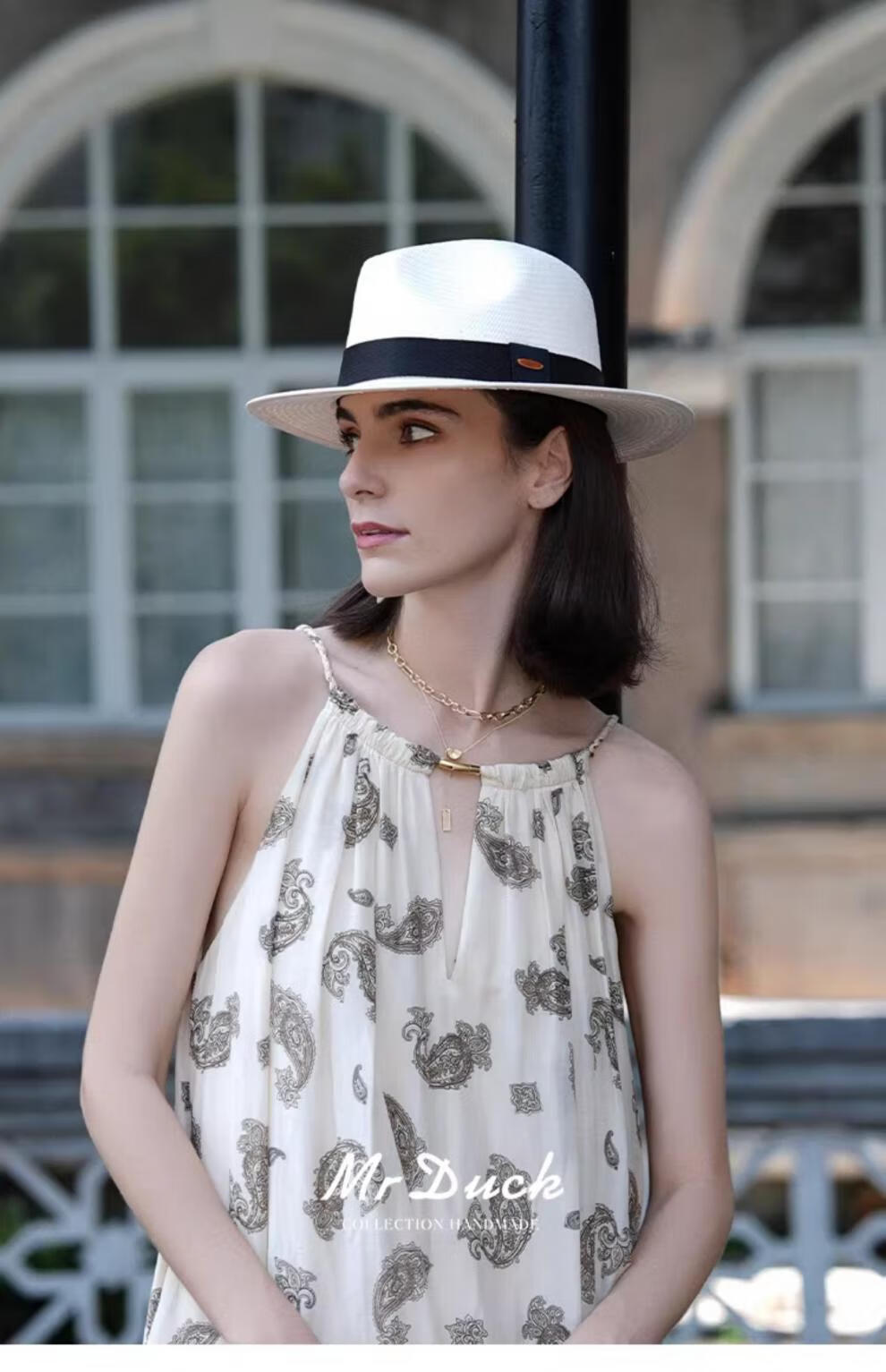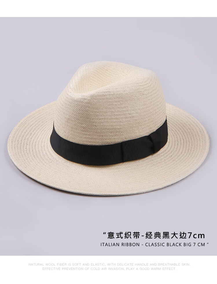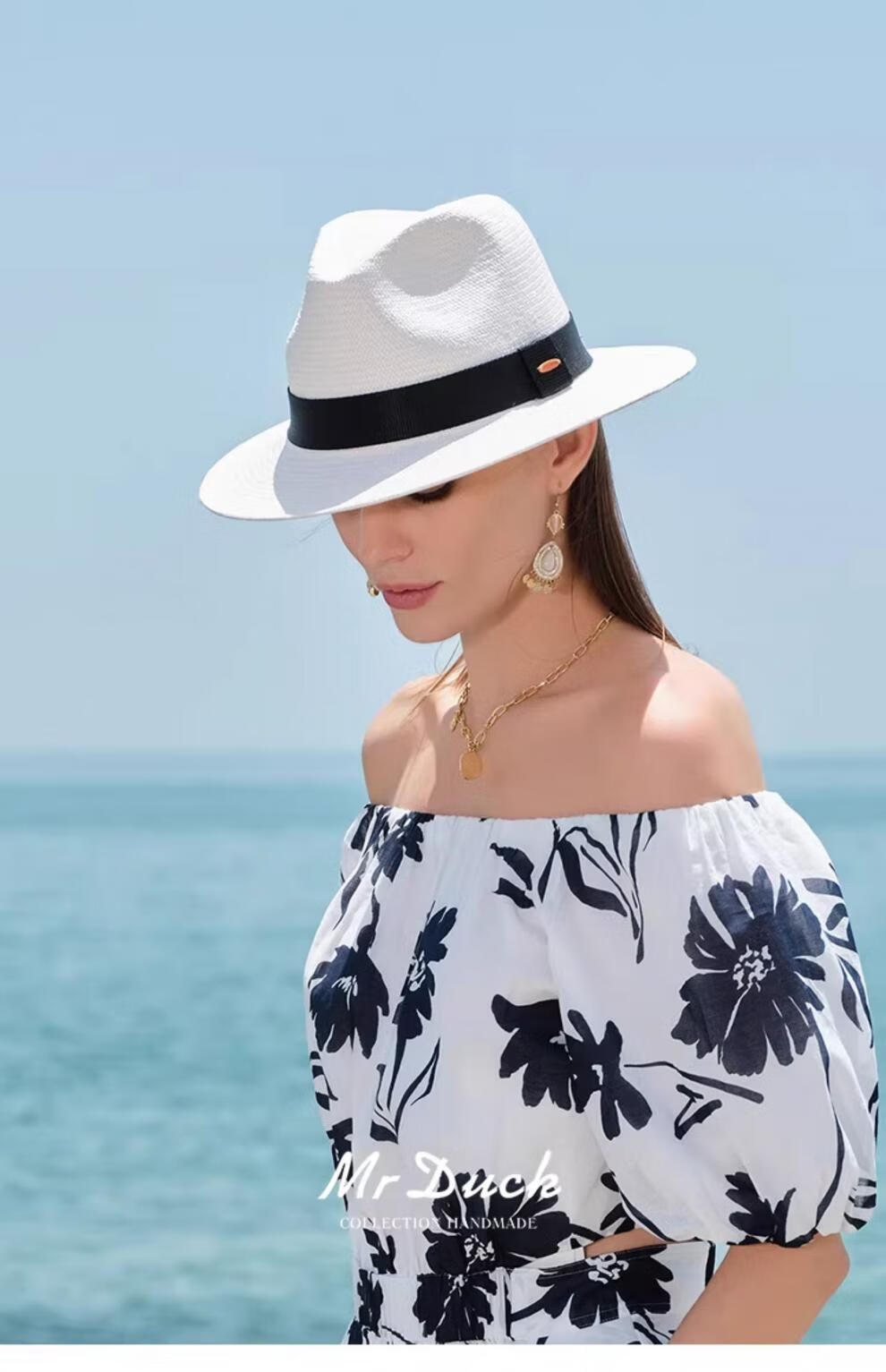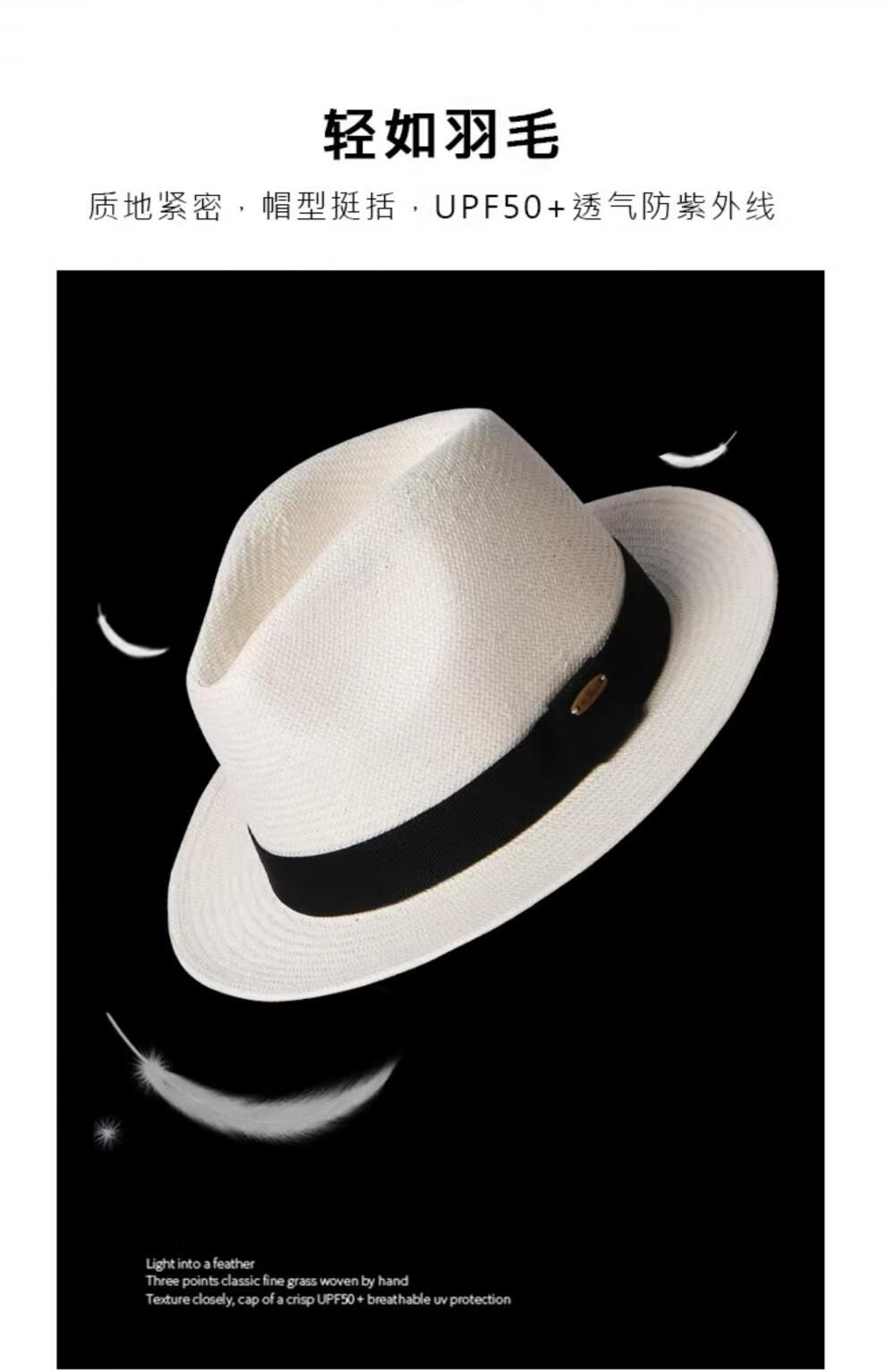 Handwoven Panama Straw Hat Men's Summer Gentleman's Sun Hat White Top Hat Women's Sun Protection Hat MS186108 - Off-White (Classic Small Side) S Size (52-55cm)