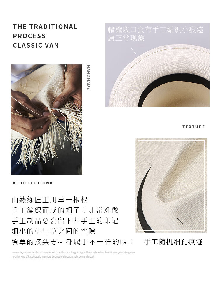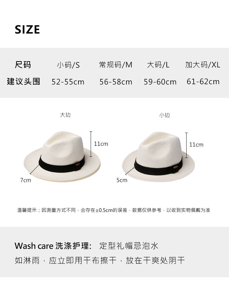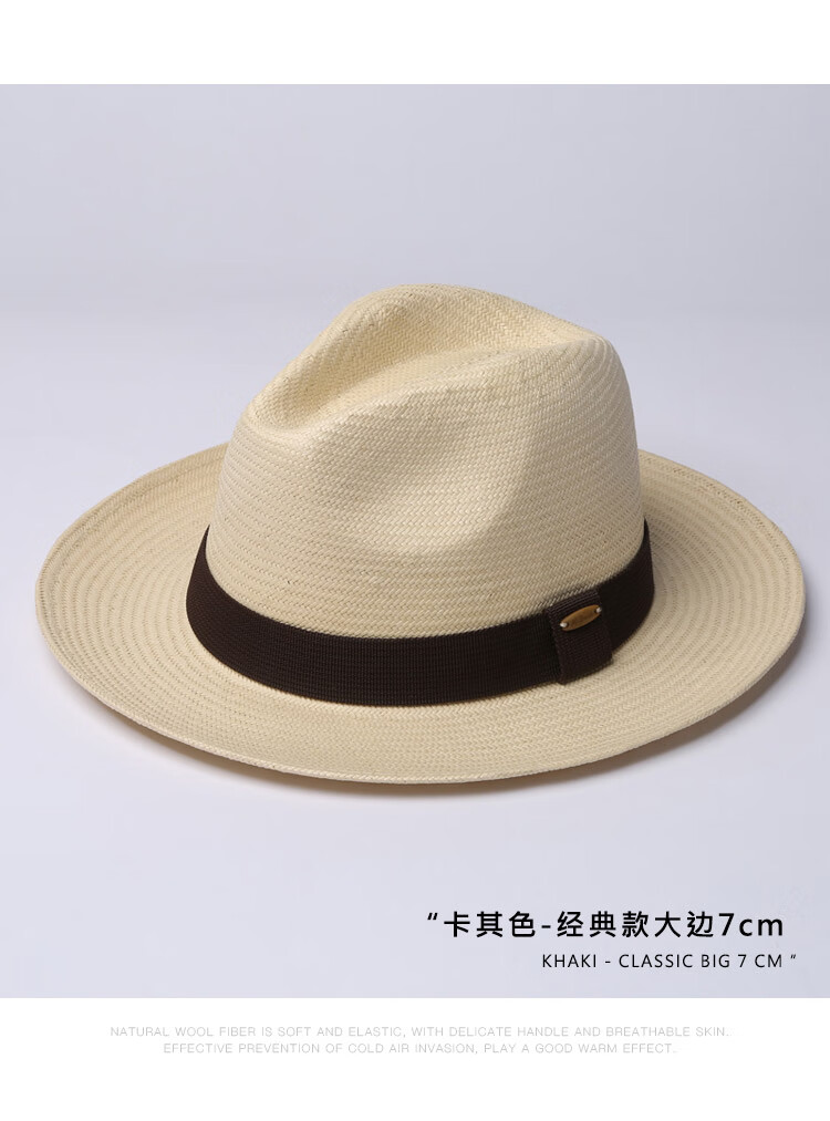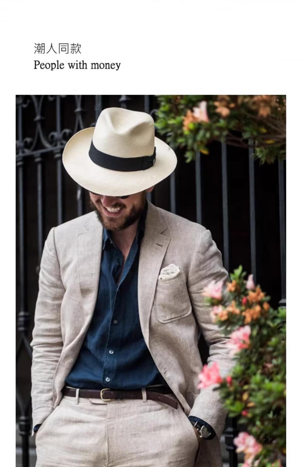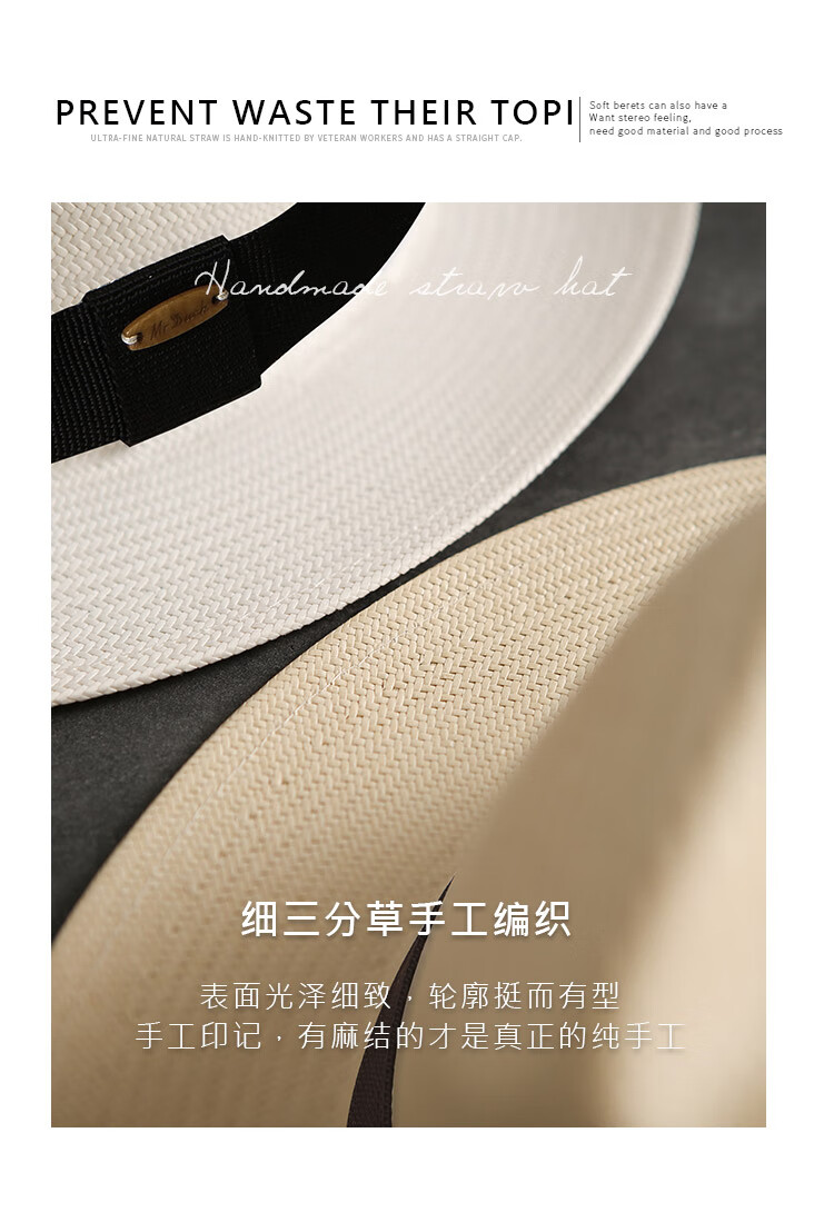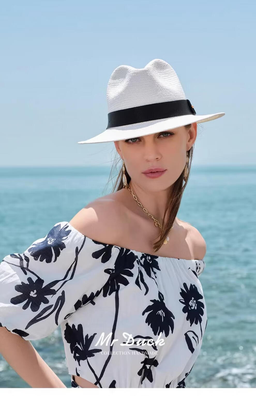 Handwoven Panama Straw Hat Men's Summer Gentleman's Sun Hat White Top Hat Women's Sun Protection Hat MS186108 - Off-White (Classic Small Side) S Size (52-55cm)