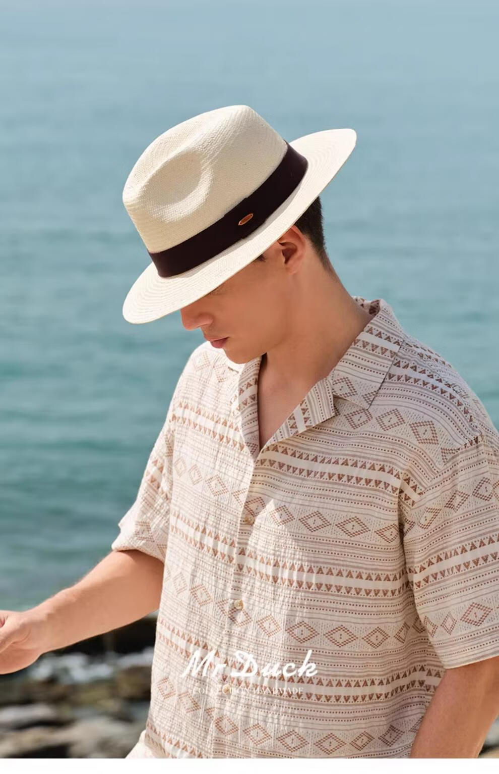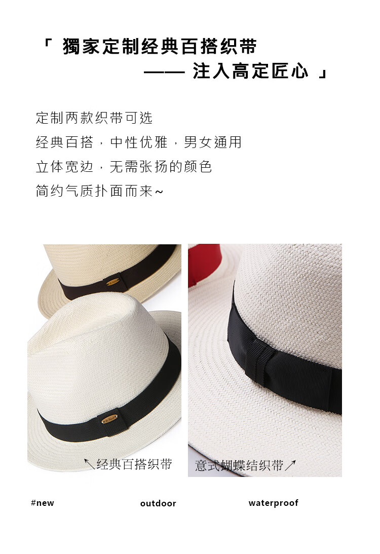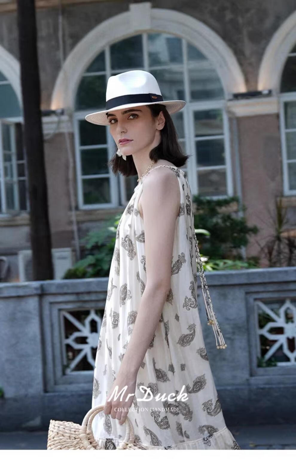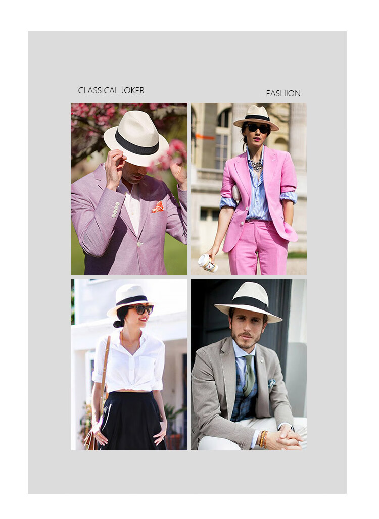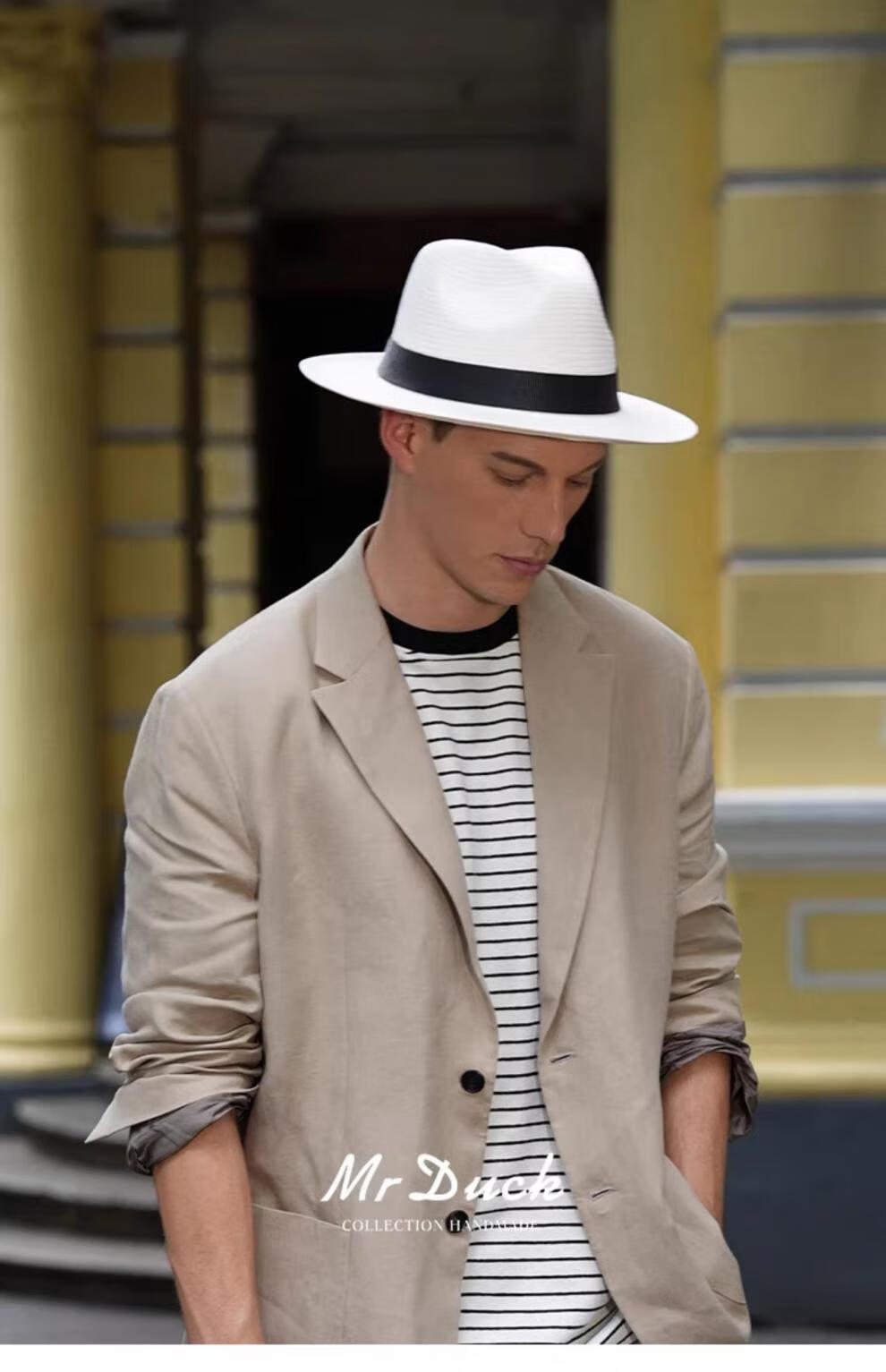 Handwoven Panama Straw Hat Men's Summer Gentleman's Sun Hat White Top Hat Women's Sun Protection Hat MS186108 - Off-White (Classic Small Side) S Size (52-55cm)