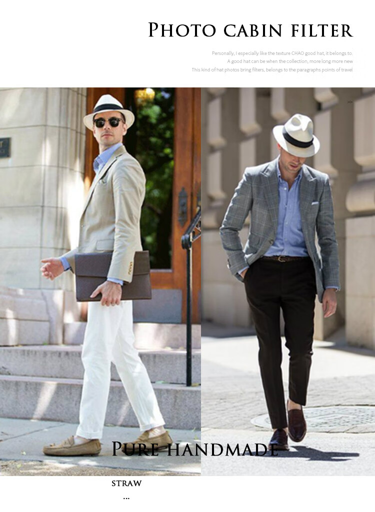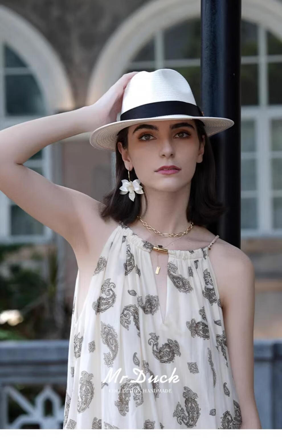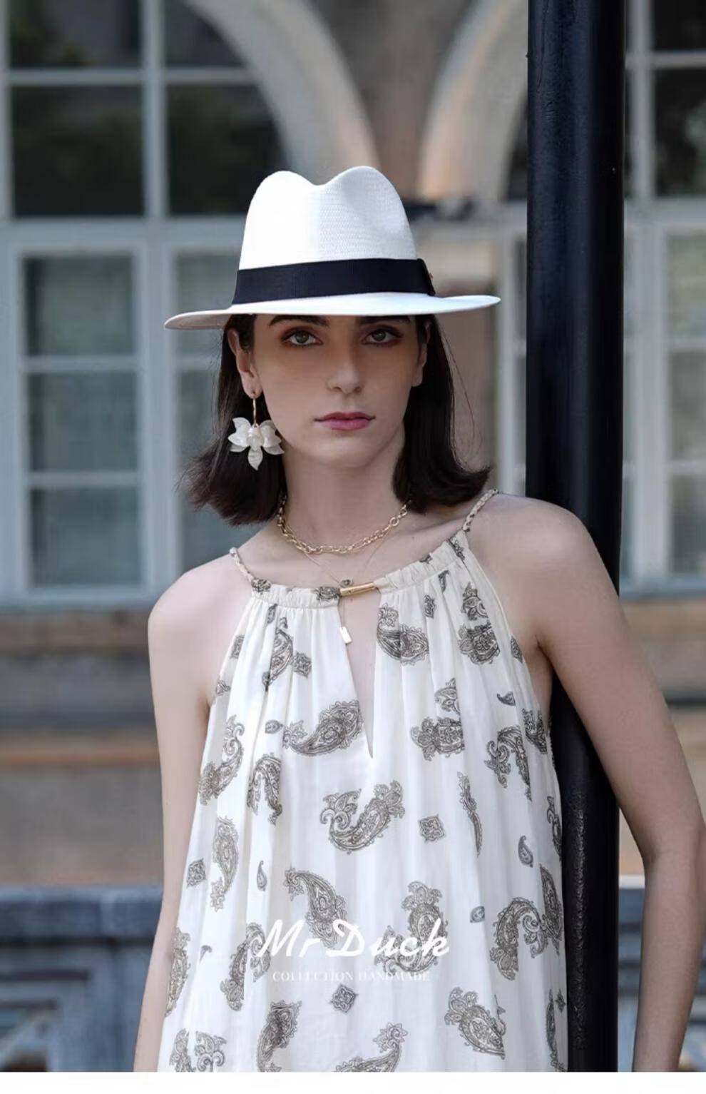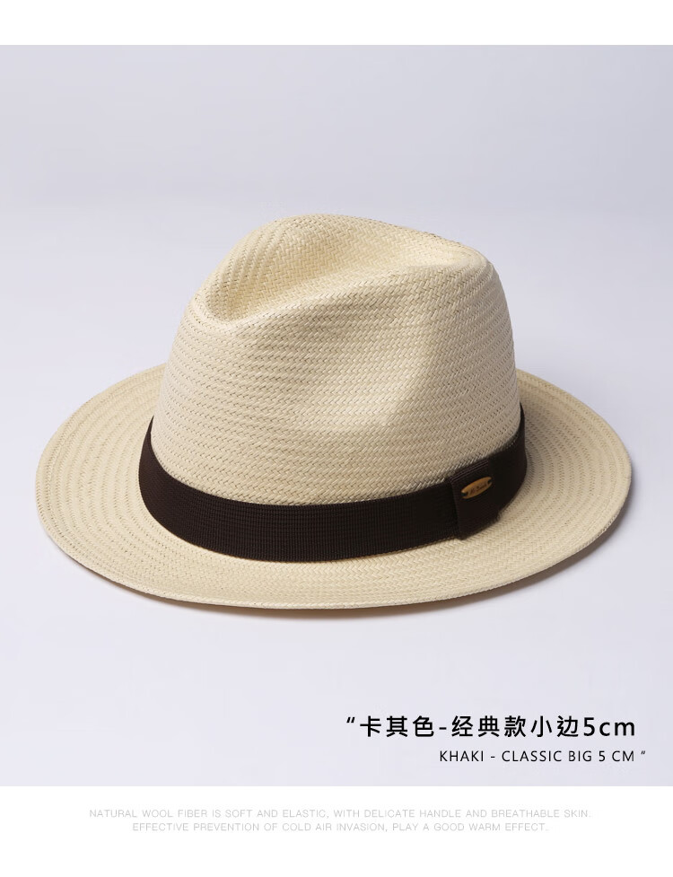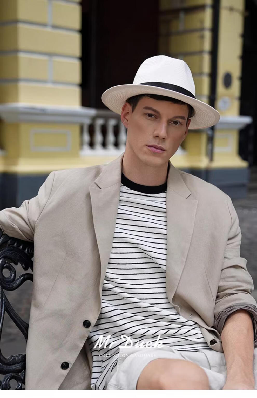 Handwoven Panama Straw Hat Men's Summer Gentleman's Sun Hat White Top Hat Women's Sun Protection Hat MS186108 - Off-White (Classic Small Side) S Size (52-55cm)