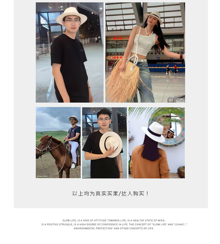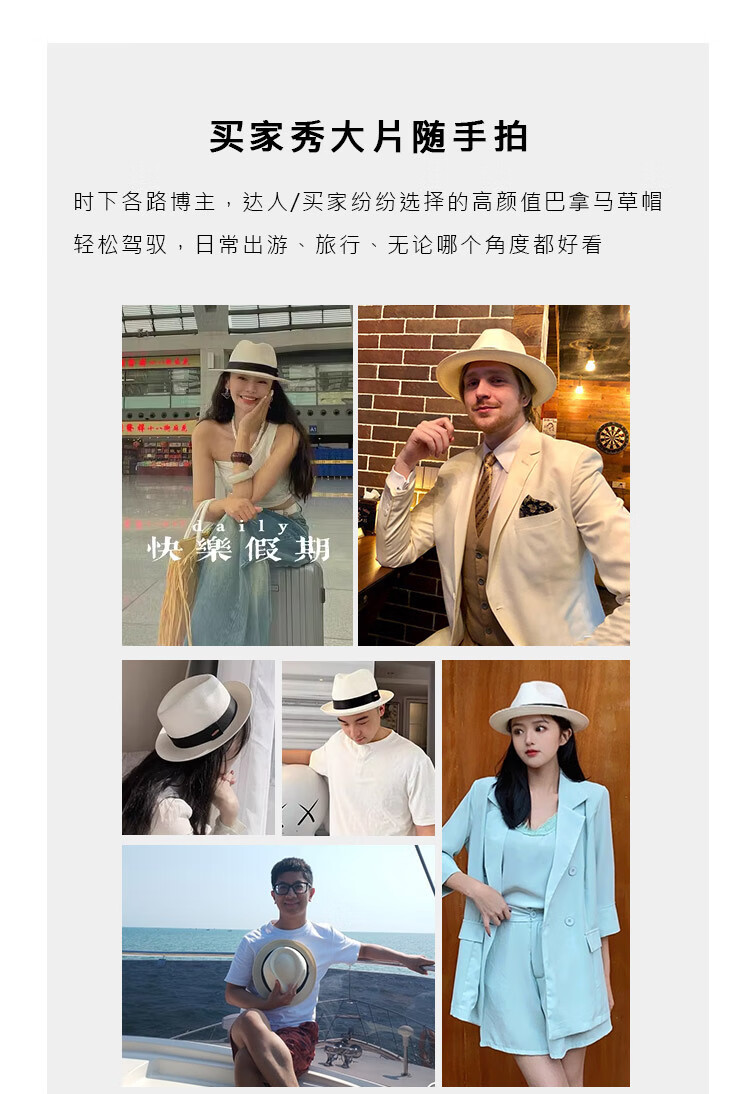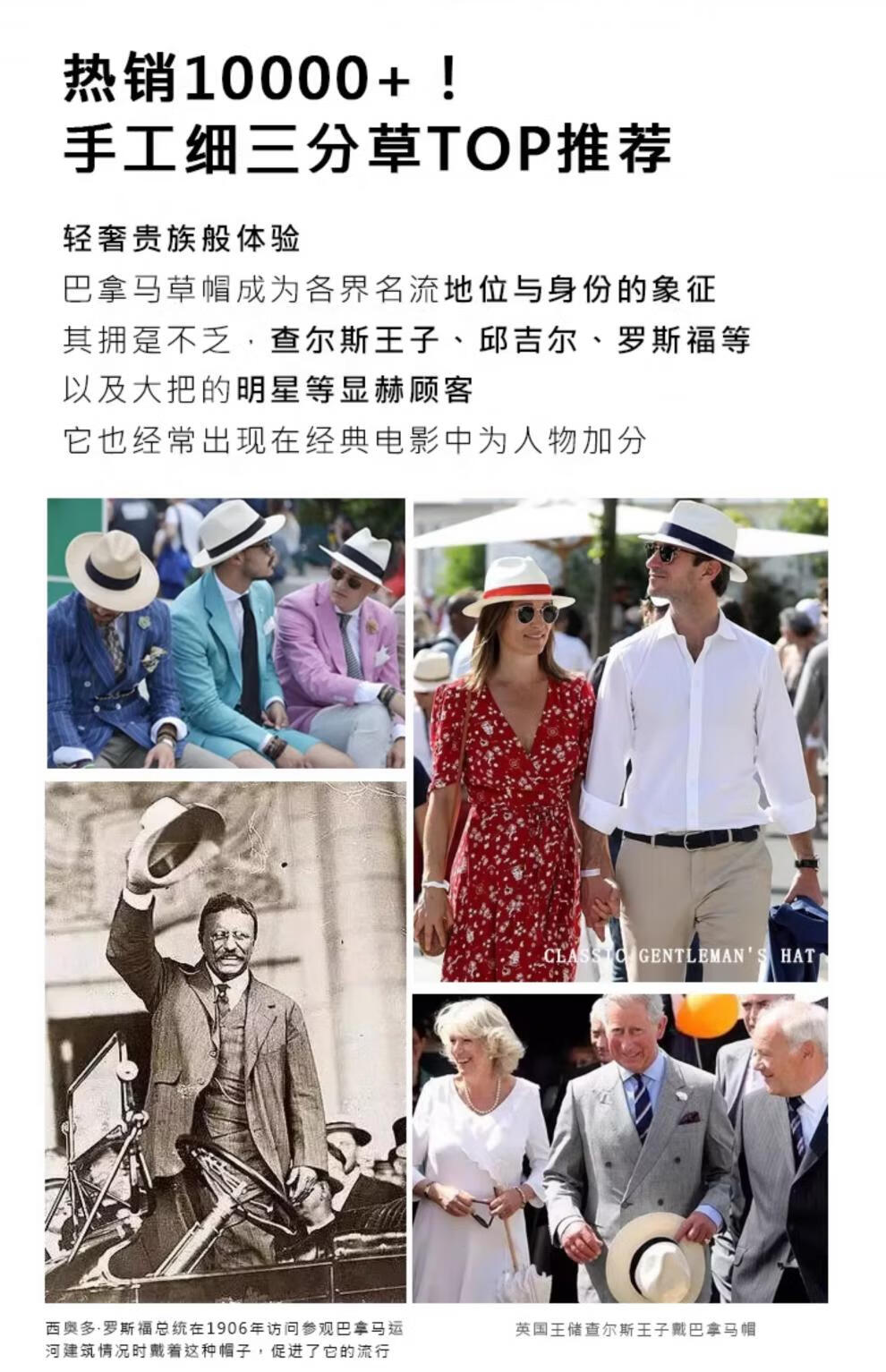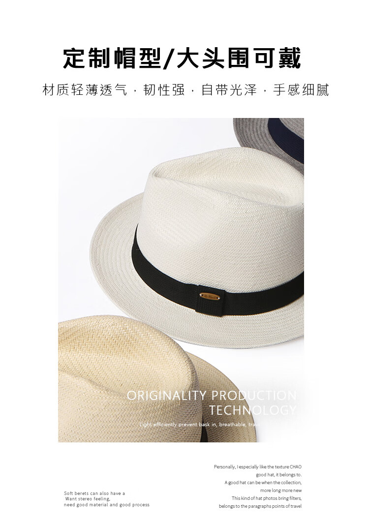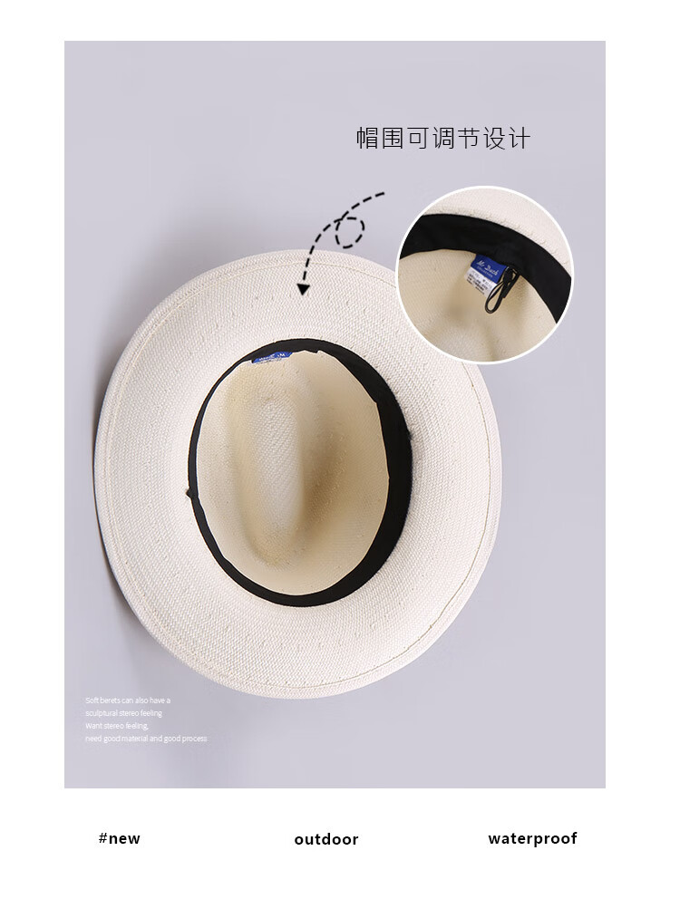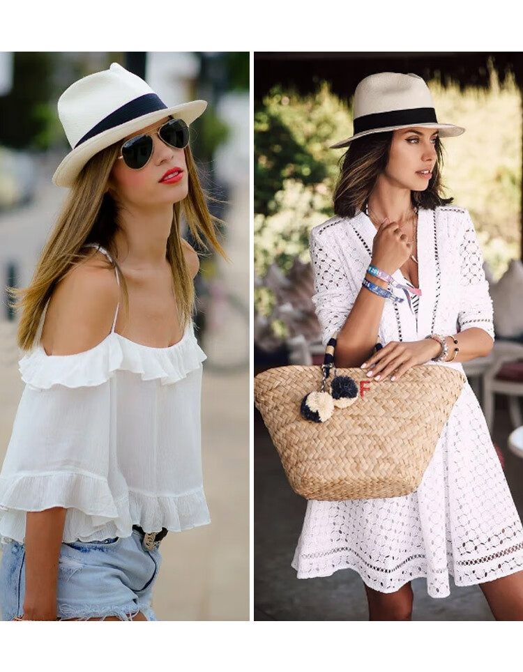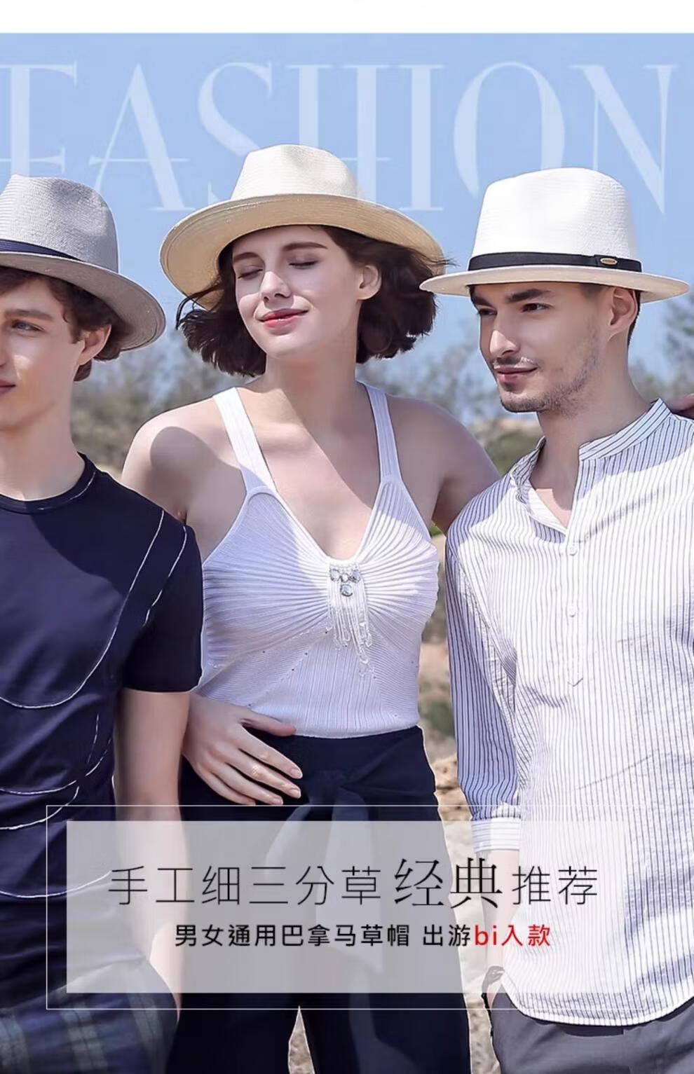 Handwoven Panama Straw Hat Men's Summer Gentleman's Sun Hat White Top Hat Women's Sun Protection Hat MS186108 - Off-White (Classic Small Side) S Size (52-55cm)