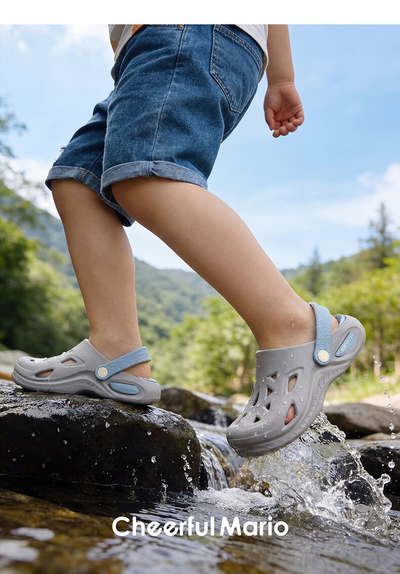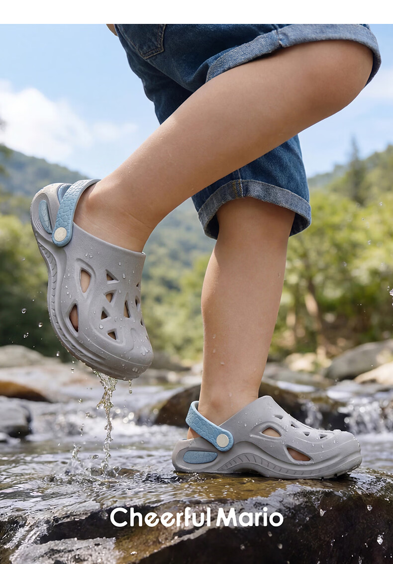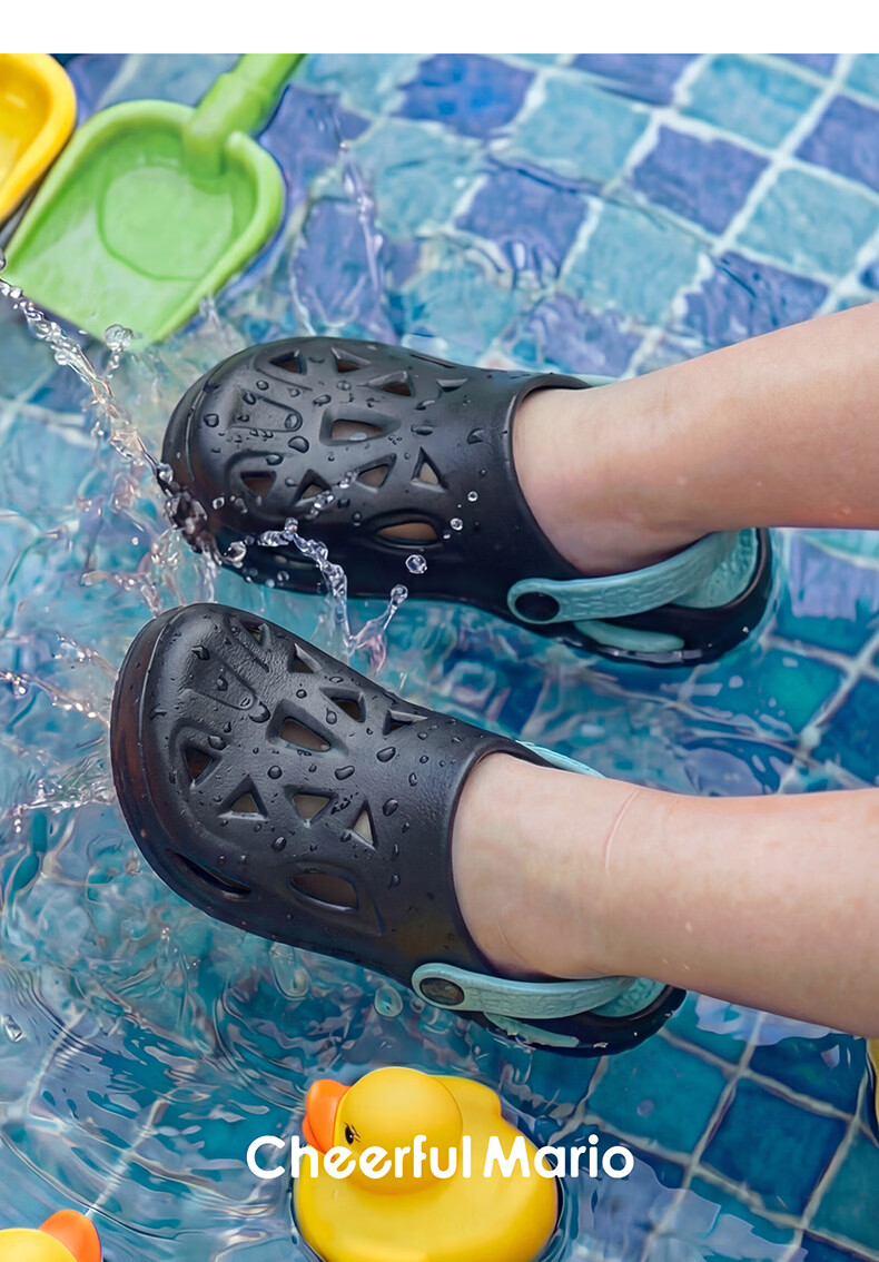 Happy Mary 2026 New Children's Baotou Croc Shoes Beach Shoes Summer Home Boys and Older Children Bath Soft Soled Breathable Sandals Mo Ye Qinglan 30 Inner Length 20cm Suitable for Feet Size 30