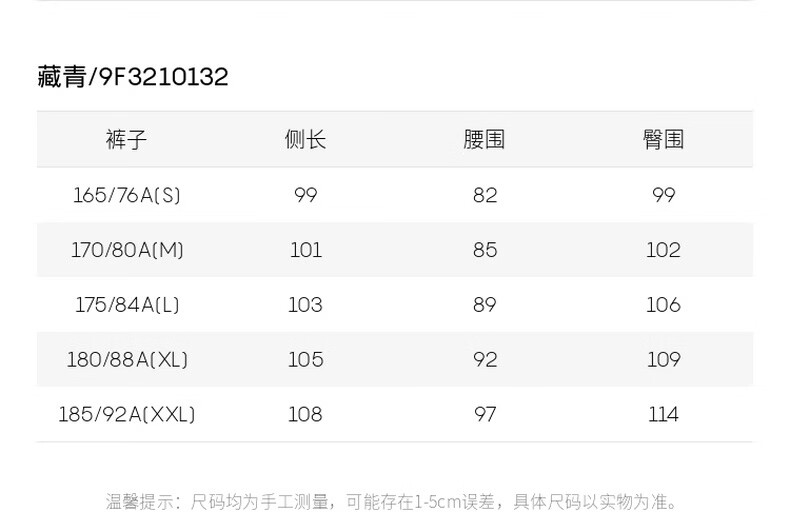 Outseam (cm) 99 cm 101.5 cm 104 cm 106.5 cm 109 cm