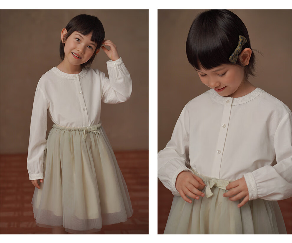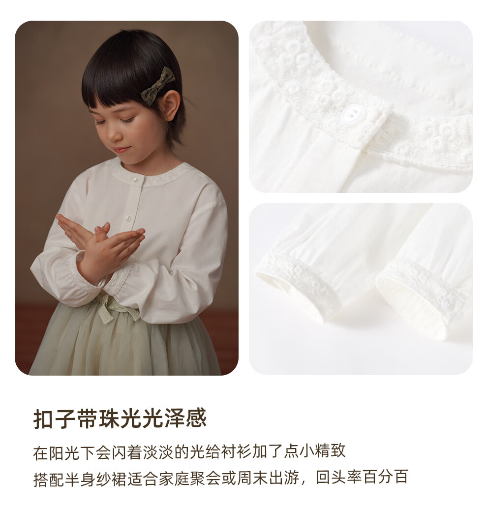 Haqi children's clothing children's spring clothing 2026 new tops simple high-grade cotton and linen Lyocell shirt girls white shirt girls white 110