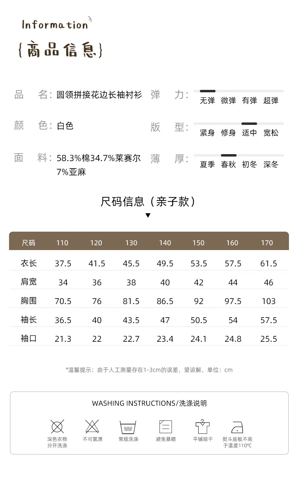 Size (cm) 42 44 46 48 50