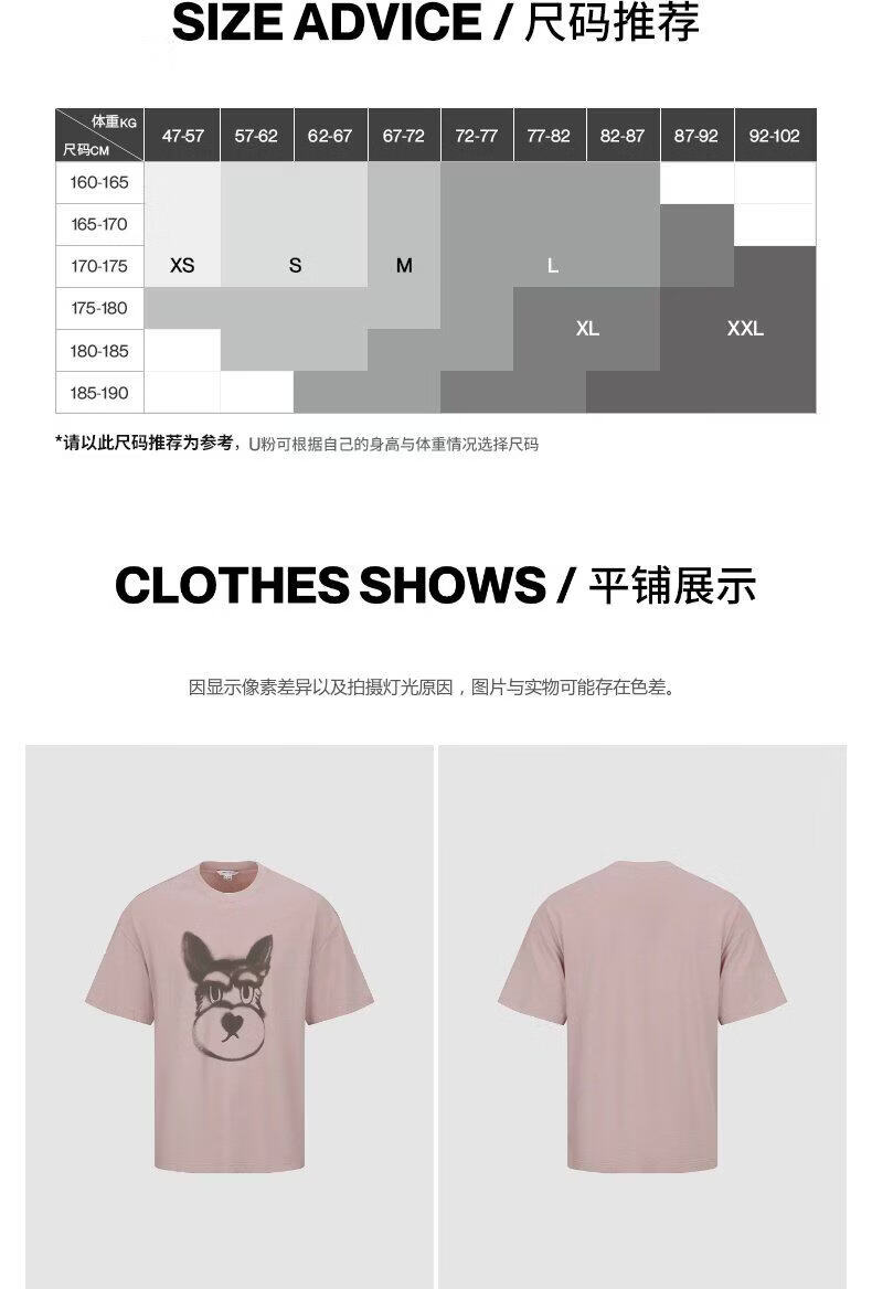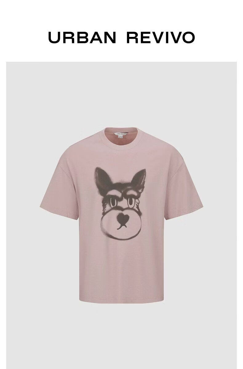 UR2026 Spring New Men's Casual Fun Puppy Print Cotton T-Shirt UUY460041 Gray Pink L