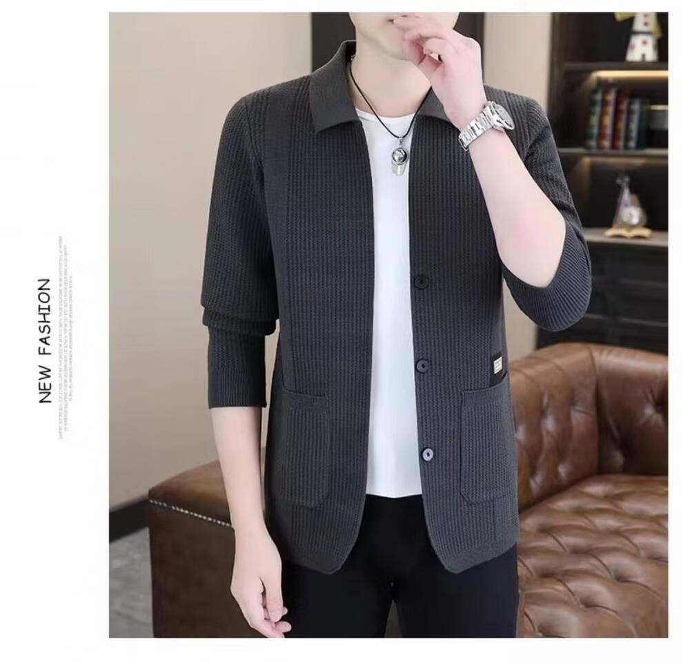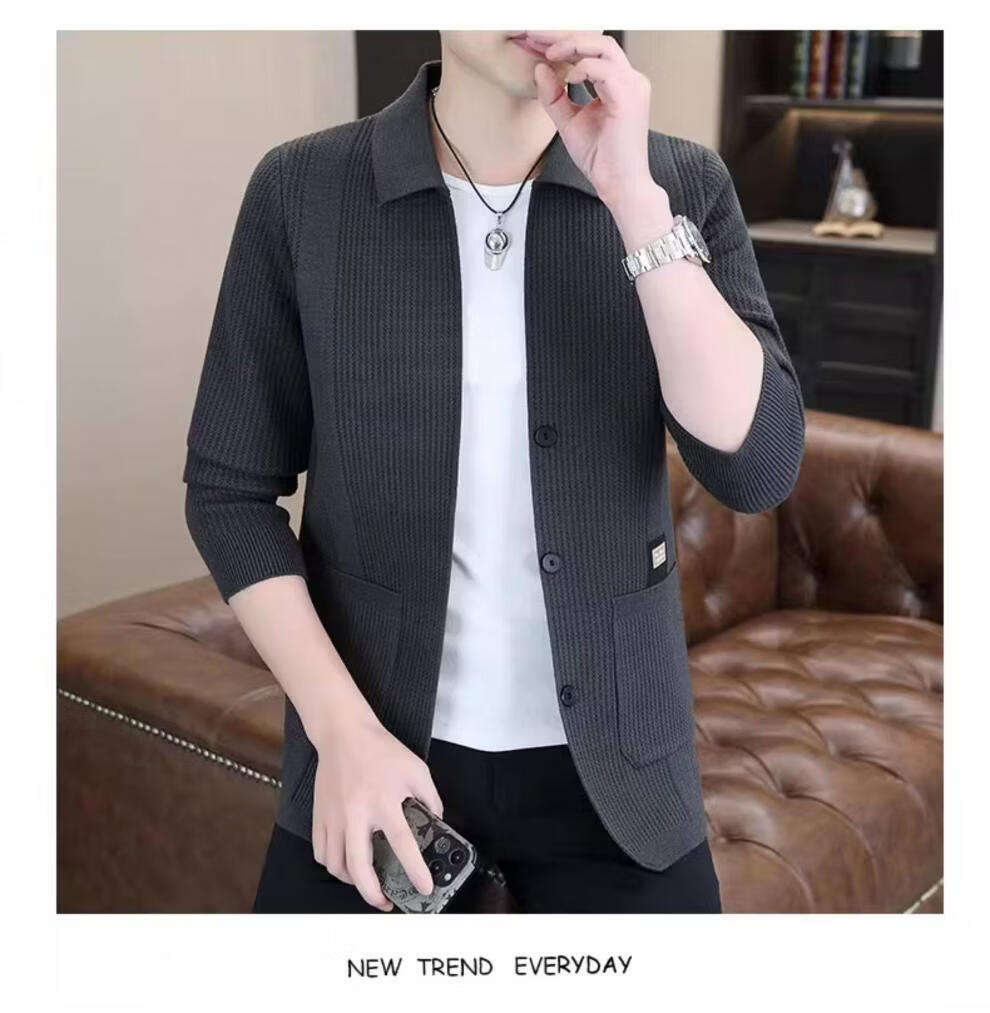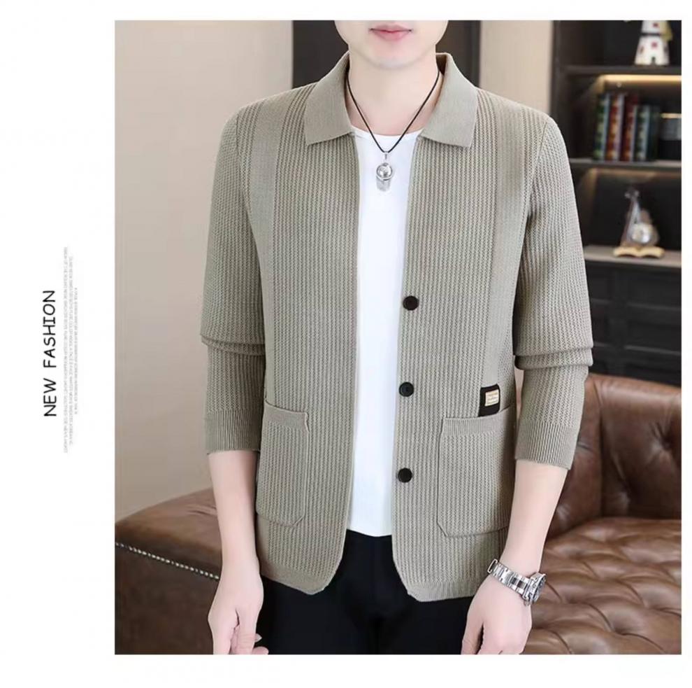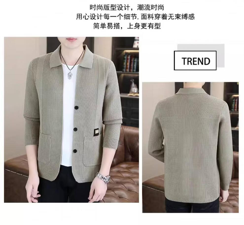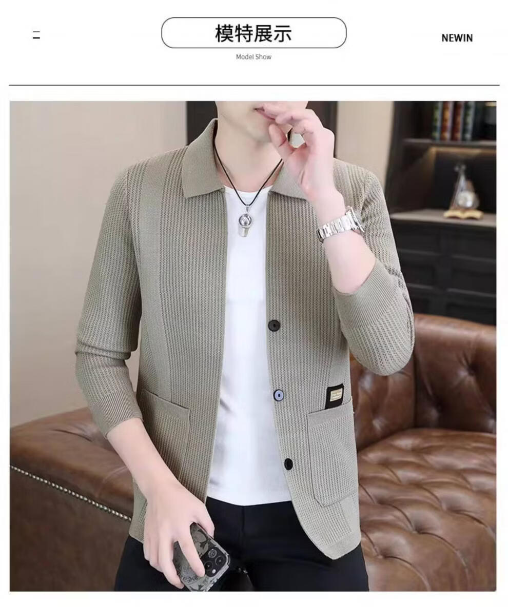 ROMON men's 2026 new style trendy high-end knitted jacket casual lapel youth cardigan coat spring and autumn thin clothes 8988 / Khaki 2XL (about 138~150Jin Jin equals 0.5 kg can be worn)