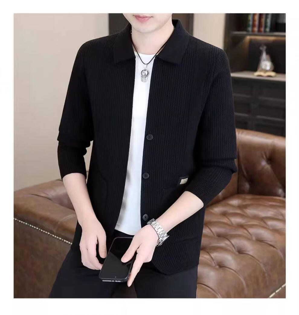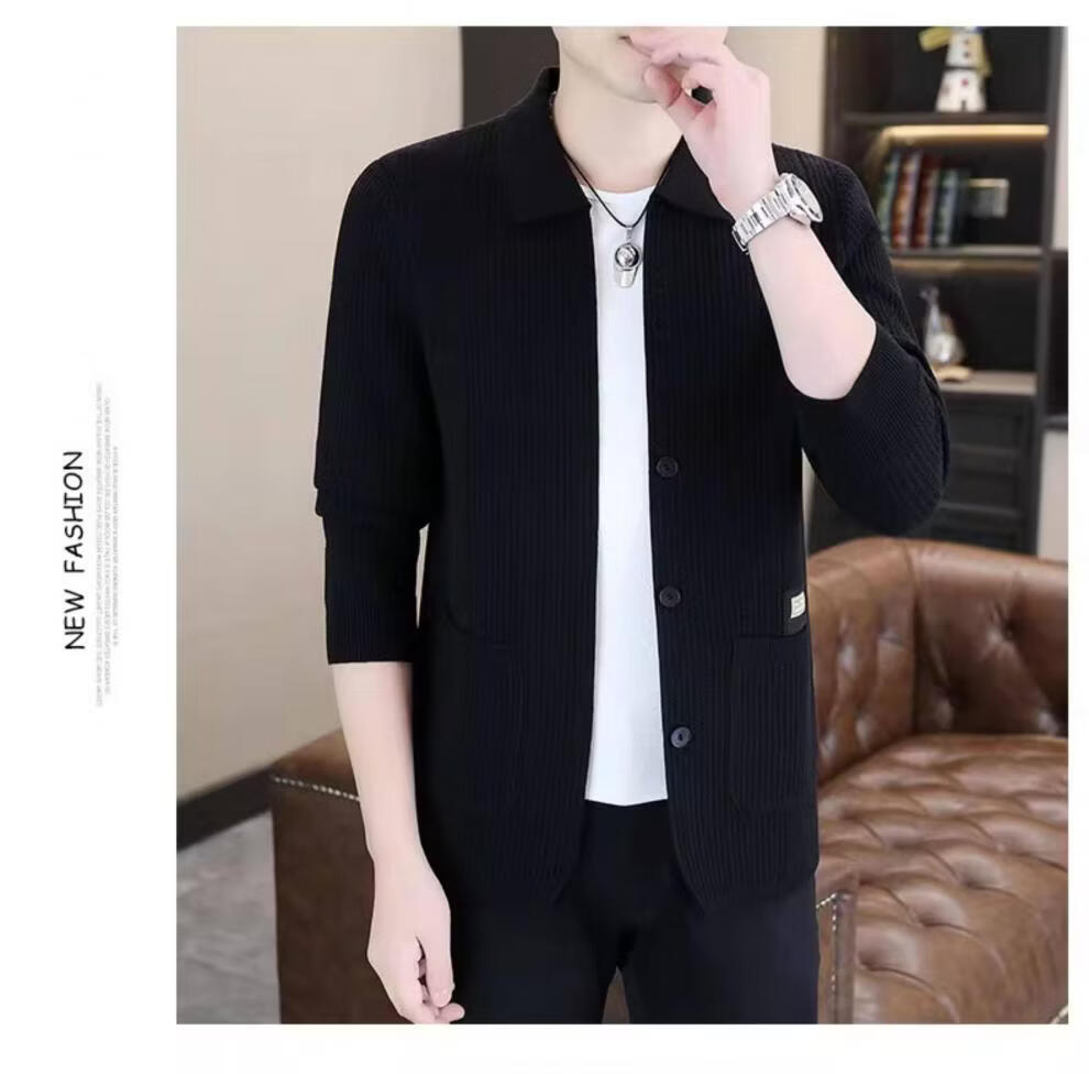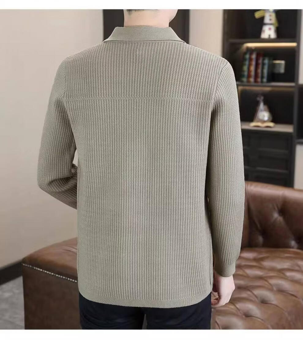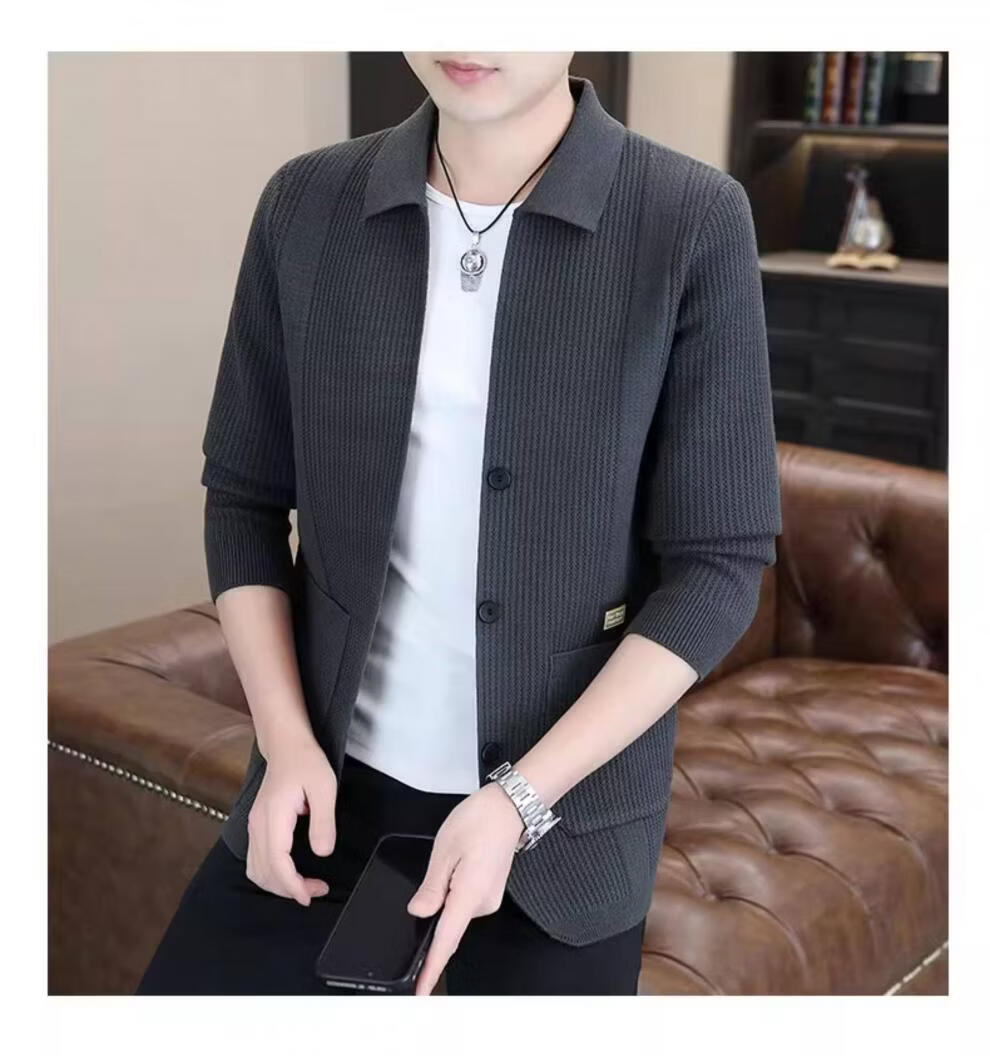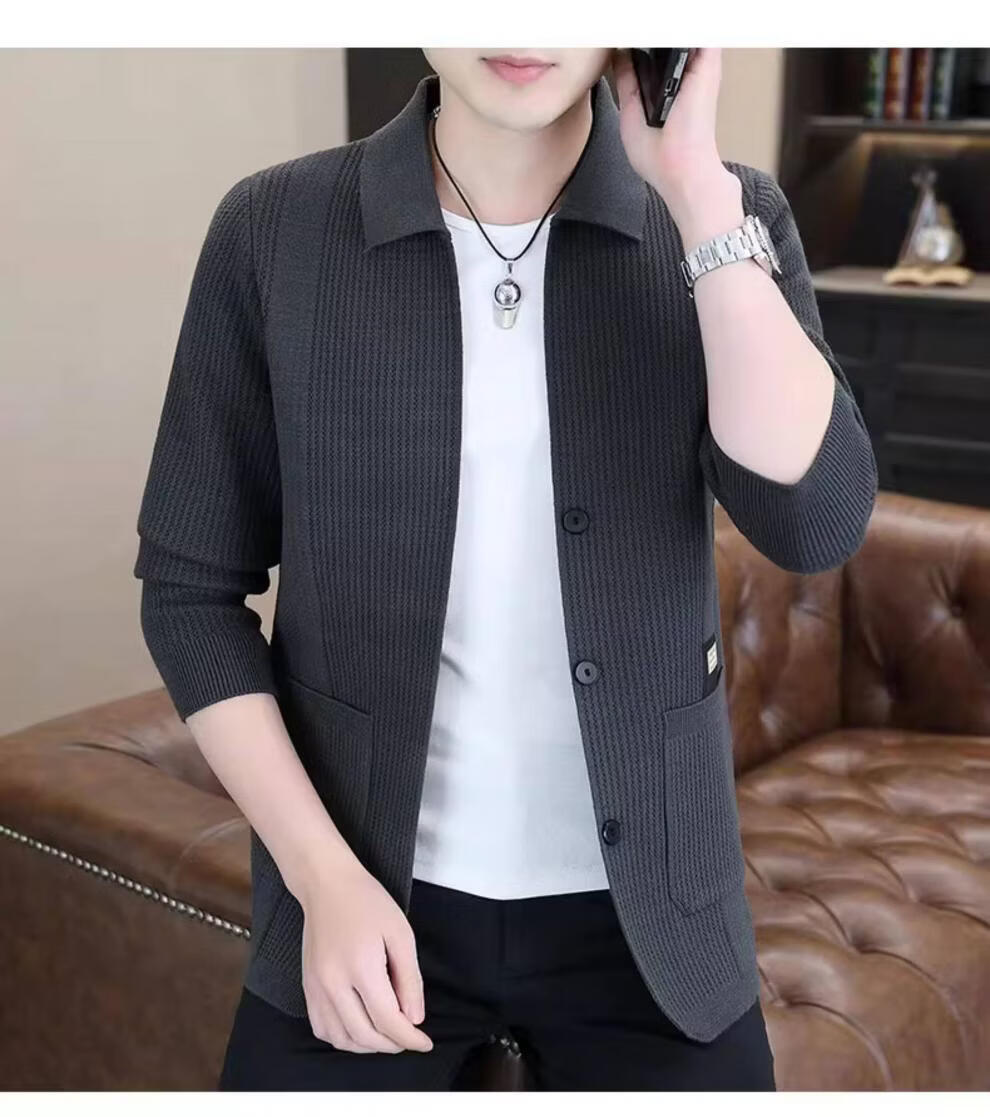 ROMON men's 2026 new style trendy high-end knitted jacket casual lapel youth cardigan coat spring and autumn thin clothes 8988 / Khaki 2XL (about 138~150Jin Jin equals 0.5 kg can be worn)