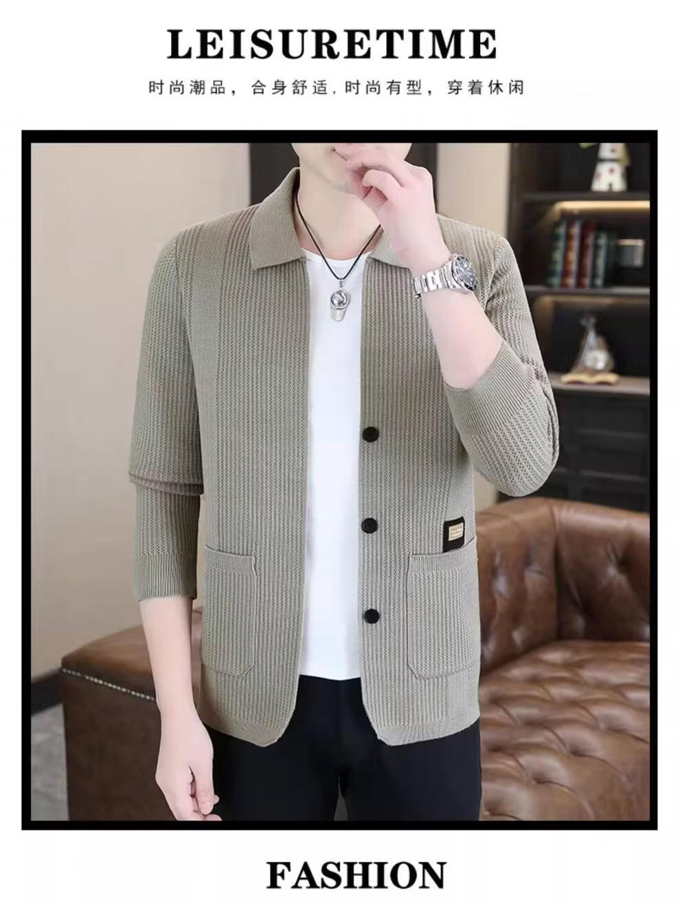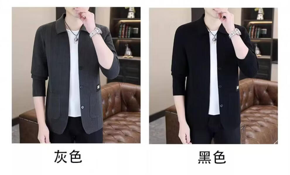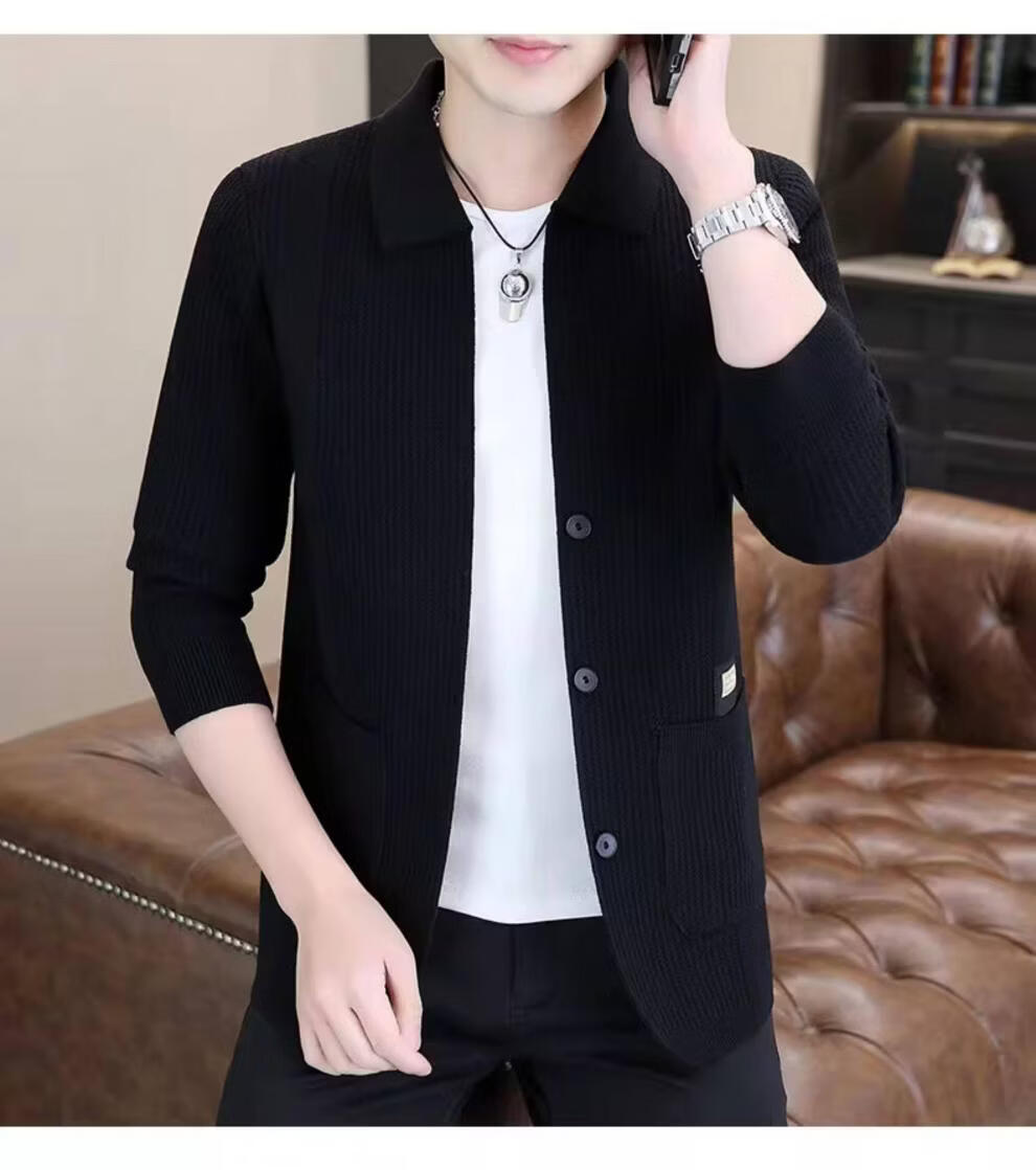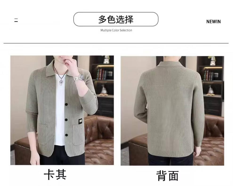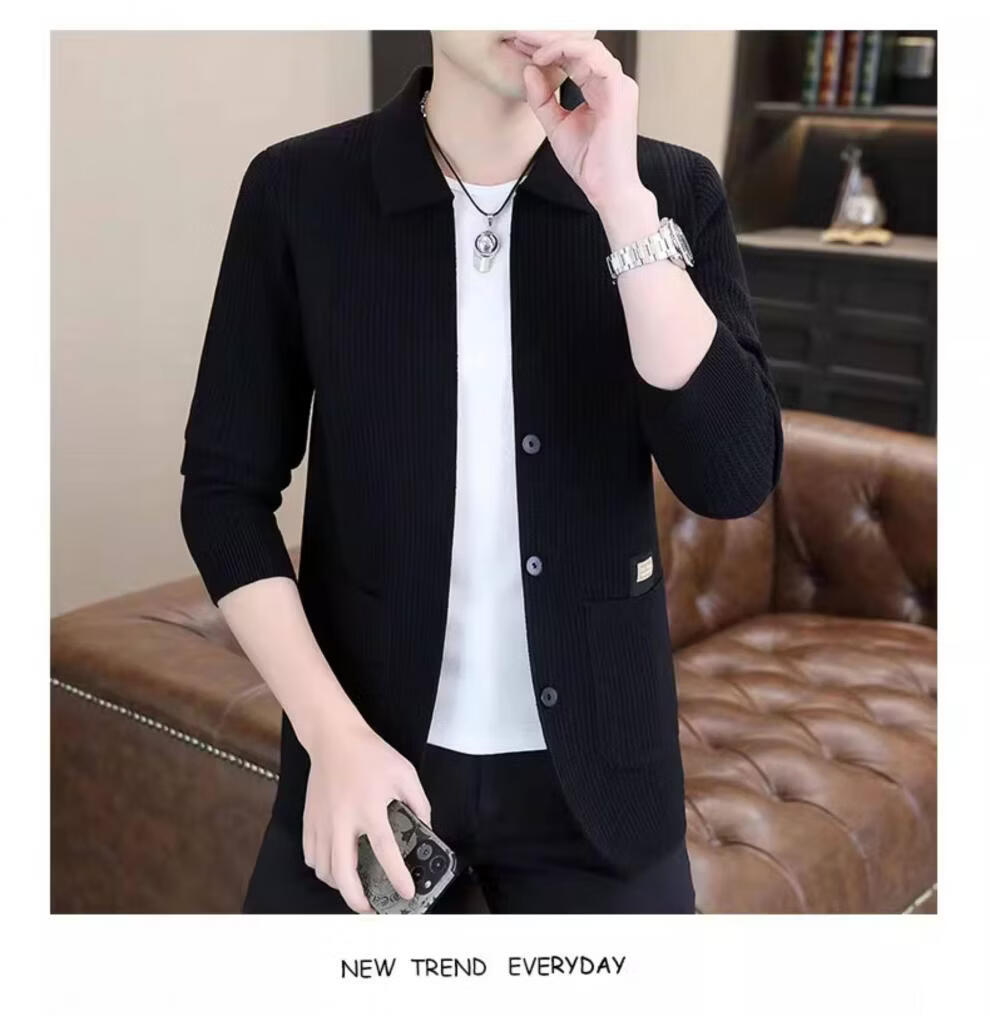 ROMON men's 2026 new style trendy high-end knitted jacket casual lapel youth cardigan coat spring and autumn thin clothes 8988 / Khaki 2XL (about 138~150Jin Jin equals 0.5 kg can be worn)