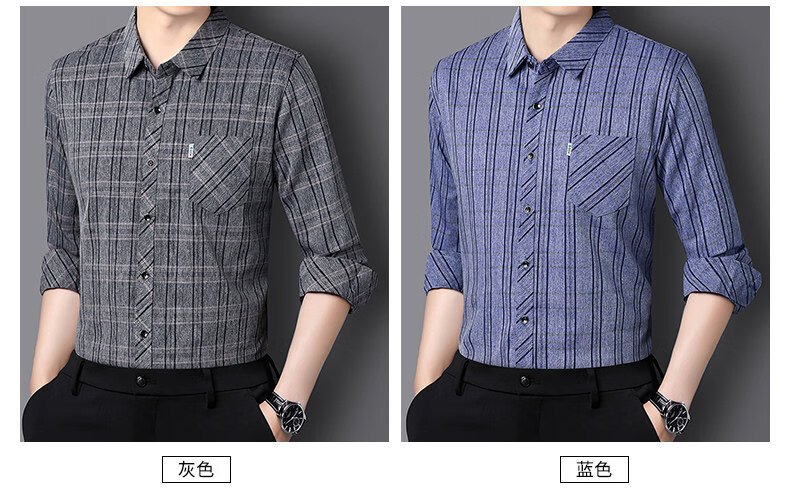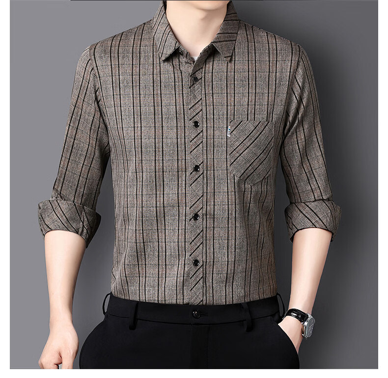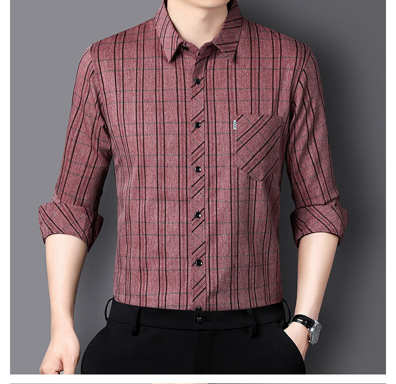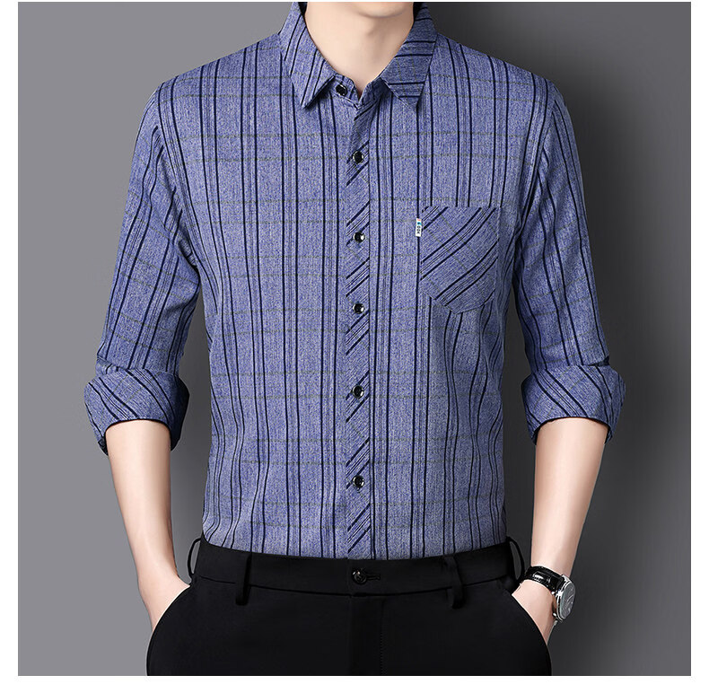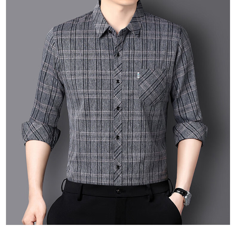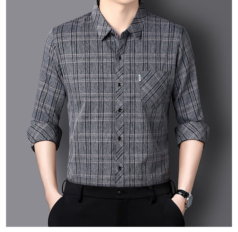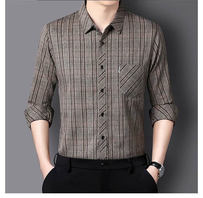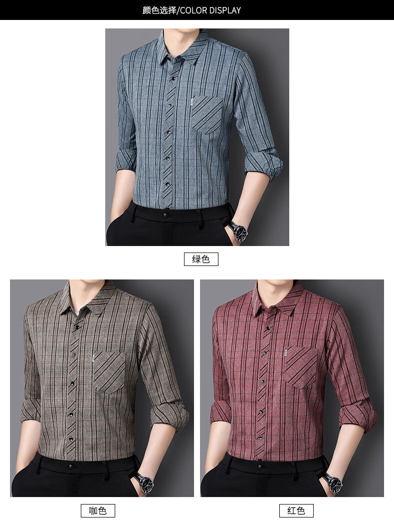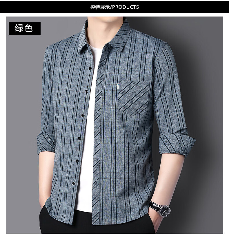 MHEF light luxury brand shirt spring and autumn new style mulberry silk linen long-sleeved men's plaid business casual ironing-free inner wear trendyuan DSS/C25091 green long-sleeved shirt M 90-110Jin Jin is equal to 0.5 kg