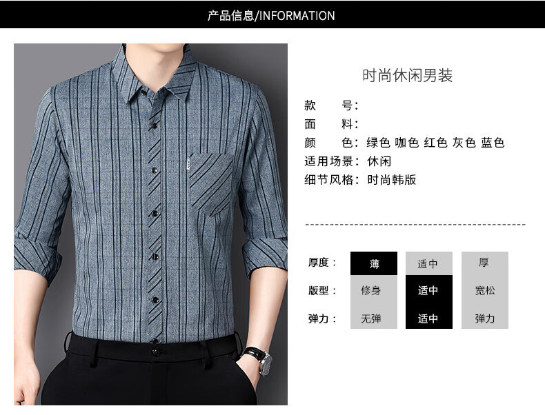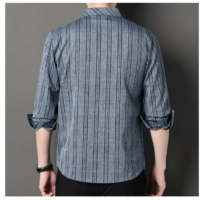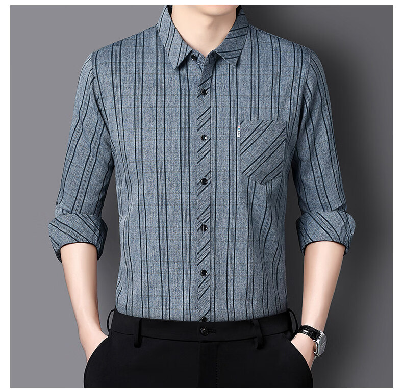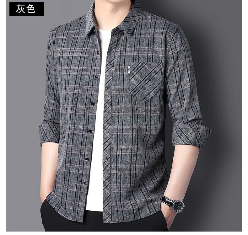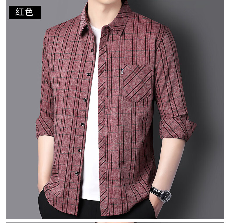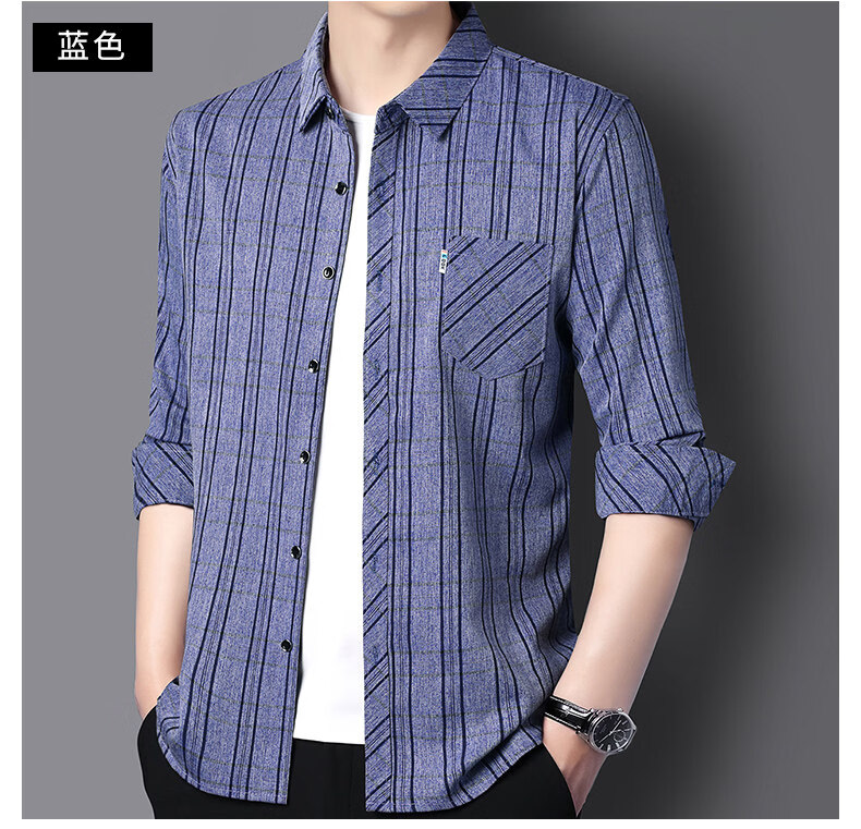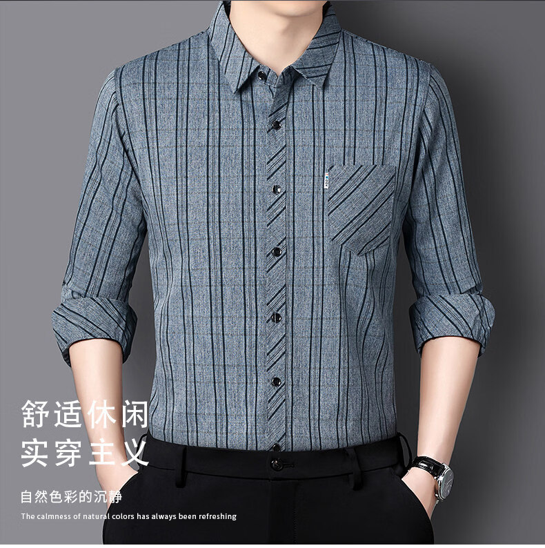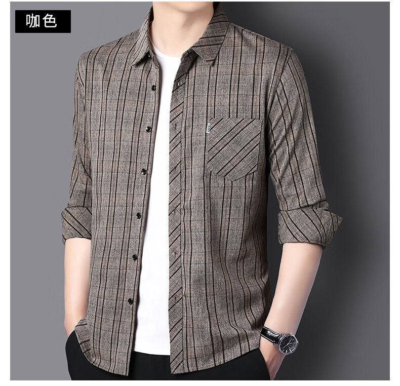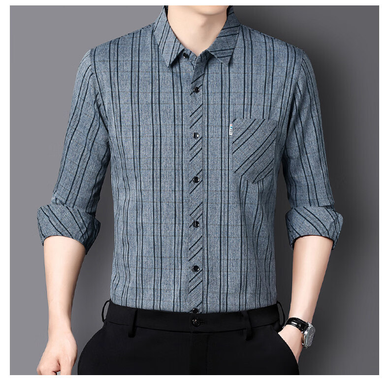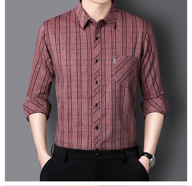 MHEF light luxury brand shirt spring and autumn new style mulberry silk linen long-sleeved men's plaid business casual ironing-free inner wear trendyuan DSS/C25091 green long-sleeved shirt M 90-110Jin Jin is equal to 0.5 kg