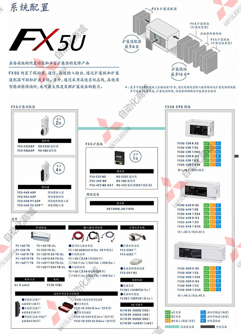 PLC FX5U-32MT/ES FX5U-32MR/DS FX5U-64MR/64MT/80M Original FX5U-32MT_ES_220V_AC Invoicing 13%