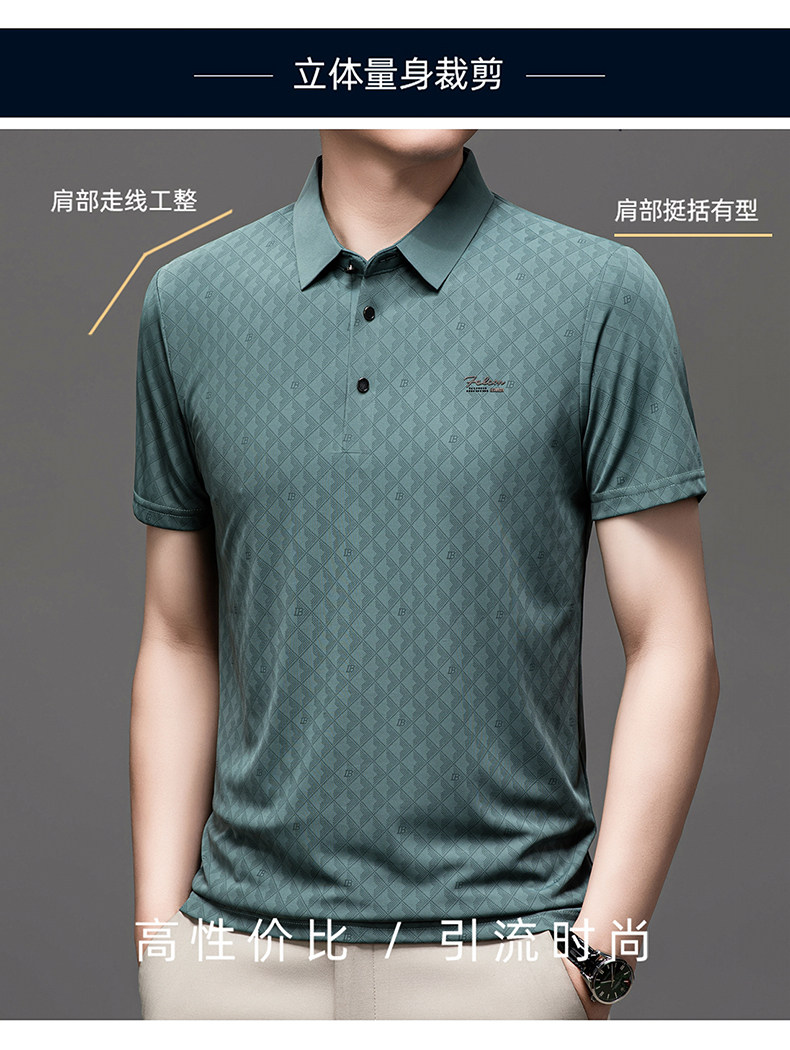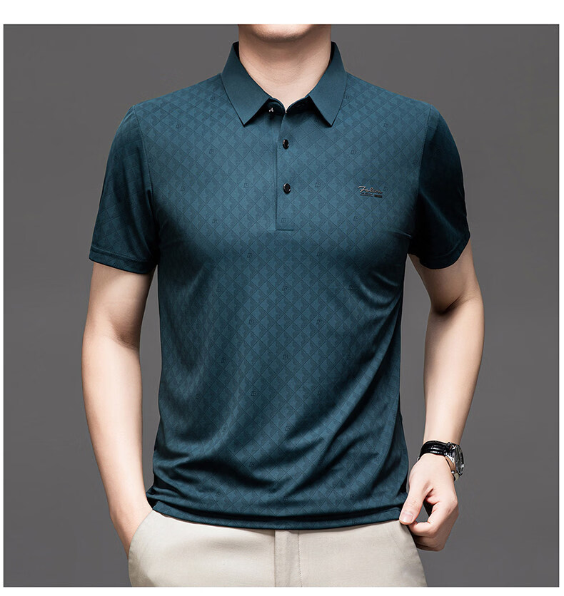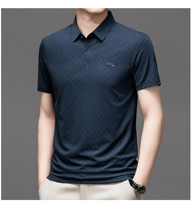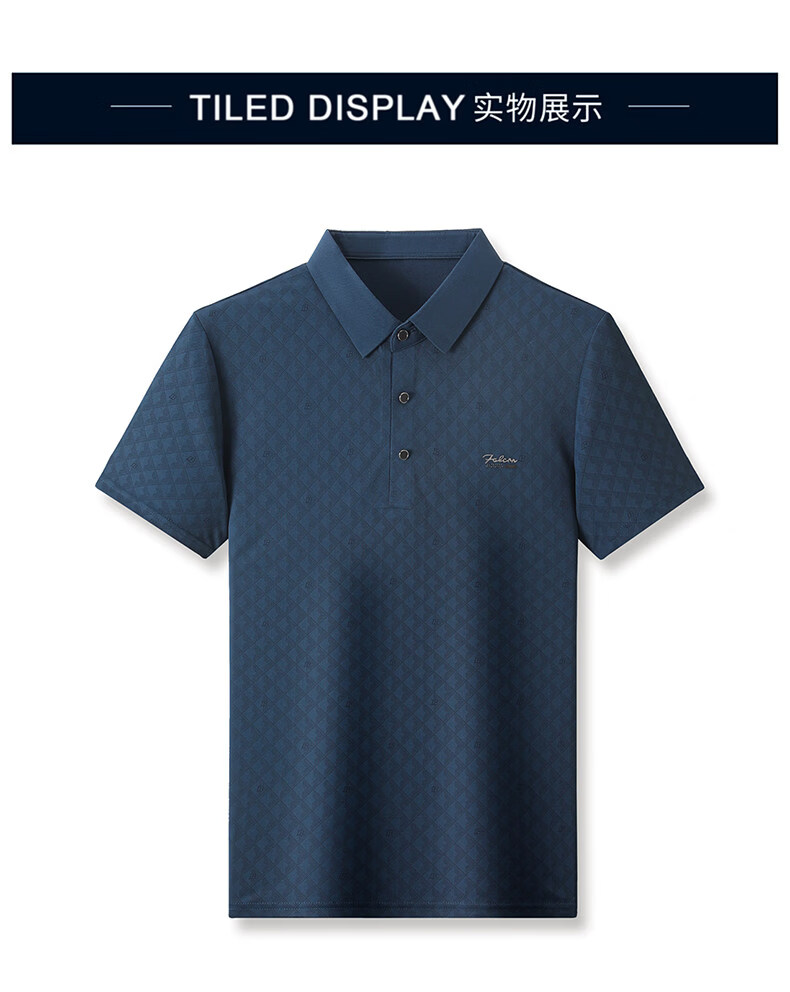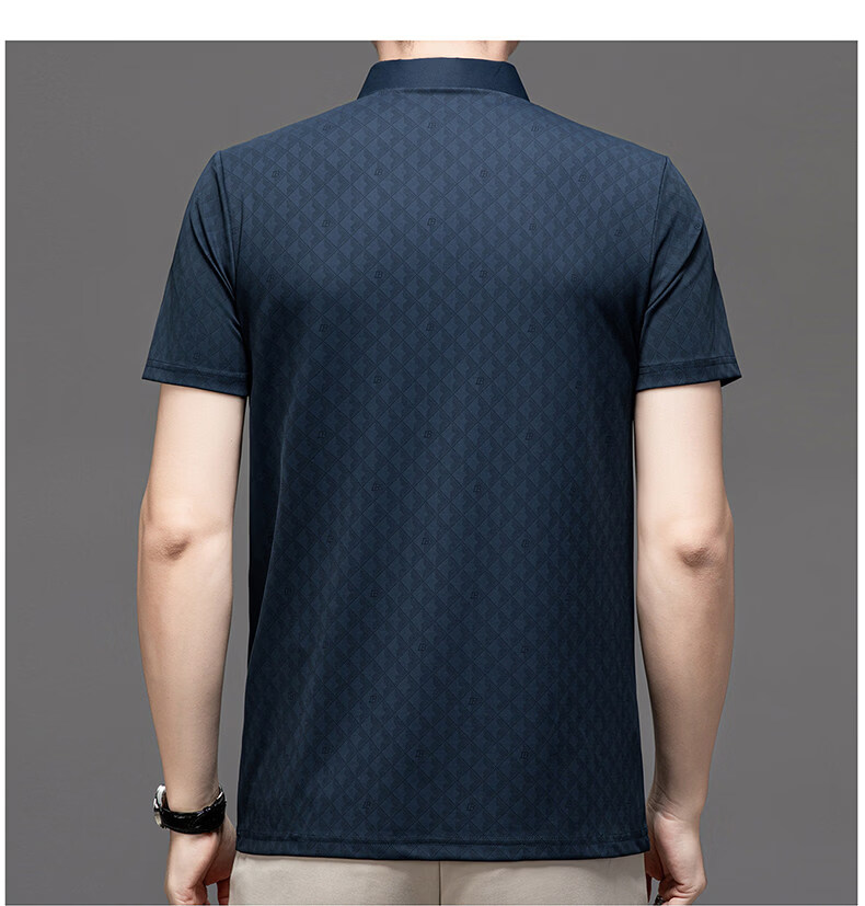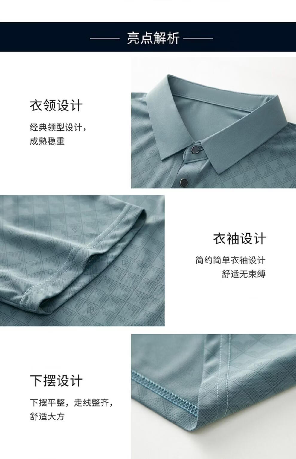 Hengyuanxiang middle-aged men's ice silk short-sleeved T-shirt summer new middle-aged and elderly dad breathable lapel men's POLO shirt blue (breathable ice silk mesh breathable POLO shirt) 3XL 185