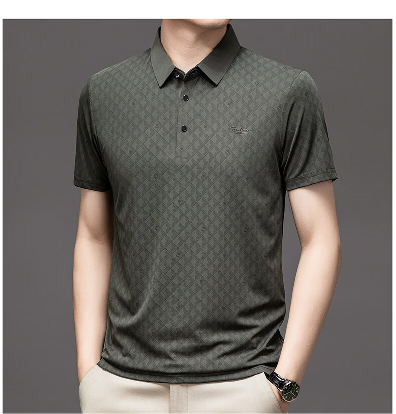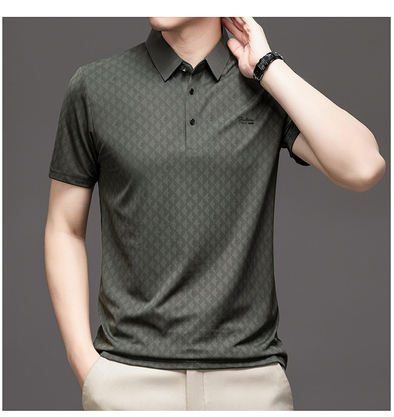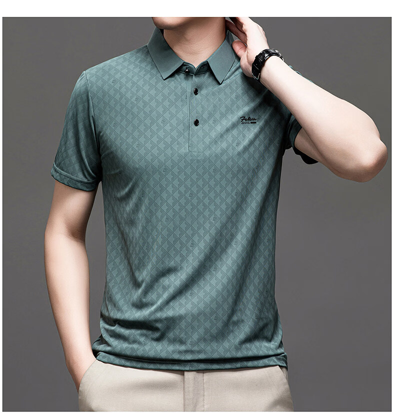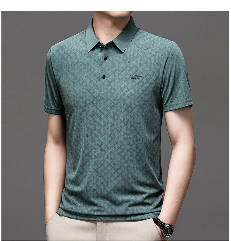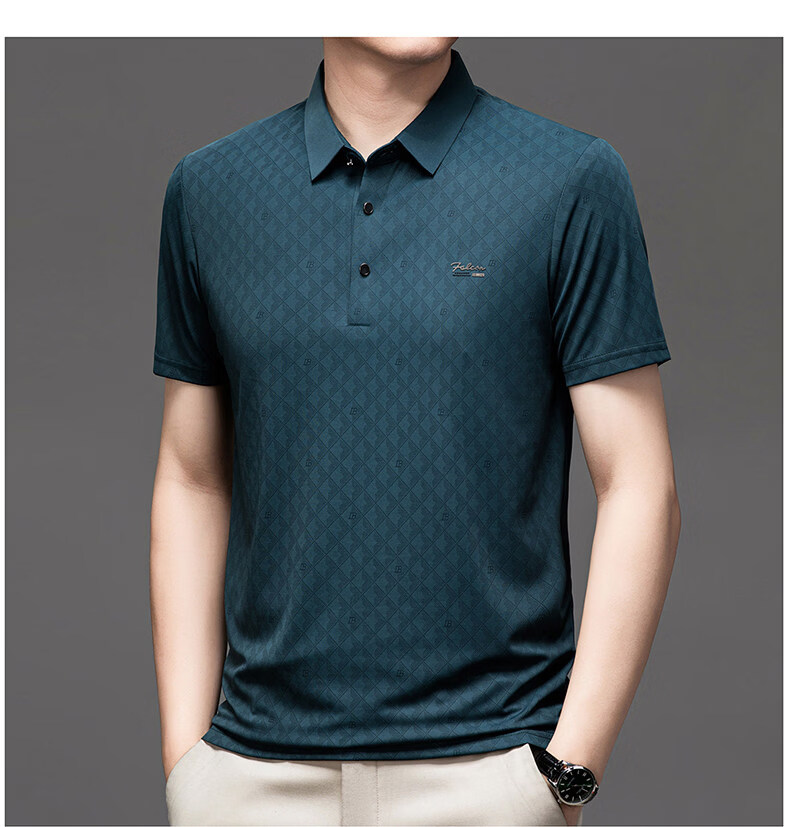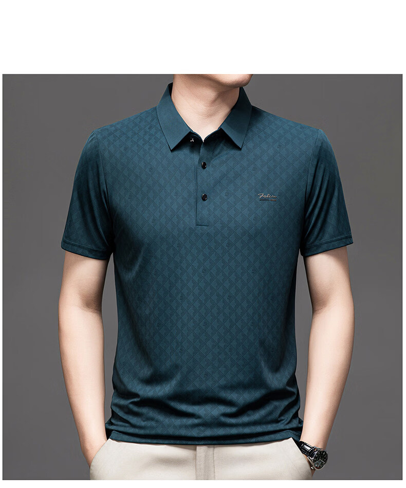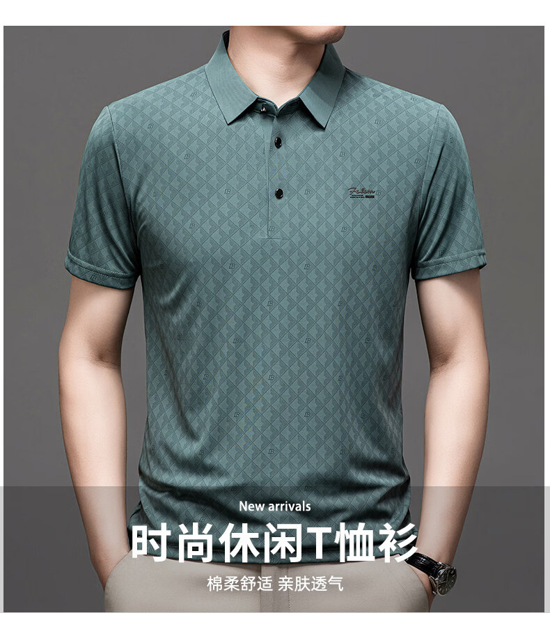 Hengyuanxiang middle-aged men's ice silk short-sleeved T-shirt summer new middle-aged and elderly dad breathable lapel men's POLO shirt blue (breathable ice silk mesh breathable POLO shirt) 3XL 185