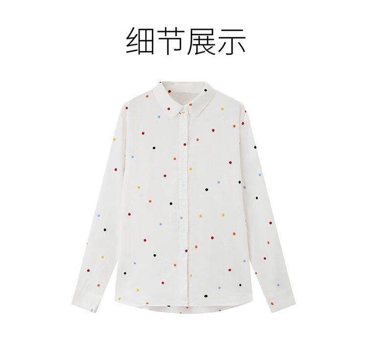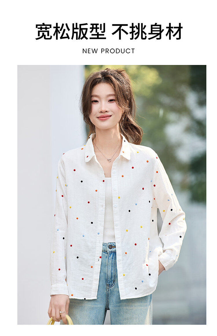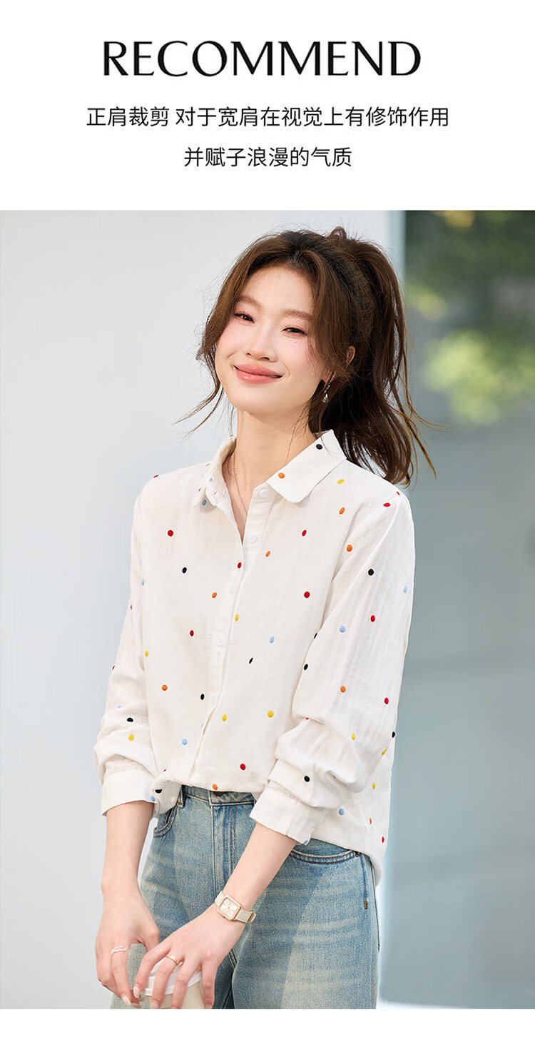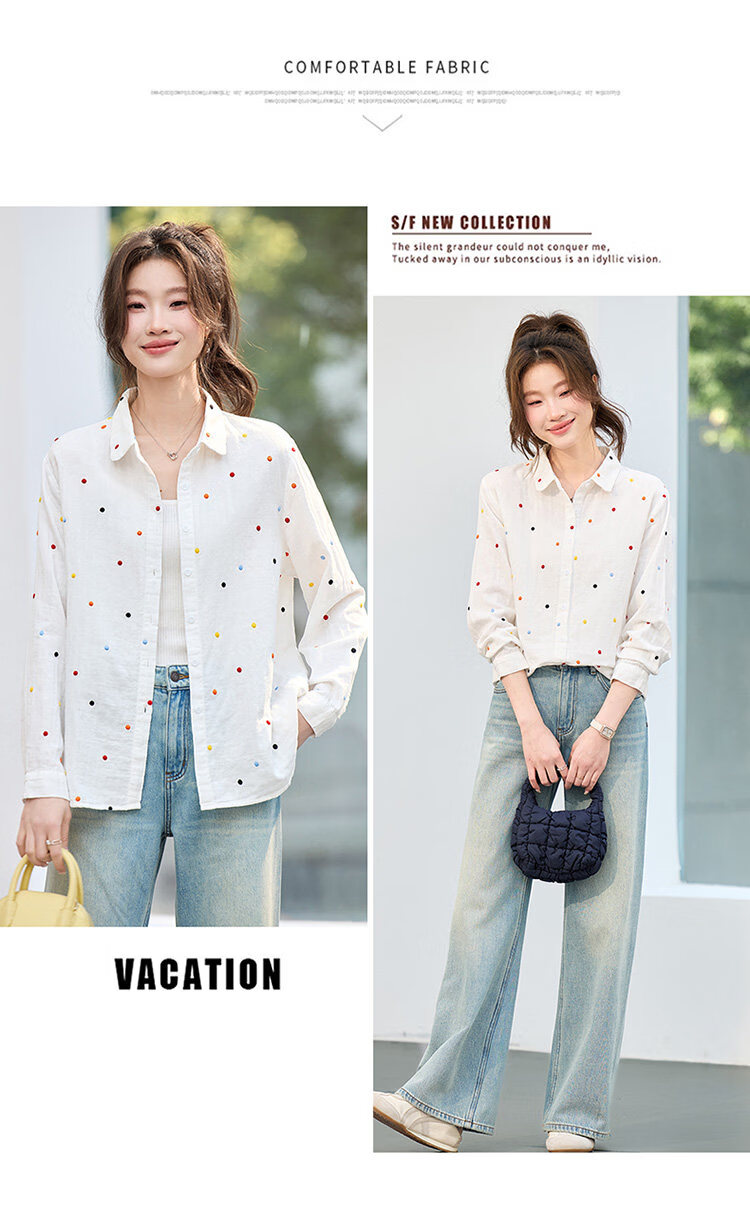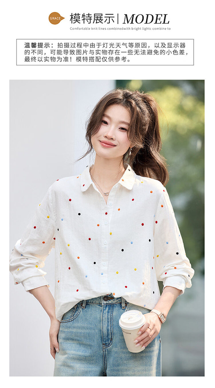 ROMON high-end colorful polka-dot shirt for women 2026 spring long-sleeved lapel shirt top white M 90-130Jin Jin equals 0.5 kg