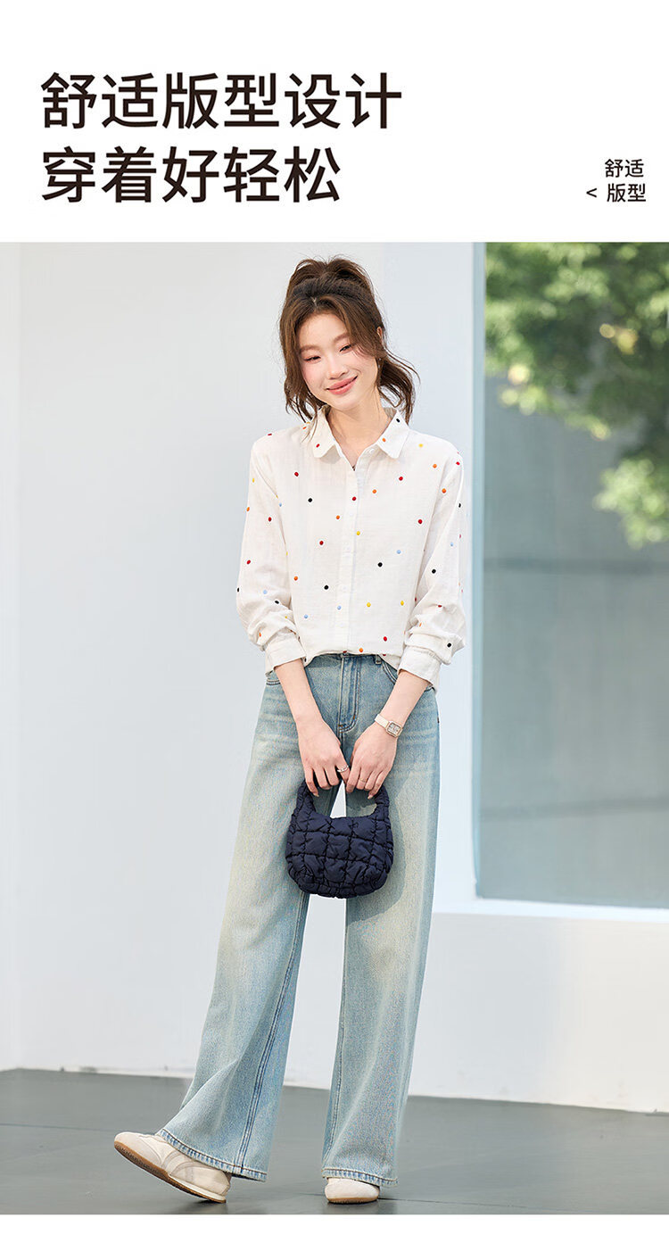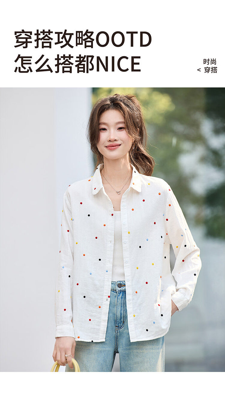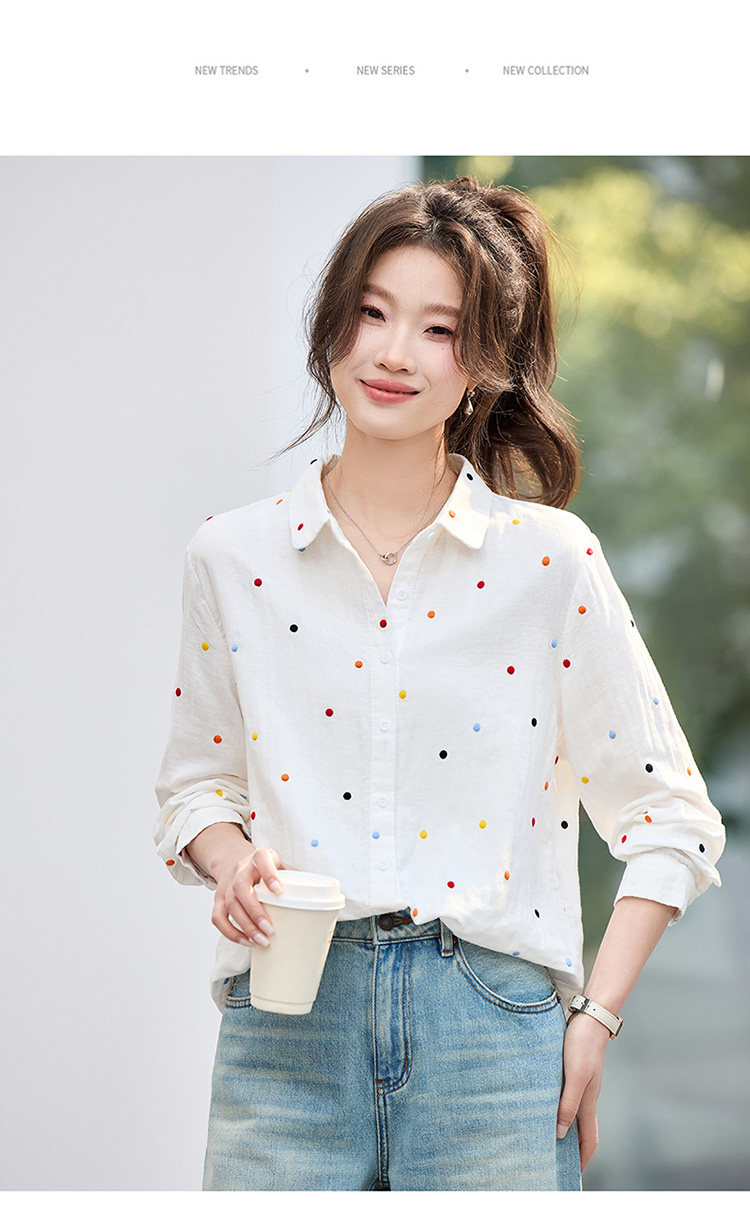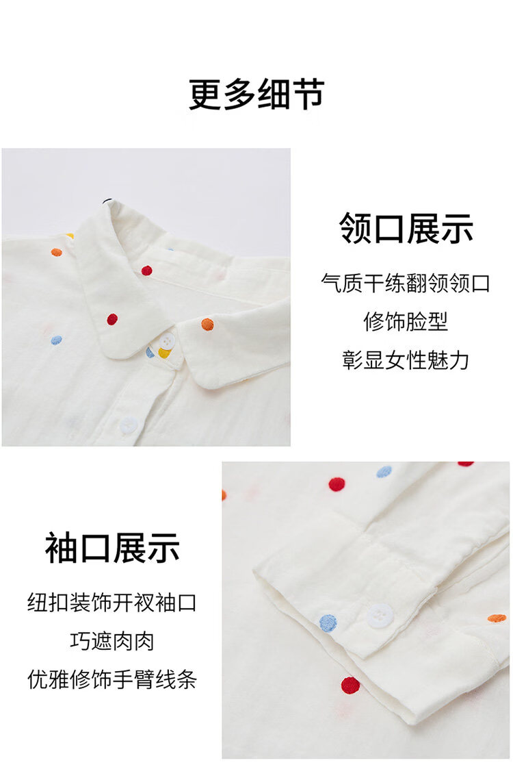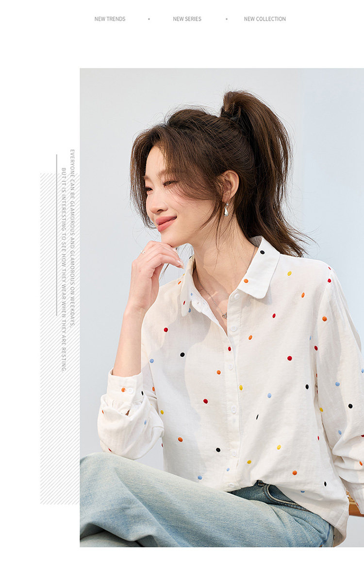 ROMON high-end colorful polka-dot shirt for women 2026 spring long-sleeved lapel shirt top white M 90-130Jin Jin equals 0.5 kg