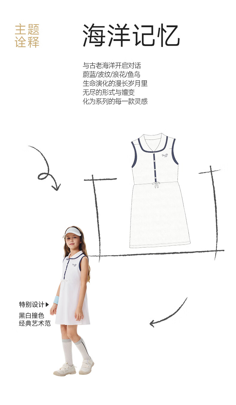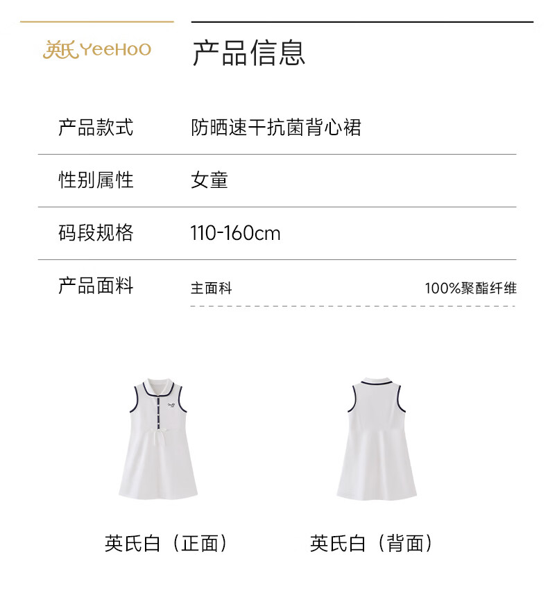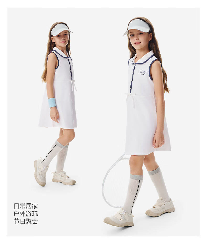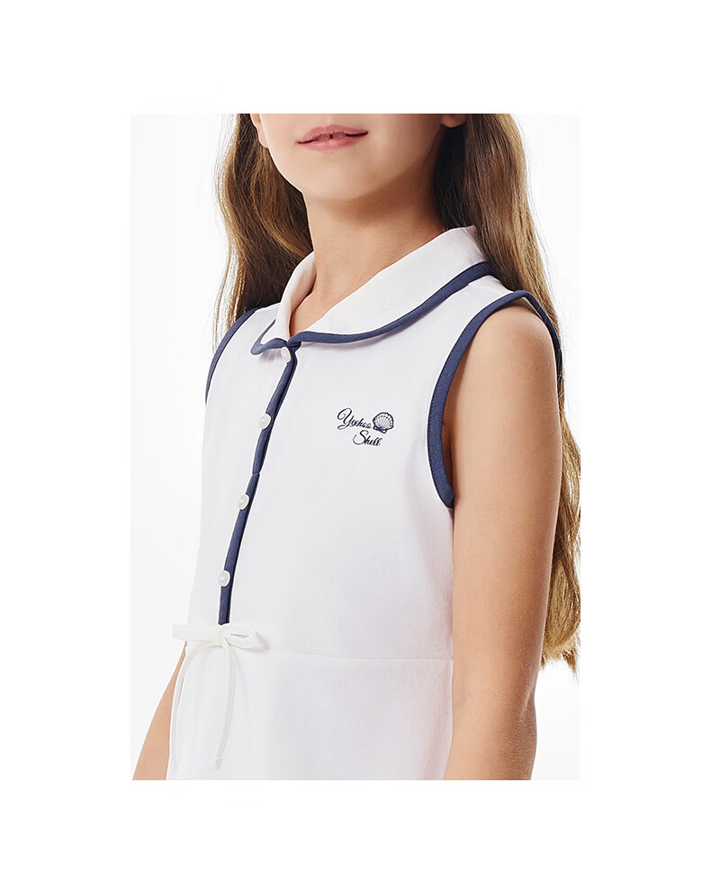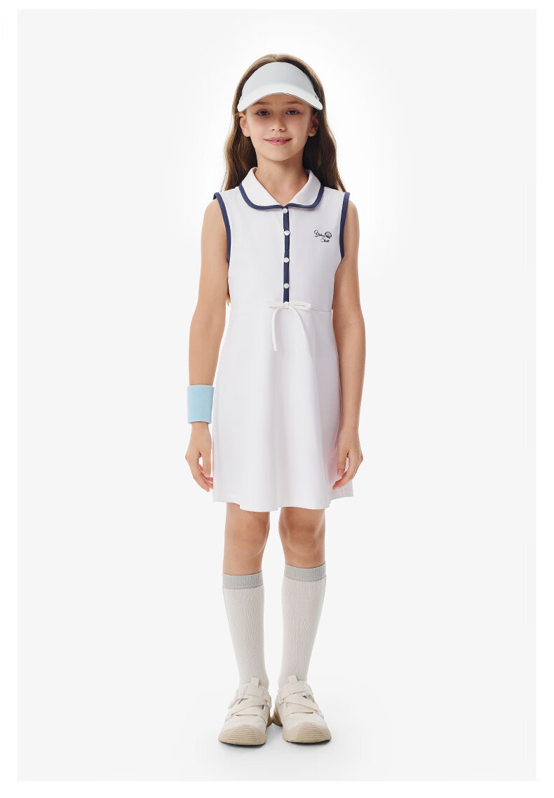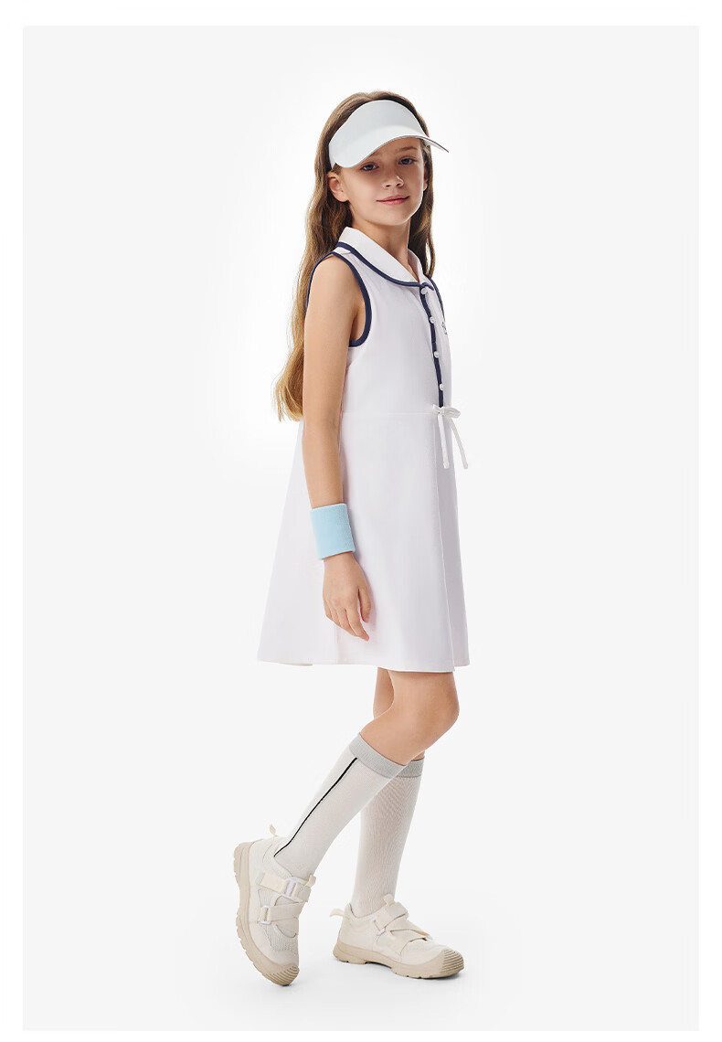YEEHOO children's skirt girls lapel vest dress summer moisture-absorbing quick-drying sunscreen antibacterial sports style dress Ying's white 110 cm