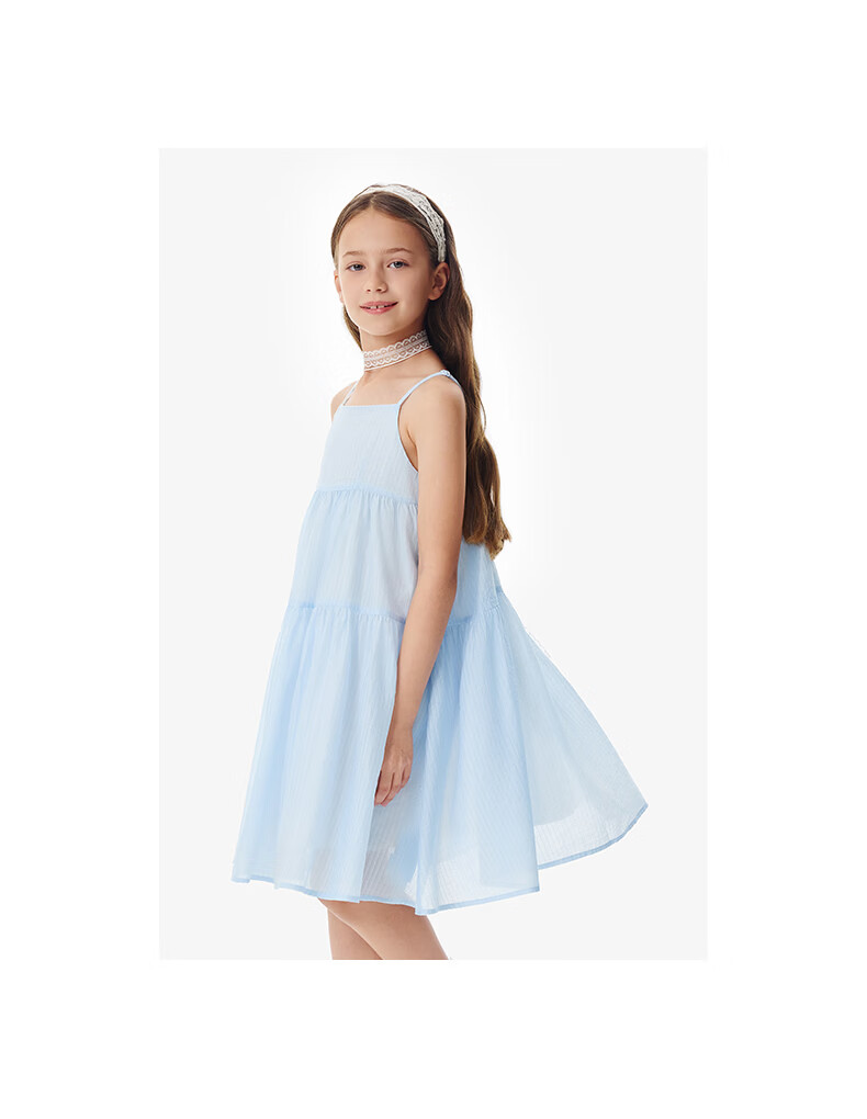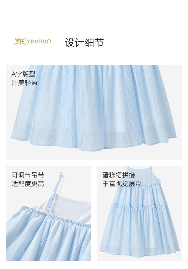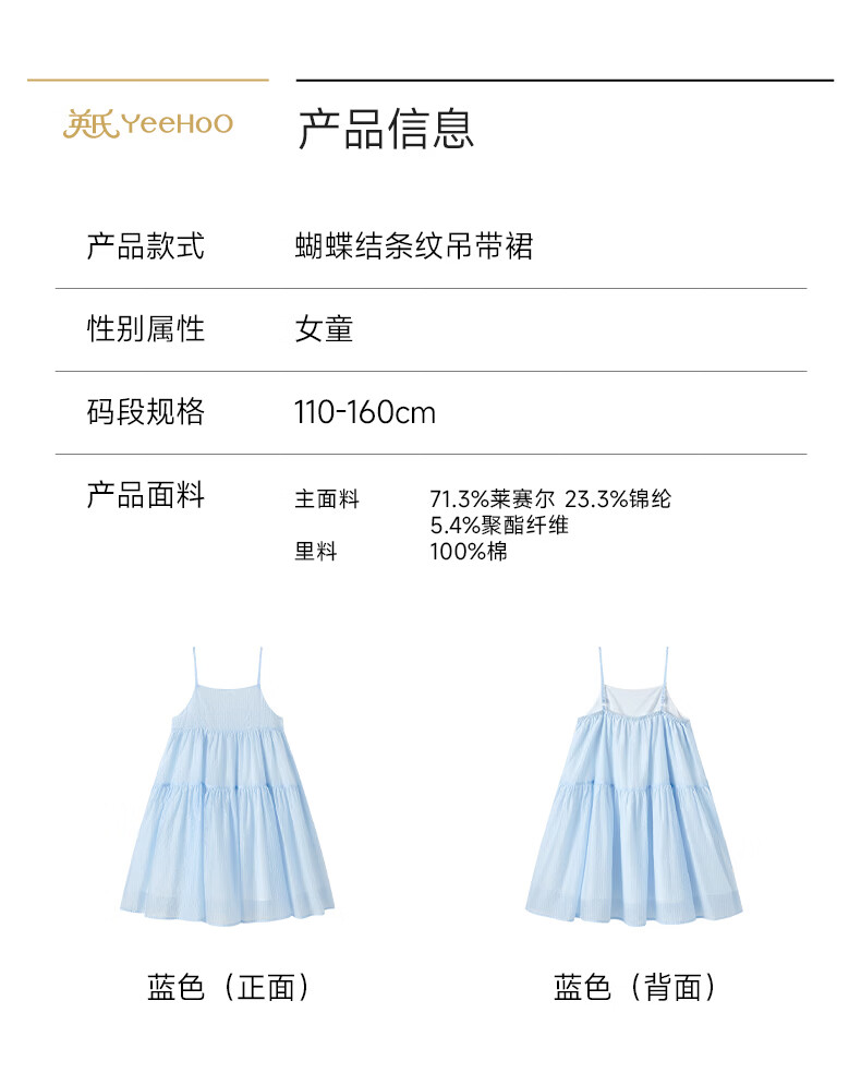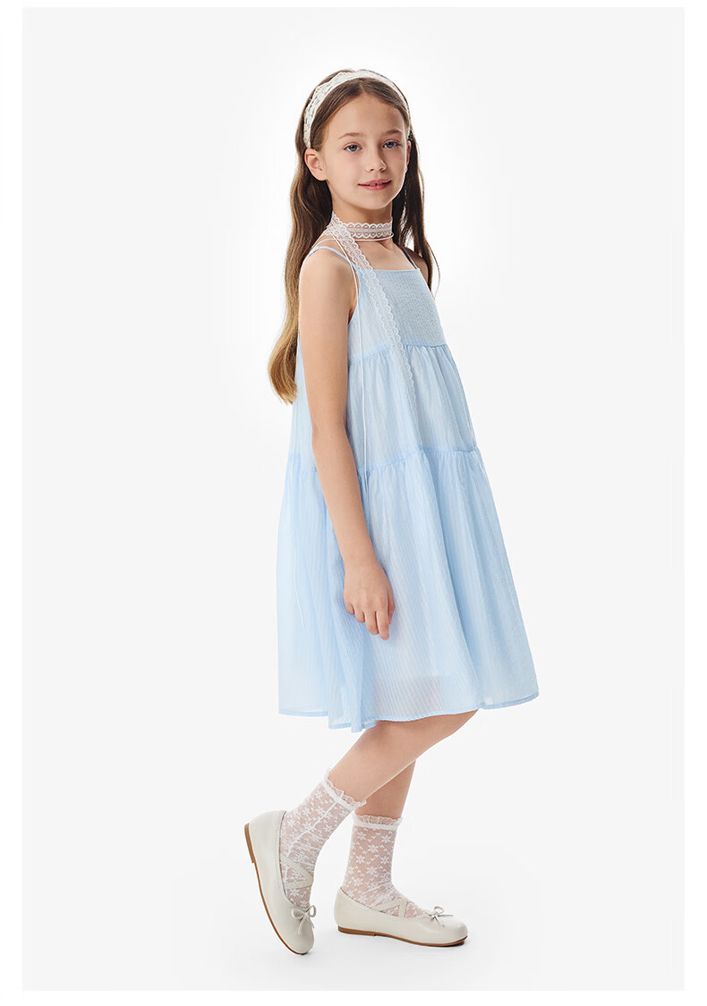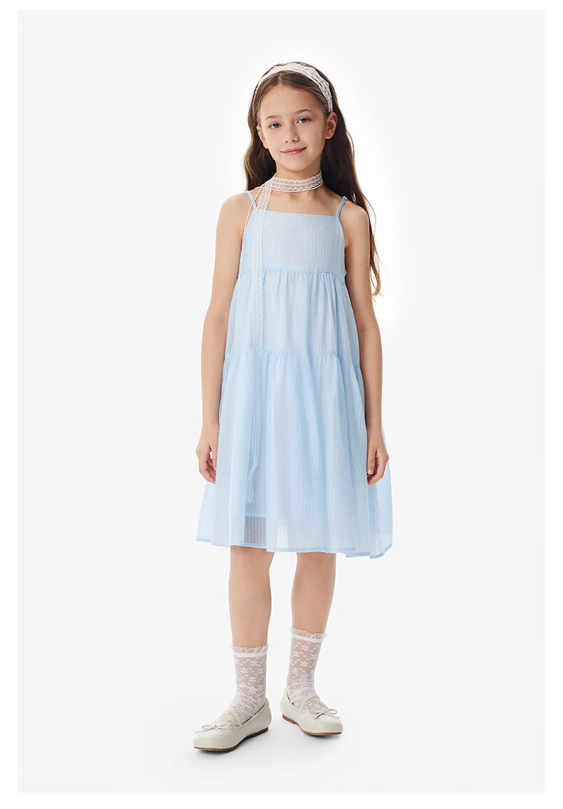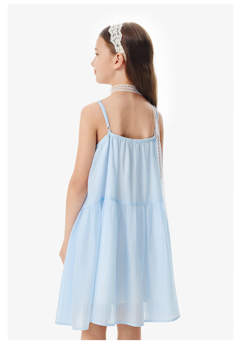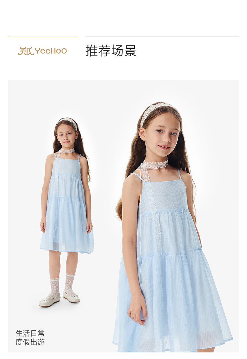 YEEHOO Children's Skirt Girls Lyocell Breathable Dress Summer Strap Square Neck Casual Simple Dress Blue 110 cm